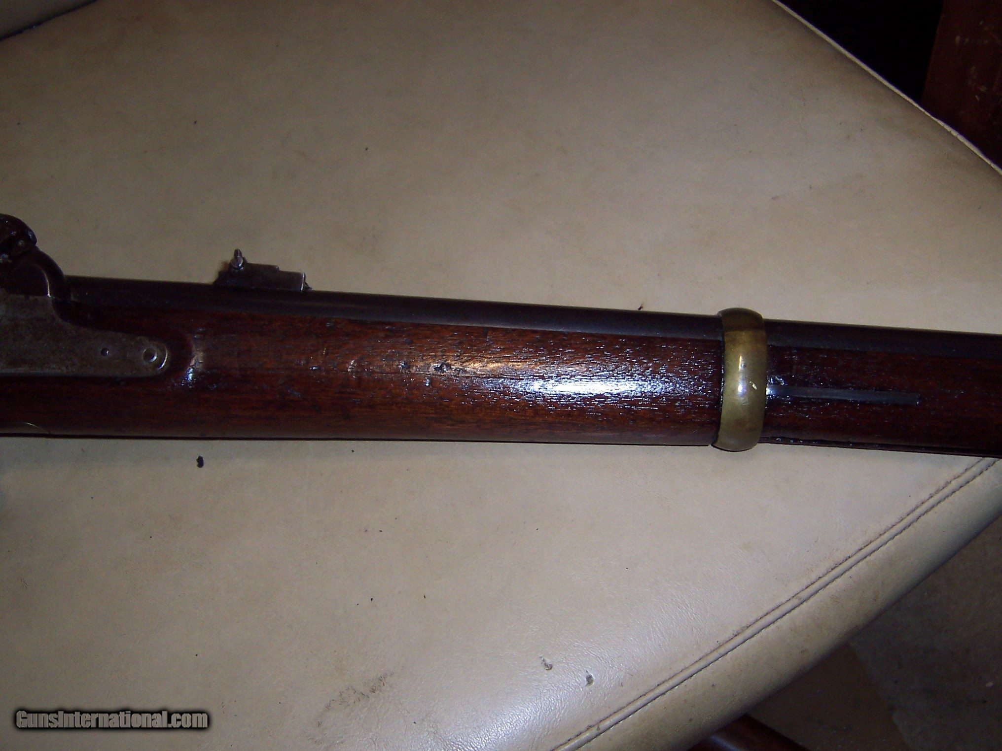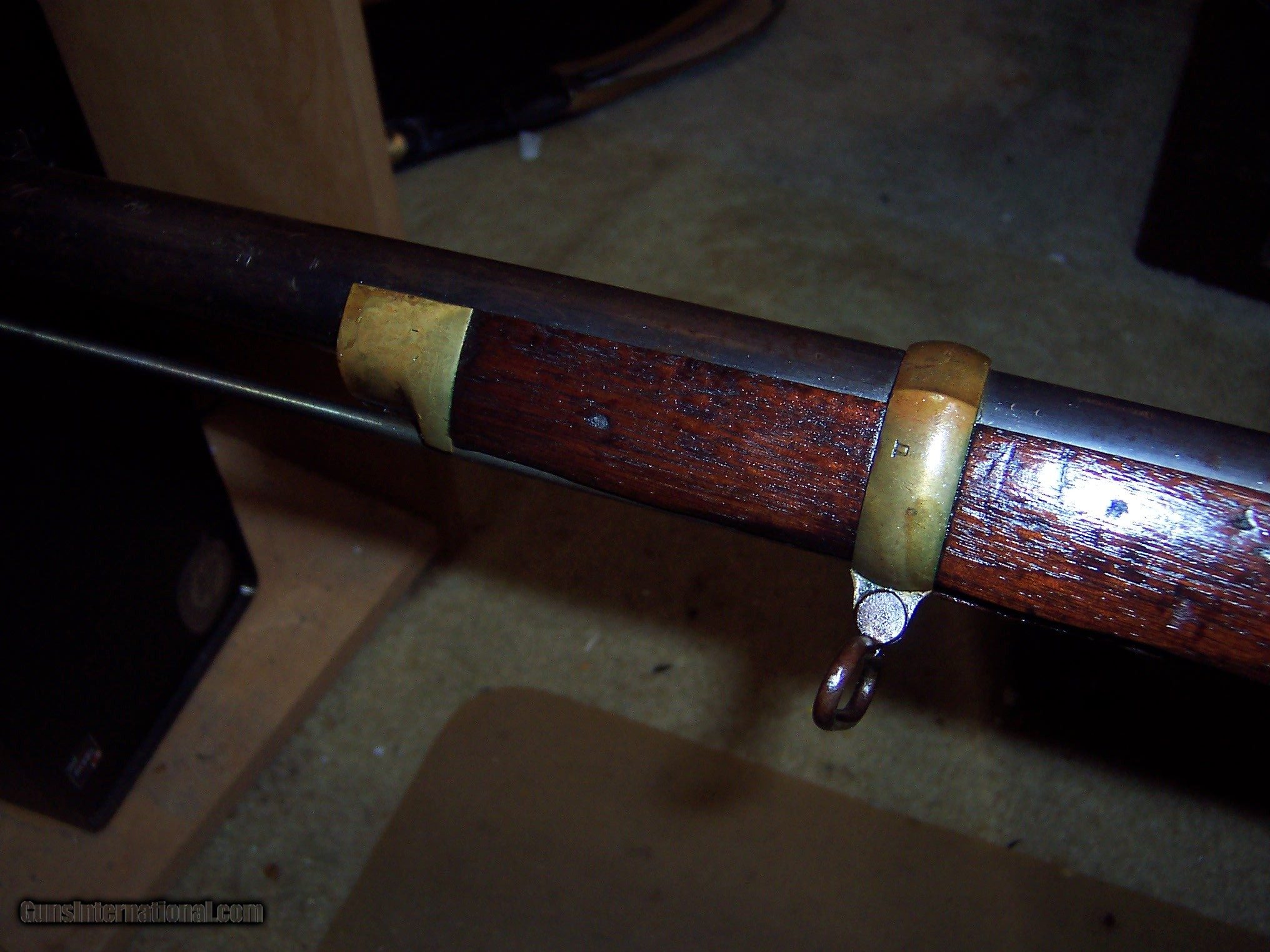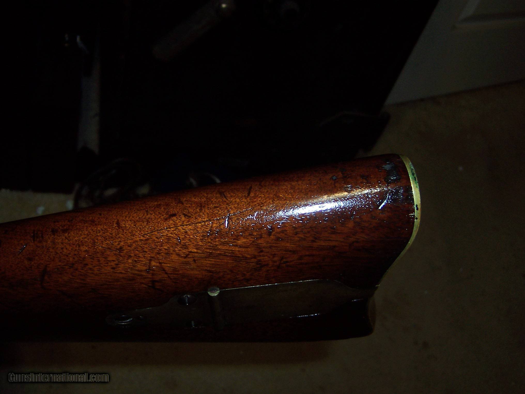 Description: looks like 7 grove rifling // bore has light red rust but should clean to fine /// repo dixie ramrod// this appears to be in excelent condition ///action works fine //1863 date on barrel and lock ///95% original barrel blue// original nipple in butt trap // ex stock cartouch // $67 sh // all brass mountings / gun shows very little use just light handling marks/ $125 sh to new york SOLD Antique: Yes Manufacturer: remington Model: 1863 |