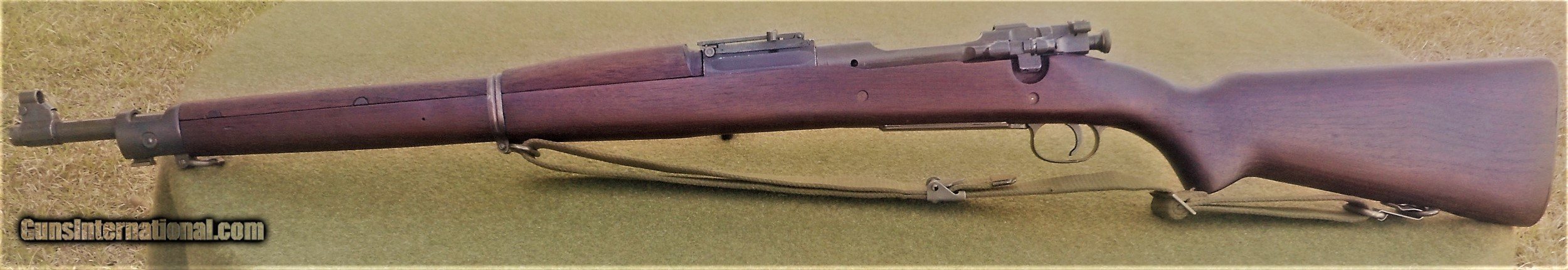 Description: Excellent Remington 1903, not 03A3, guaranteed to be an original all GI rifle. The butt stock is an excellent condition, WWII manufacture C type with the cartouche and inspector markings appropriate for a post-war San Antonio Arsenal rebuild. The stock set is in excellent condition and all markings are sharp and well-struck. The 4-groove barrel is marked SA 6-42 and comes with a period-correct front sight cover. The bore is absolutely immaculate and the bolt face shows no sign of wear. The stock furniture and butt plate are all milled, and the butt plate is checkered. The bolt body is marked BF47 (SA 1942 manufacture) on top of the bolt handle, and with a punch mark and the letter Z on the under side of the handle root. The bolt shroud is marked with an R, as are the safety, rear sight assembly and upper band. This rifle appears to have been extensively rebuilt at SAA sometime between the end of WWII and its closing in 1949. The webb sling is also in excellent condition and is marked MRT MAY 1952 - it too is guaranteed to be original G I issue. This exceptionally handsome rifle would make a fine addition to any WWII era military collection and also has the potential to be used as a competition-grade shooter as well. There is a 3-day, non firing, no disassembly inspection period starting from the time of delivery to your FFL holder. All returns must be recieved in the exact same condition in which they were originally sent to the buyer. Buyer pays all shipping and FFL transfer fees. As with all vinatage firearms, this rifle should be checked by a competent gunsmith before being fired. There is no shooting warranty on any used gun sale. Shooter safety is the sole responsibility of the purchaser. Thanks for your interest. Please feel free to ask any questions you may have. S&I are a flat $45.00 in the lower 48 states plus $35,00 FFL fee. SOLD Curio/Relic: Yes Manufacturer: Remington Arms Model: US Remington Model 1903 Serial Number: 3095816 Caliber Info: 30.06 Bore: Like new Condition: Exc |