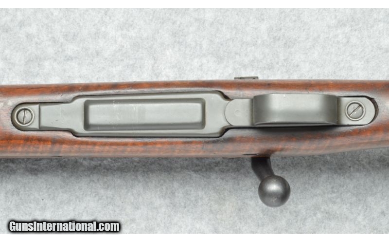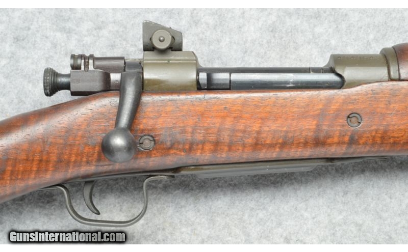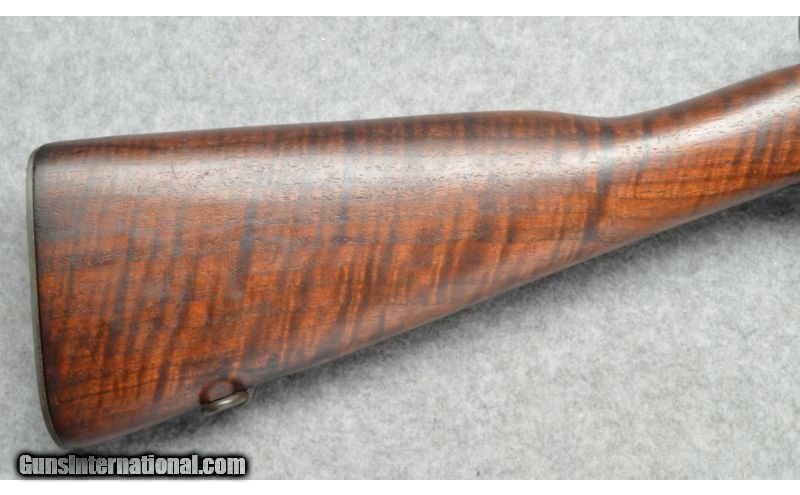 Description: SOLD Manufacturer: Manufactured in 1942. Caliber Info: .30-06 Sprg. Chambers: Bolt action, five round internal magazine. Metal Condition: Very good. Wood Condition: Very good. Bore Condition: Excellent, clean, shiny, like new. Barrels: 24 inch Parkerized barrel. Triggers: Two stage G.I. trigger. Stock: Exceptional Tiger striped stock with all three pieces matching. Stock Dimensions: 13 inch length of pull. Fore End: Smooth Tiger striped fore-end. Butt Pad: Steel butt plate with access door. Weight: 8 3/4 pounds. Sights: Hooded blade front sight, peep rear sight adjustable for elevation and windage. Item Location: Berlin, MA |