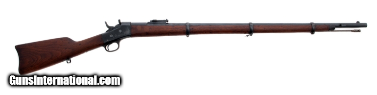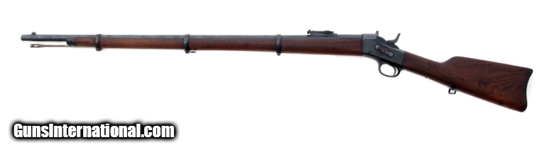 Description: Remington - Full Stock Military - .44 caliber - Item Number: REMNSN17 Rifle type: Single Shot Action: Rolling Block Barrel length: 36 Sights: Factory Sights Weight: 10 lbs, oz Overall condition: Good Stock condition: Good Metal condition: Good Stock: Original finish Metal: Original finish Type of Case: none Finish: Blue Type of Butt: Metal Pad thickness: " Manufactured in: USA Manufacture Year: Lop: 12 7/8 " Hand: Right Comments : This one is in nice shape. Good bore. R-178 SOLD |