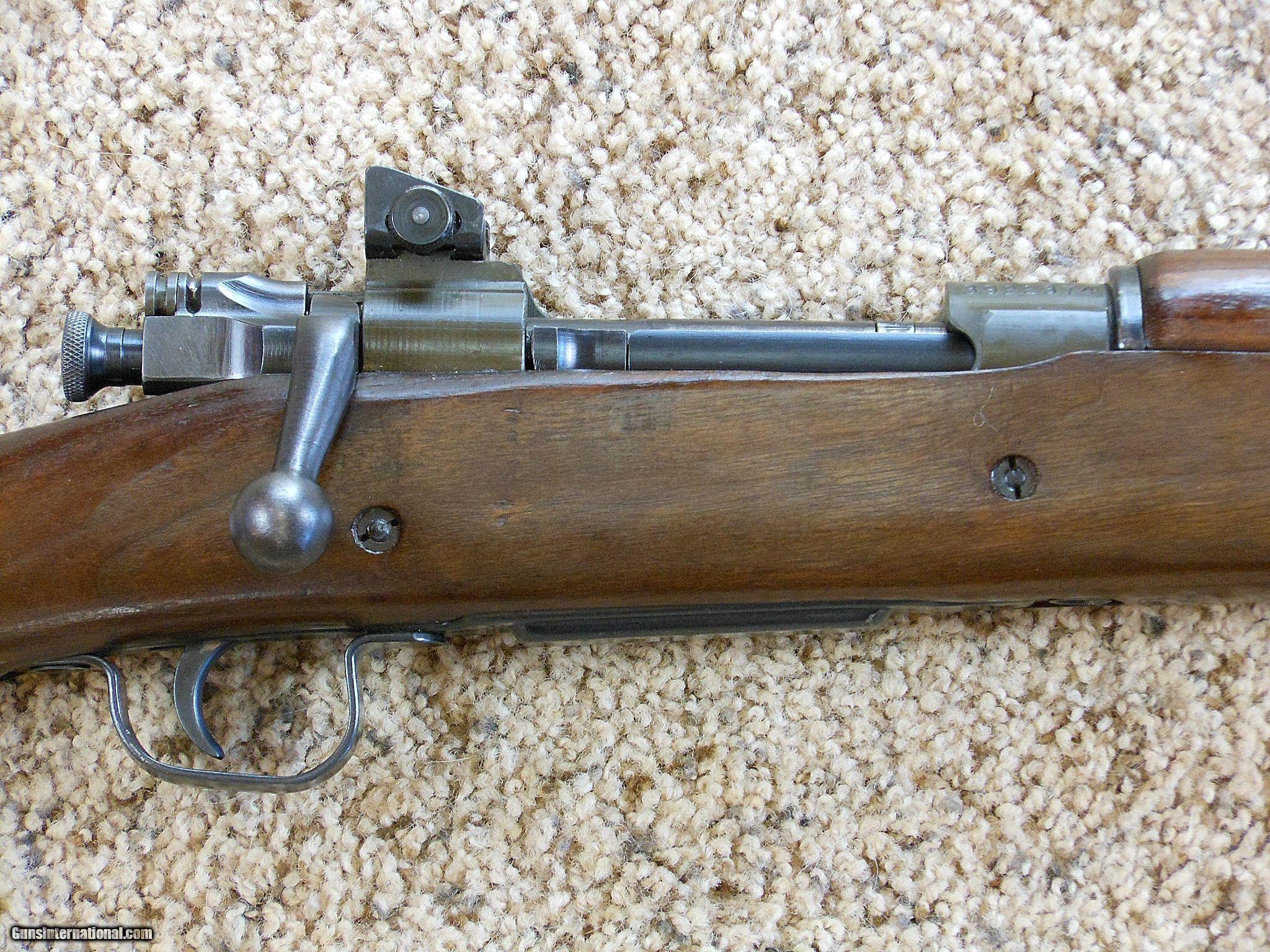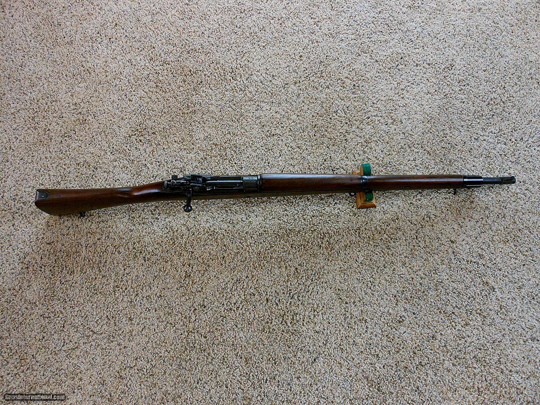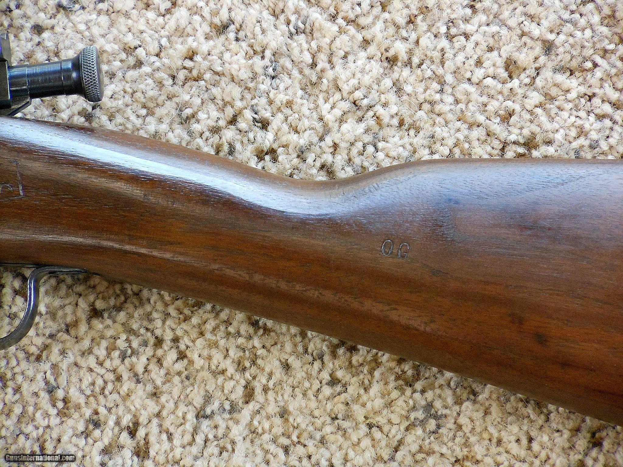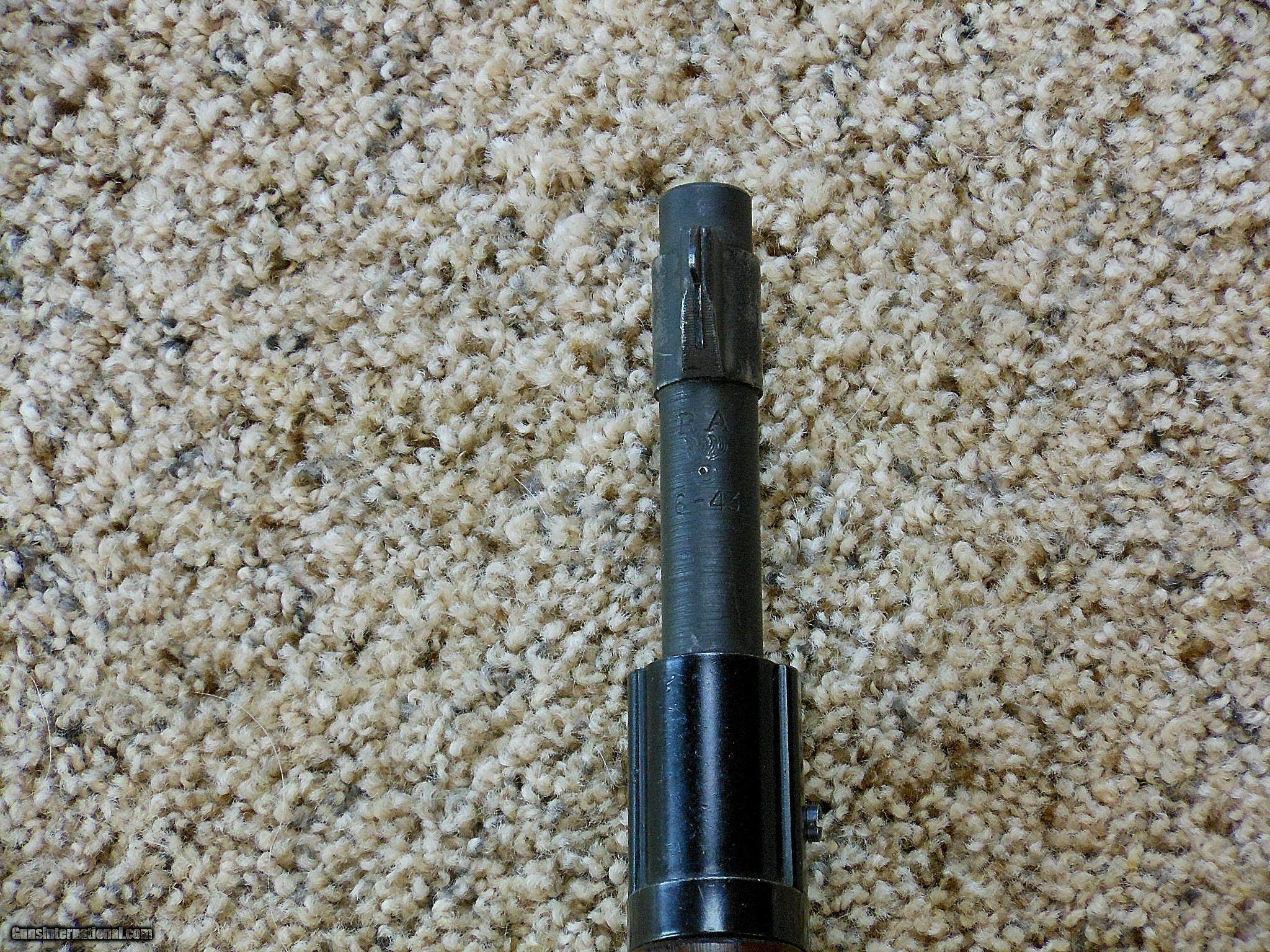 Description: This Remington's barrel date is 6-43. This rifle's serial number is 3922374. This is a complete as issued Remington 03-A3. The correct stamps are present on the stock such as the Frank J. Atwood inspection stamp on the left side of the stock under the bolt release. There is also the RA and Ordnance "Wheel" at that same location. Further down that stock is the OG stamp. The circle P is present below the trigger guard. Above the trigger guard housing is the correct stamps that you should see there. The bore is bright and free of defects. There is no damage to the stock or handguard. The sights are original to this rifle. This gun shows very little use or being fired. This rifle has not been through a rebuild program or arsenal rebuild. This Remington would rate a strong 98% overall original condition. This is a high quality collector grade 03-A3 military rifle. The 16 inch bayonet displayed with this rifle is a unissued 1942 dated [OL] for Oneida Limited. This blade is displayed for sale on my accessories listing. These two items together would display very well together. Search for hlvfineguns on google for more information. OKE Curio&Relic (7) F. No. 323 -17 SOLD Curio/Relic: Yes Manufacturer: Remington Model: 03 A3 Serial Number: 3922374 Caliber Info: 30 Government 1906 Condition: 98% Overall Condition Metal Condition: 98% Wood Condition: 98% Action: Bolt Manufacture Date: 6-43 Item Location: C R 700 |