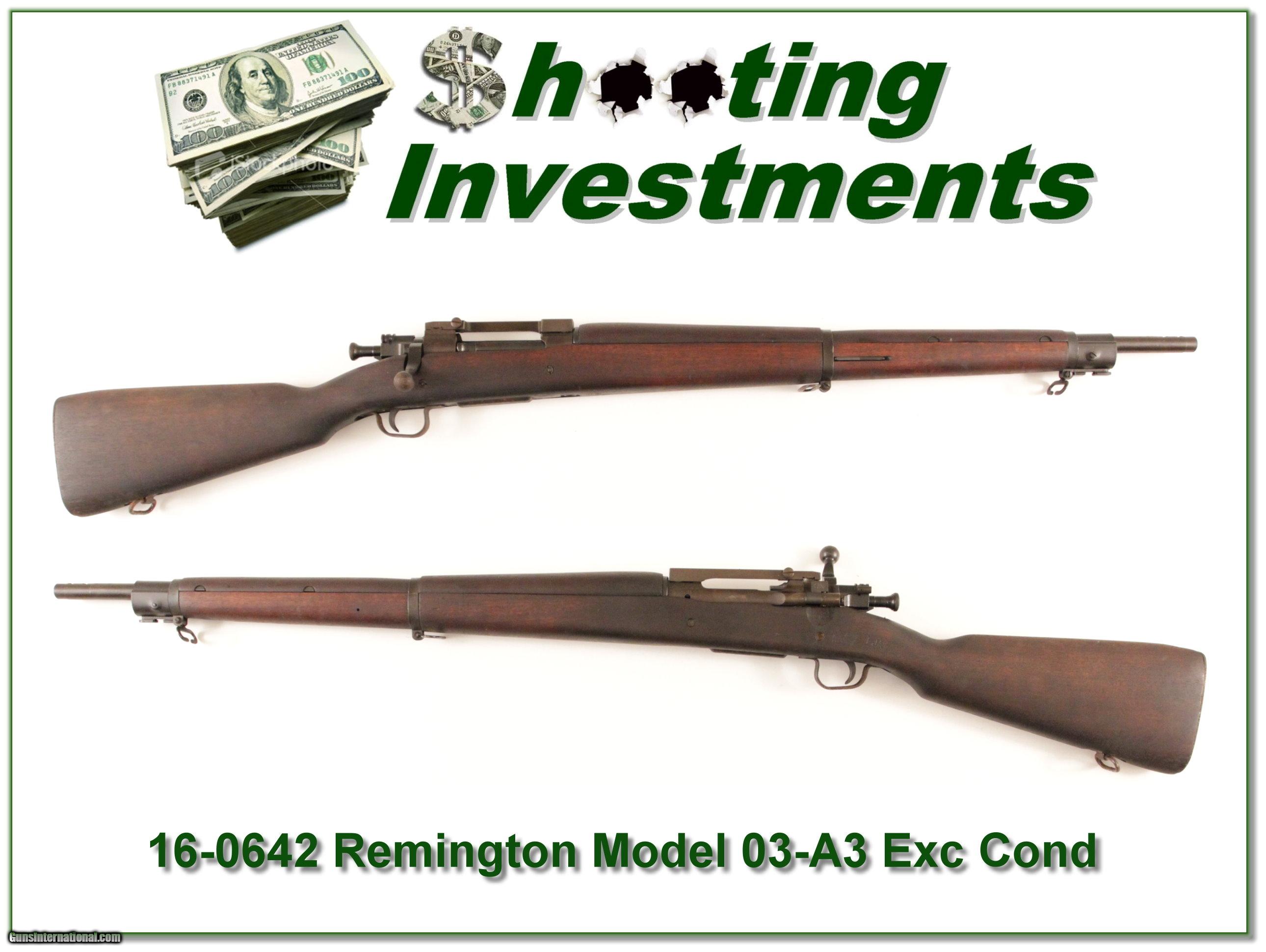 Description: This is a very nice Remington 03-A3. The barrel says RA 12-43, so 1943. The blue is excellent except the floorplate trigger guard have some rust. The front sight was removed and it comes with a Redfield scope base so it will be easy to add a scope. I am selling this for an estate and as such lay-a-way can’t be used. It does of course have the standard 3 day inspection. Shipping and insurance is $35 or $15 more if you want it shipped in a new Plano hard case. Please email me with any questions or larger pictures. (I now consign quality firearms only 10%! Let me know if you have any you would like to sell!) [16-0642] Payment: Payment is by Money Order, Cashiers Check or Personal Check. I can now also accept MasterCard and Visa with a 3% convenience fee. PayPal can be used for some items but never firearms. Please let us know if you would like to pay via PayPal. Shipping: The shipping charge will be listed in each description. It is $35 for most guns. Some heavy guns or those insured for over $2000 will be higher. Shipments to Alaska and Hawaii are higher because air shipment is required. Most firearms are shipped within 5 days of receipt of payment. We prefer shipping at the beginning of the week to avoid firearms in transit over weekends. We package all shipments carefully and insure them for the full purchase price, rounded up to the next $100. In the unlikely event that damage occurs, it is important that you save all packaging material for the claims process. Optics are shipped Priority Mail and most other non-firearm shipments are shipped First Class. Returns: Our return policy is simple. If for any reason you are not pleased with your purchase, you may return your item for a refund. The only exception is ammunition, it cannot be returned. It is important to us that you are happy. Guns cannot be fired or dissembled before returning them and must be returned in the same condition as received. Notification of a return must occur with-in 3 days of receipt at your dealer. Shipping, convenience and dealer fees are not refundable and are the responsibility of the buyer. Lay-a-way: If needed, we offer a 60 day lay-a-way option on most firearms. It is 1/3 now, 1/3 in 30 days and 1/3 in 60 days. Lay-a-way firearm sales are final. Consigning your firearms with Shooting Investments: We will help you get top dollar for your firearms. While most local guns shops charge 20% or more, our fee is only 10% with a minimum of $50. At your local gun shop it might take months to sell. Selling on-line provides instant access to thousands of interested buyers. You won’t find any other on-line dealer willing to sell your firearms for only 10% or listing every gun on 4 separate s. Selling through an House typically costs the seller 15% and the buyer an addition 15% (so 30%) and you have to wait several months to sell and longer to receive funds. If properly priced, we will sell your firearms in a week or two. Send us an email or give us a call and we’ll explain how easy it is for you to get top dollar. Trading: We collect guns and usually just trade for guns we want to add to our collections. We often sell guns for others wanting to purchase one of ours. We find this the most fair to both of us. Our Commission is only 10% and we hold the gun you want until yours sells. Please contact us if you want to sell one of yours to buy one of ours. Help for California Buyers: We are happy to ship to California. It is the buyer’s responsibility to make sure any item you buy is legal in your state. We are also happy to help with your purchase of a firearm from someone other than us. If you see a gun you would like to buy but the seller can’t or won’t ship to California we can help. You buy the gun and have it shipped to us. We’ll then ship it to your California dealer. The cost for this service is only $30 + shipping. Let me know if we can help! SOLD |