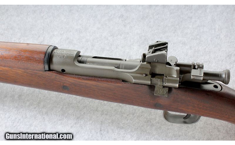 Description: The Remington US Model 03-A3 was one of the main American battle rifles produced and used in World War Two. The 03-A3 version of the venerable Model 1903 had changes that decrease production cost including deleting the barrel mounted rear sight and replacing it with the action mounted aperture sight. The rear aperture sight was a better battle sight. This rifle is good representative example of the Remington 03-A3. Manufactured June 1943. .30-06 Springfield SOLD Metal Condition: Very good with wear on the sharp edges Wood Condition: Sanded and refinished with no visible cartouches Bore Condition: "Very good, sharp and bright Barrels: 24 inch barrel with RA 4-43 date stamp Triggers: Two stage trigger Stock Dimensions: 13 inch LOP Butt Pad: Steel plate with trap door Weight: 8 Lbs. 2 Oz. Sights: "Aperture rear sight, front sight blade is missing Item Location: Lehi, UT |