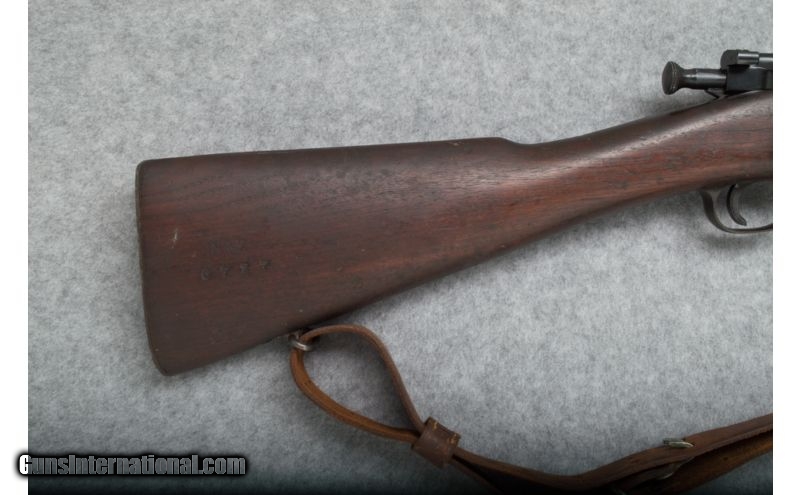 Description: Used. Armory Refurbished; New Zealand Lend Lease with all Cartouches. RARE! SOLD Curio/Relic: Yes Caliber Info: .30-06 SPRG Metal Condition: Good, overall; some rust on floorplate Wood Condition: Solid; no cracks; finish well worn Bore Condition: Good; clean and sharp Barrels: 24 Triggers: Smooth; steel Stock: Straight grip walnut Stock Dimensions: LOP - 12 7/8 Fore End: Smooth walnut with barrel band and handguard Butt Pad: Steel butt plate with compartment (no cleaning kit) Weight: 9 lbs. 1 oz. Sights: Folding vernier rear; blade front Extras: Leather sling. Item Location: Rogers, AR |