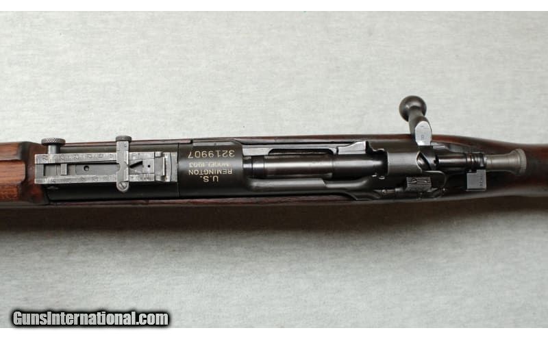 Description: Very good condition, some wear, nicks and scratches. HS Barrel dated 10-44. The M1903 Springfield, officially the U. S. Rifle, Caliber .30, M1903, is an American five-round magazine-fed, bolt-action service repeating rifle, used primarily during the first half of the 20th century. The M1903 was first used in combat during the Philippine–American War, and it was officially adopted by the United States as the standard infantry rifle on June 19, 1903, where it saw service in World War I, and was replaced by the faster-firing semi-automatic eight-round M1 Garand starting in 1936. However, the M1903 remained in service as a standard issue infantry rifle during World War II, since the U.S. entered the war without sufficient M1 rifles to arm all troops. It also remained in service as a sniper rifle during World War II, the Korean War, and the Vietnam War. It remains popular as a civilian firearm, historical collector's piece, a competitive shooting rifle, and as a military drill rifle. .30-06 Springfield SOLD Curio/Relic: Yes Chambers: Bolt action Metal Condition: Very good Wood Condition: Very good Bore Condition: Good rifling Barrels: 24 Triggers: Standard military trigger Stock Dimensions: 13" LOP Fore End: Wood handguards Butt Pad: Metal butt plate Sights: Adjustable military iron sights Item Location: La Vista, NE |