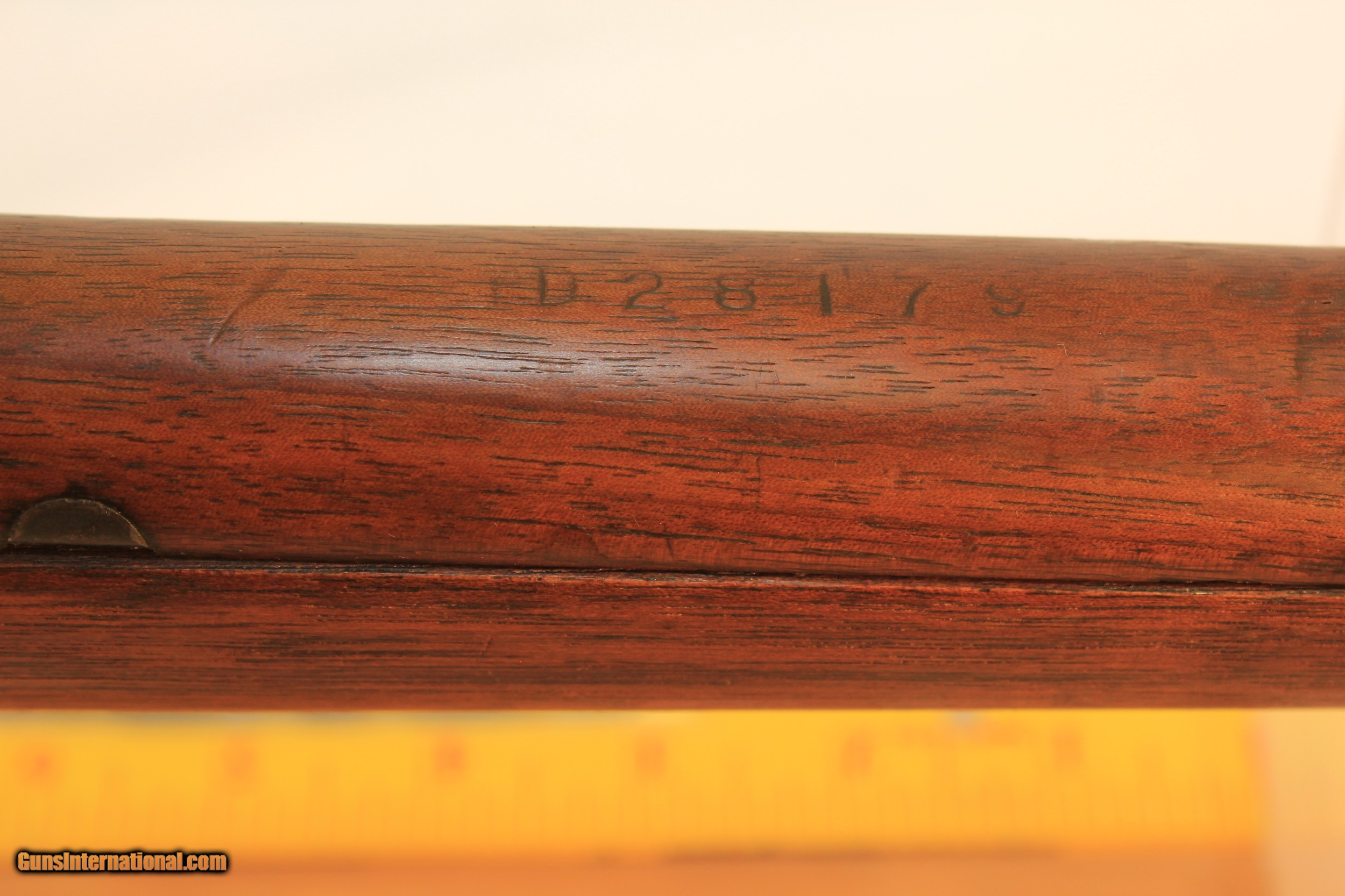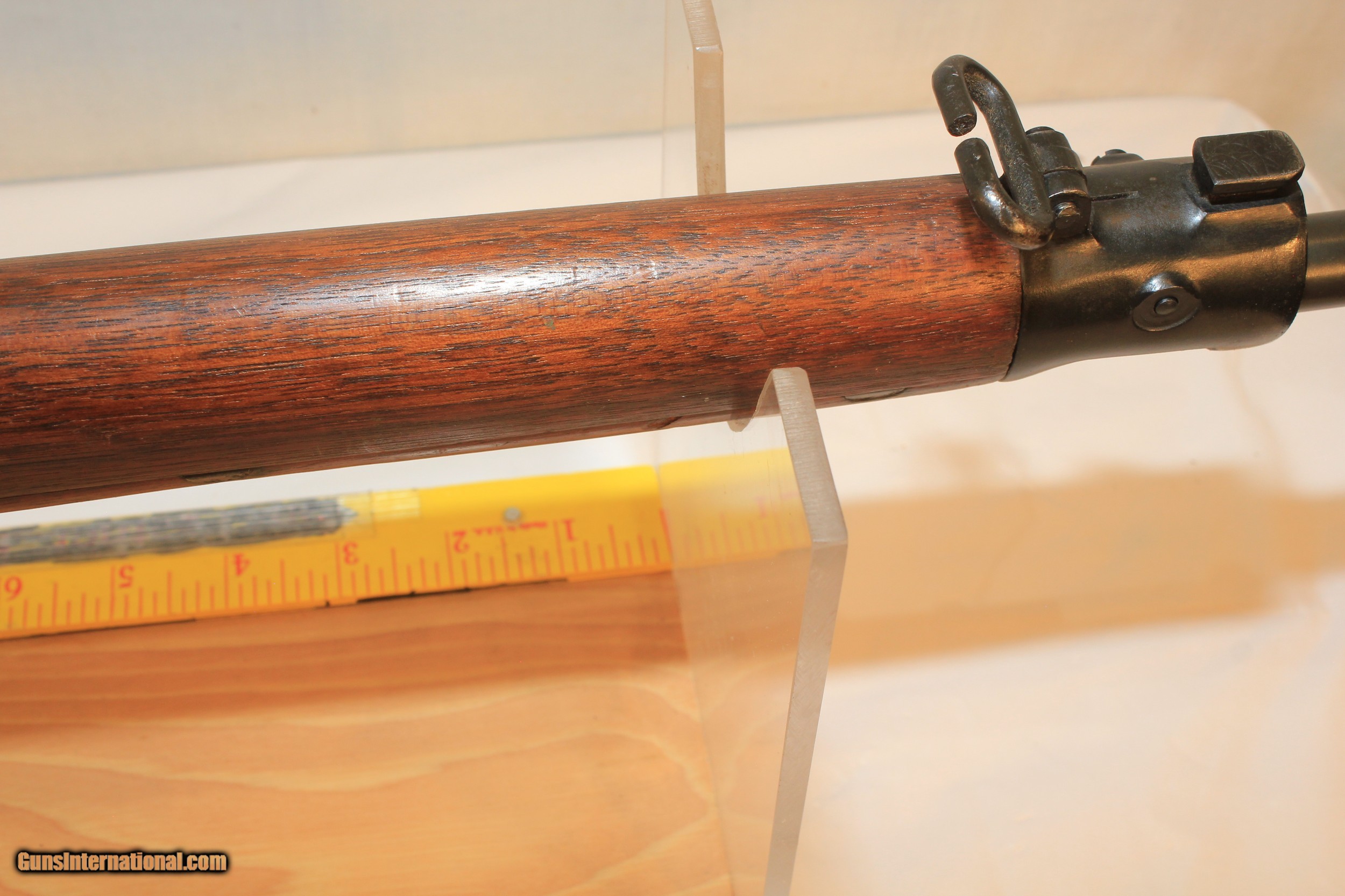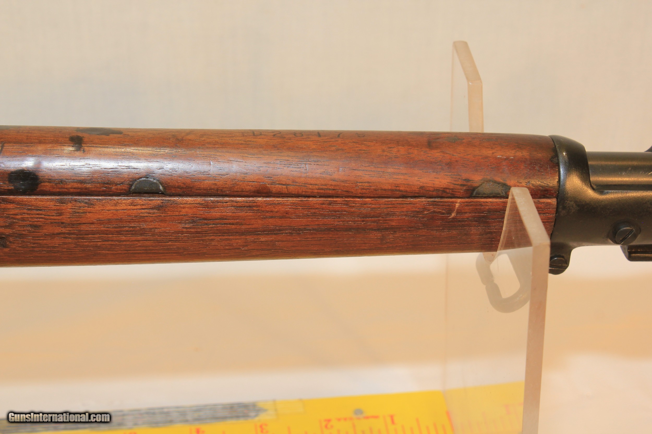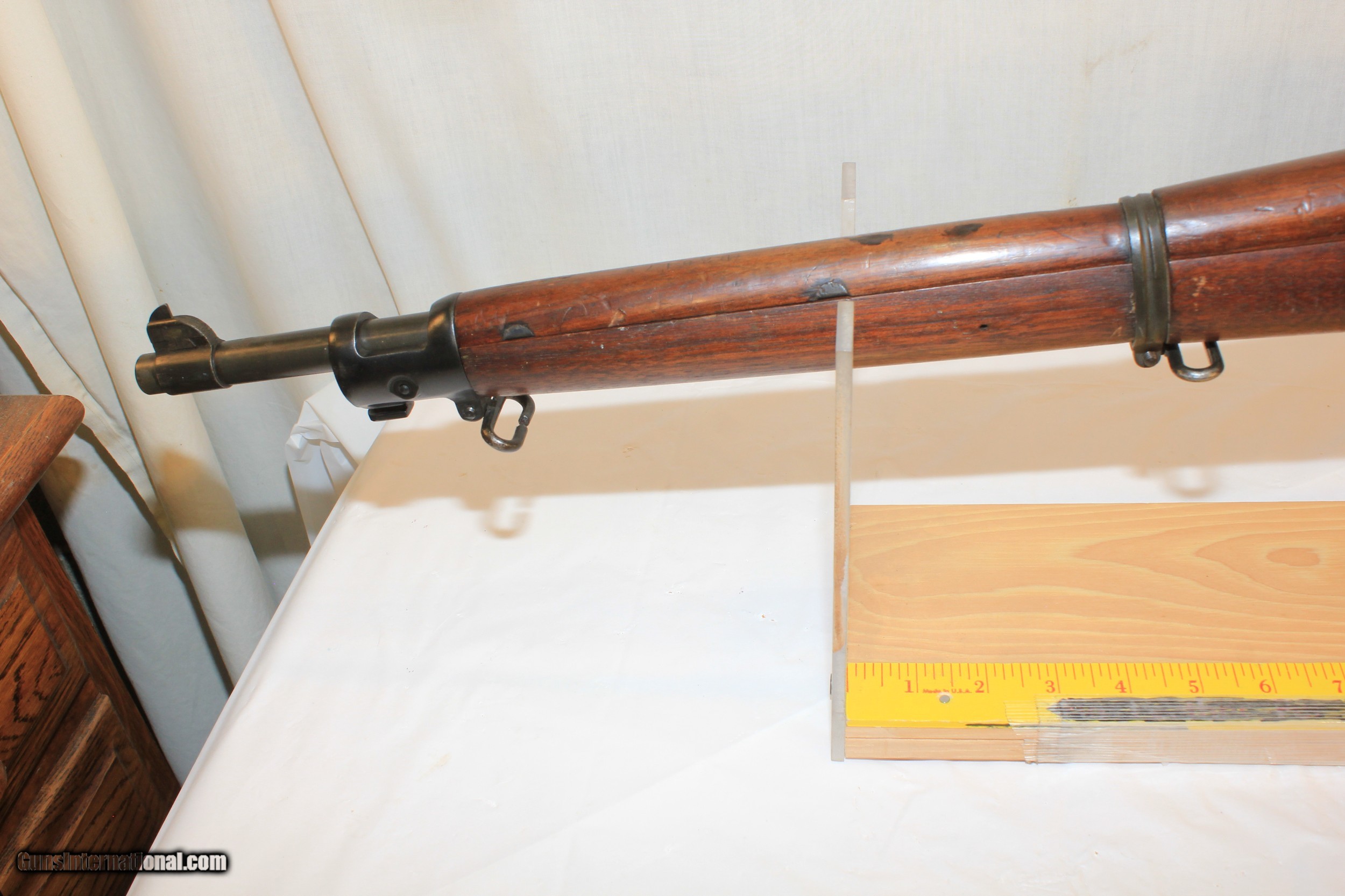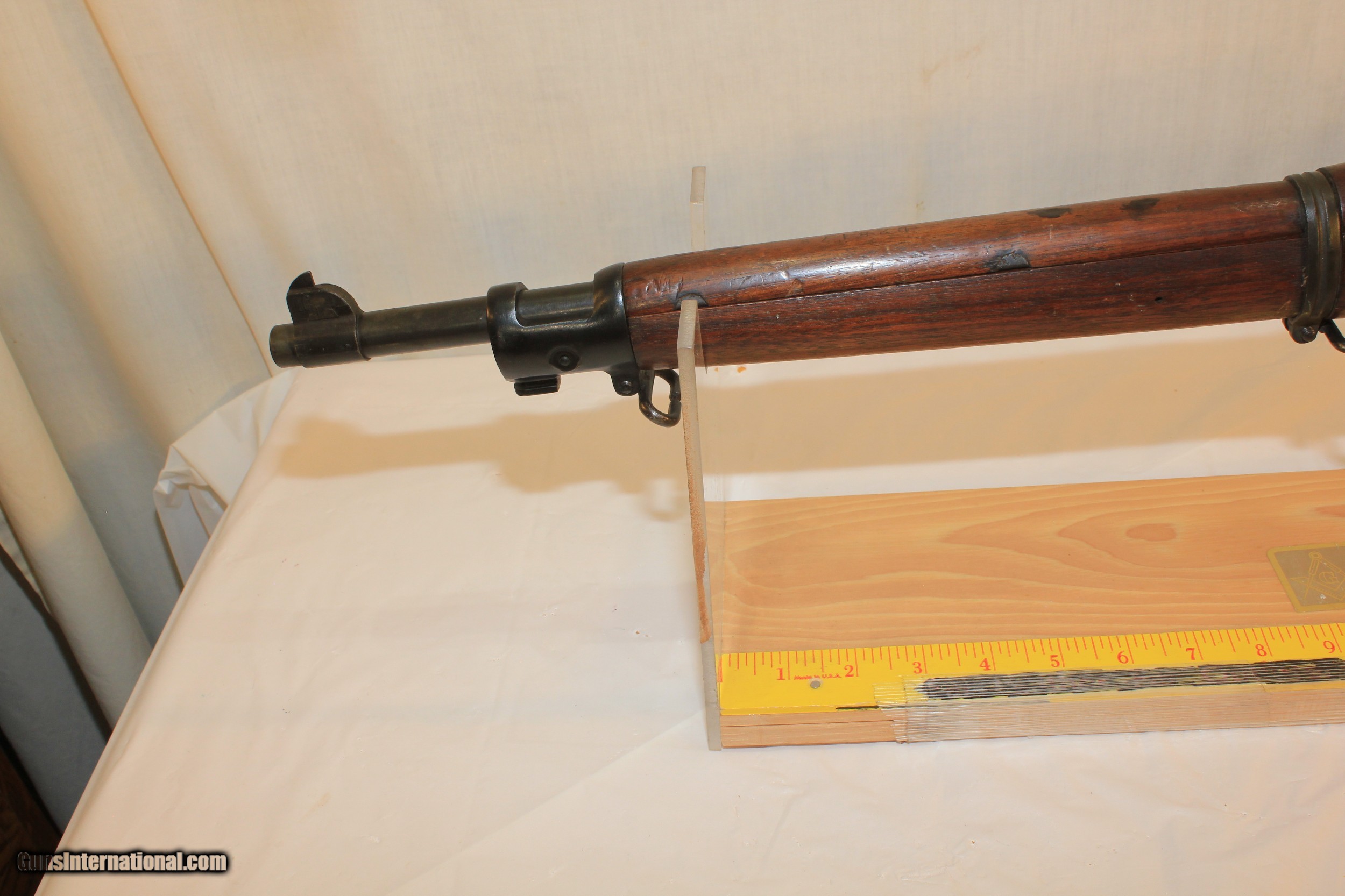Description: This is a Remington made 1903 rifle with the barrel dated 4-42 with a very good bore with light oxidation in the groves. The nose cap and magazine floorplate show reapplier blue and the floorplate has areas of light wear and spots of oxidation. The walnut stock is in very good condition and the upper handguard has four light dings marked with a dark stain.The steel buttplate has worn to gunmetal gray with finish remaining in the groves. The stock is marked behind the trigger guard wit a crisp circled P proof mark. Receiver and barrel marks remain crisp and easily legible and the bolt shroud, safety tab, rear sight assembly barrel band are all "R" marked. Overall a nice original Remington made 1903 Rifle. $50.00 Shipping via Priority Mail C&R OK SOLD Curio/Relic: Yes |