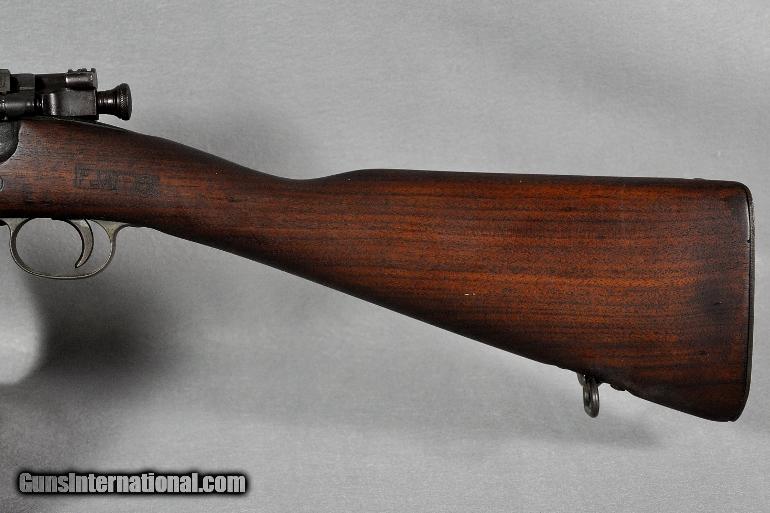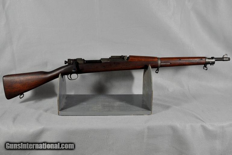 Description: Remington, bolt action repeating rifle, Model 1903, U. S. Military rifle, caliber .30-06, s/n 3203212, JAMES RIVER ARSENAL REWORK TO 100% ORIGINAL FACTORY SPECS, Receiver: parkerized, 98% plus condition, marked "U. S. Property", Barrel: 24" length, marked "R. A.", flaming bomb, dated 12/43, 2 groove bright Excellent bore, Stock: straight, military oil finish 100%, Excellent to MINT condition, marked "FJA" (Frank J. Atwood) inspector, & crossed cannons cartouche, "P" proof in circle behind trigger guard, buttplate is standard steel military with trapdoor, Sights: folding leaf rear sight, ramp front sight, Misc: sling swivels, stacking swivel, Retail value $1000.00 Sale priced at $895 We have been in business for over 54 years under the same ownership. We are receiving up to 50 e-mails daily. All buyers are taken on a strict first come-first served basis depending on the date and time we receive their e-mail. We strive to describe all of our sale items accurately and fully and include professional quality photos of each item. We do our best to point out negatives (if any) regarding a sale item. Although we offer a 3-day, no questions asked, return policy it has rarely been used the entire time we have been in business. The first potential buyer who states that he definitely wants an item gets it. Those having questions who do not commit to purchase in their first inquiry will have their questions answered but may lose the sale if another buyer e-mails after they do and commits to purchase before we can get back to the first inquirer to answer their questions. This happens almost daily and disappoints a lot of people. If you see something you want- commit to buy it. You will not be disappointed. We cater to first time GI buyers. You can purchase from us with total confidence. We will guide you through the purchasing process if need be. We add guns and gun related items to GI virtually every day. Want to visit a gun show right on your computer? It’s as simple as 1, 2, 3. 1) Go to the GunsInternational homepage. 2) Look UNDER the search box on the homepage and CLICK DIRECTLY ON THE WORDS "Advanced Search (Help!)", 3) Type “Maryland Arms Company” into the "Sellers Screenname" box and click on the "Search" box at bottom of screen. Over 100 guns and related items we currently have listed on GI will come up with photos and complete descriptions that are available for purchase right now. We keep our ads current. This stuffs for sale immediately. No fooling around trying to beat out other people. No stupid fees. Who hasthe time and money for that? That’s the beauty of GI. Tell all your friends. USA sales only except CA.Thank you. SOLD Curio/Relic: Yes |