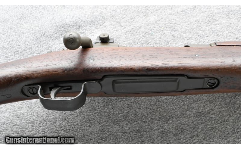 Description: Made in May 1943 according to the serial number lookup. This is the nicest O3-A3 we have seen at this Gun Library and, at a very reasonable price. .30-06 Springfield SOLD Curio/Relic: Yes Chambers: .30-06 Springfield in a five round internal box magazine bolt action rifle Metal Condition: Very good arsenal refurbished Wood Condition: Very good straight grip stock with inspector marks FJA (Lt. Col. Frank J. Atwood) and O. G. (Ogden Arsenal) Bore Condition: The bore is near new in appearance Barrels: 24" Four Groove R.A. 3-43 Triggers: Two Stage Military Stock Dimensions: 12 3/4" LOP Fore End: "Full length walnut with upper handguard, barrel band sling swivel, stacking swivel and bayonet lug Butt Pad: Stamped metal with trap Weight: 8 lbs. 12 oz. Sights: "Hooded blade front, adjustable aperture rear Item Location: Grand Junction, CO |
