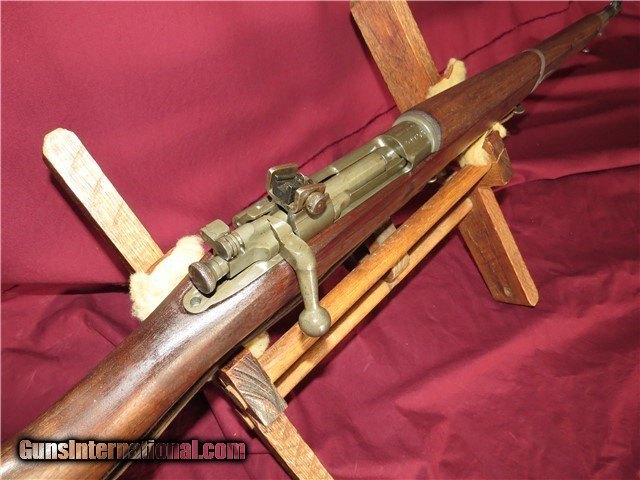 Description: Remington Model of 1903A3 WWII issue Bolt action battle Rifle. The serial of this example is 3549275 placing date of manufacture in 1943. Overall condition is excellent with a near perfect bore. The bore will rate a 9.5 on a 1 to 10 scale. The bore is bright, shiny from breech to muzzle. The bore gauges T.E.- 1 and M.- 1. The finish will rate 99%, original untouched and toned to a very nice dark green as you would expect. The stock indicates the rifle was stored at the Ogden, Utah Armory prior toeing released through the NRA or DCM. This rifle has the original leather 1907 sling included! Please phone Tommy at (760)-912-3761 or E-Mail all questions and concerns. $35.00 shipping. Insurance will be additional. SOLD |