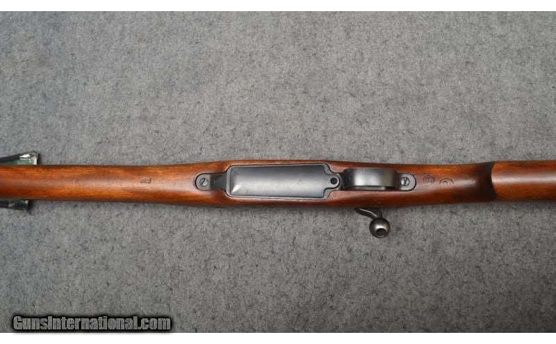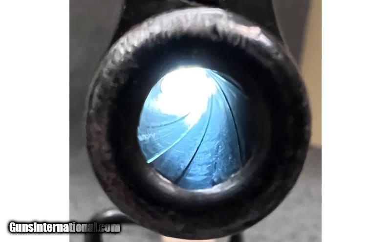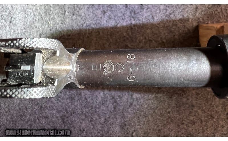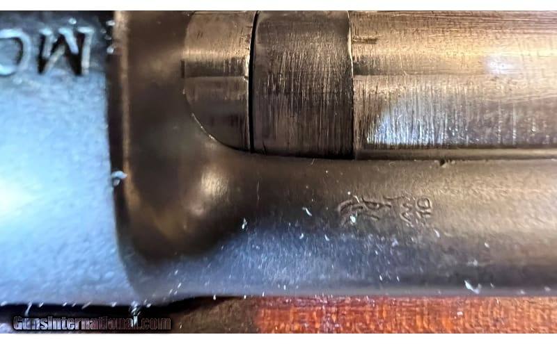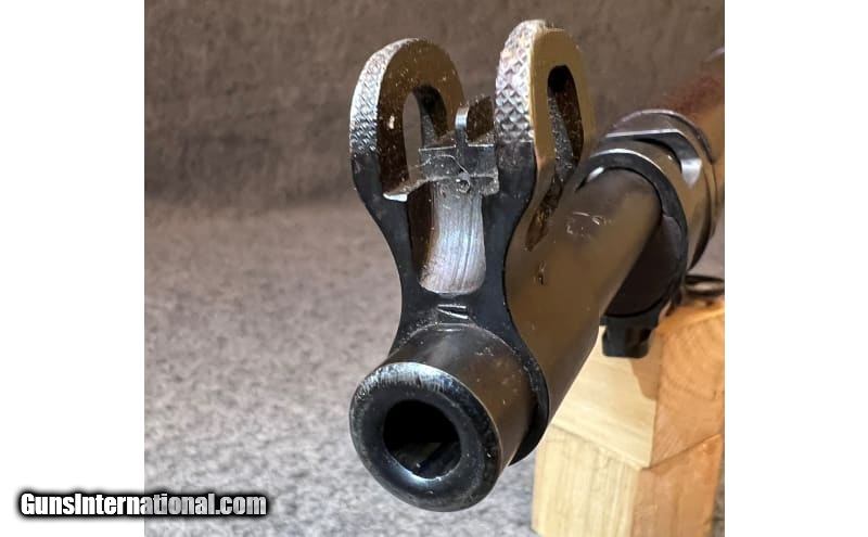 Description: This WWI bolt action rifle is a Remington Model of 1917 chambered in .30-06 Springfield. Remington's production of the Model 1917 rifle was a premier achievement in arming the American soldier in World War I. This particular firearm has a number of cartouches on the stock and markings on the receiver and other parts (see photos), a steel butt plate with cleaning kit storage door (no actual cleaning kit included), a winged-protected fixed blade front sight, and a rear sight with a folding leaf adjustable for elevation, but not windage. The barrel is marked "E, flaming bomb, 6-18," and the left side of the stock is a boxed O.G.E.K. The bluing is in good condition overall with considerable loss at muzzle and on the sharp edges. The wood is in good condition with no chips, but does show considerable handling wear and marks throughout. This firearm has a great patina throughout. .30-06 Springfield SOLD Curio/Relic: Yes Metal Condition: Bluing is in good condition overall with considerable loss at muzzle and on sharp edges Wood Condition: "Wood is in good condition with no major chips, but does show considerable handling wear and marks throughout Bore Condition: Bore is bright and shiny with strong rifling Barrels: 26" barrel Stock Dimensions: Overall length 46¼ Butt Pad: Steel butt plate with cleaning kit storage door (no cleaning kit included) Weight: 9 lb 9 oz Sights: "Winged-protected fixed blade front sight, rear sight is a folding leaf adjustable for elevation, but not windage Item Location: Wichita, KS |