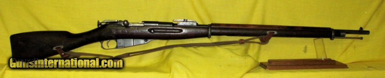 Description: REMINGTON model NAGANT in 762X54R CAL., with 32 1/2" barrel. Color BLUE. NICE HISTORICAL FIRE ARM MADE AT THE REMINGTON ARSENAL, 60% FACTORY BLUING, NICE CARTOUCHES, SQUARE RECEIVER. SHINNY BORE, Condition 75%. SOLD |