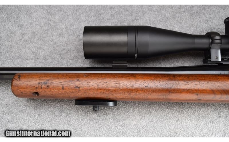 Description: This Remington 40X was manufactured in July 1958 and remains in very good overall condition. Gun is stamped "U.S.M.C. Property" on left side of receiver. Wood is solid showing light use marks all over and has darkened with age. Gun also has arsenal numbers stamped on bottom of pistol grip. Bottom forend has a target forend with sling swivel stud added. Scope blocks remain on barrel. Original blue and bore remain excellent. Complete with Weaver 6-18x44 scope on Picatinny rail. Nice old Remington! .22 Long Rifle SOLD Metal Condition: Excellent Wood Condition: Very Good Bore Condition: Excellent Barrels: 28" Heavy Barrel Triggers: Factory Stock Dimensions: 13 5/8" LOP Fore End: Uncheckered Walnut Stock - Uncheckered Walnut Forend Butt Pad: Ribbed Black Hard Rubber Butt Pad Weight: 11 1/2 lbs Sights: Scope Blocks Attached - Weaver 6-18x44 Scope with Duplex Reticle on Picatinny Rail Item Location: Wheeling |