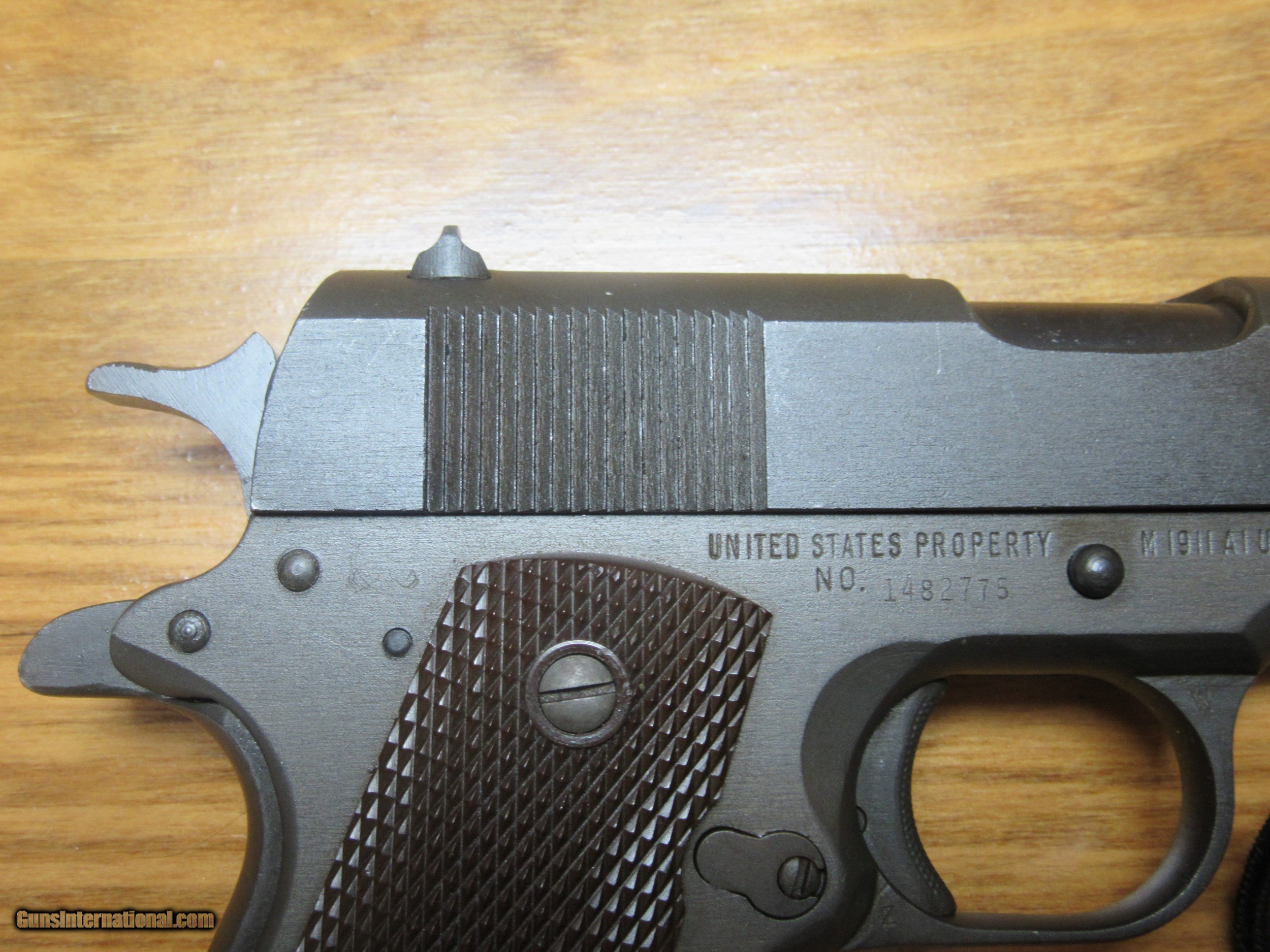Description: High condition Remington Rand 1911A1. High Standard barrel excellent bore. Non original magazine. On Hold SOLD |