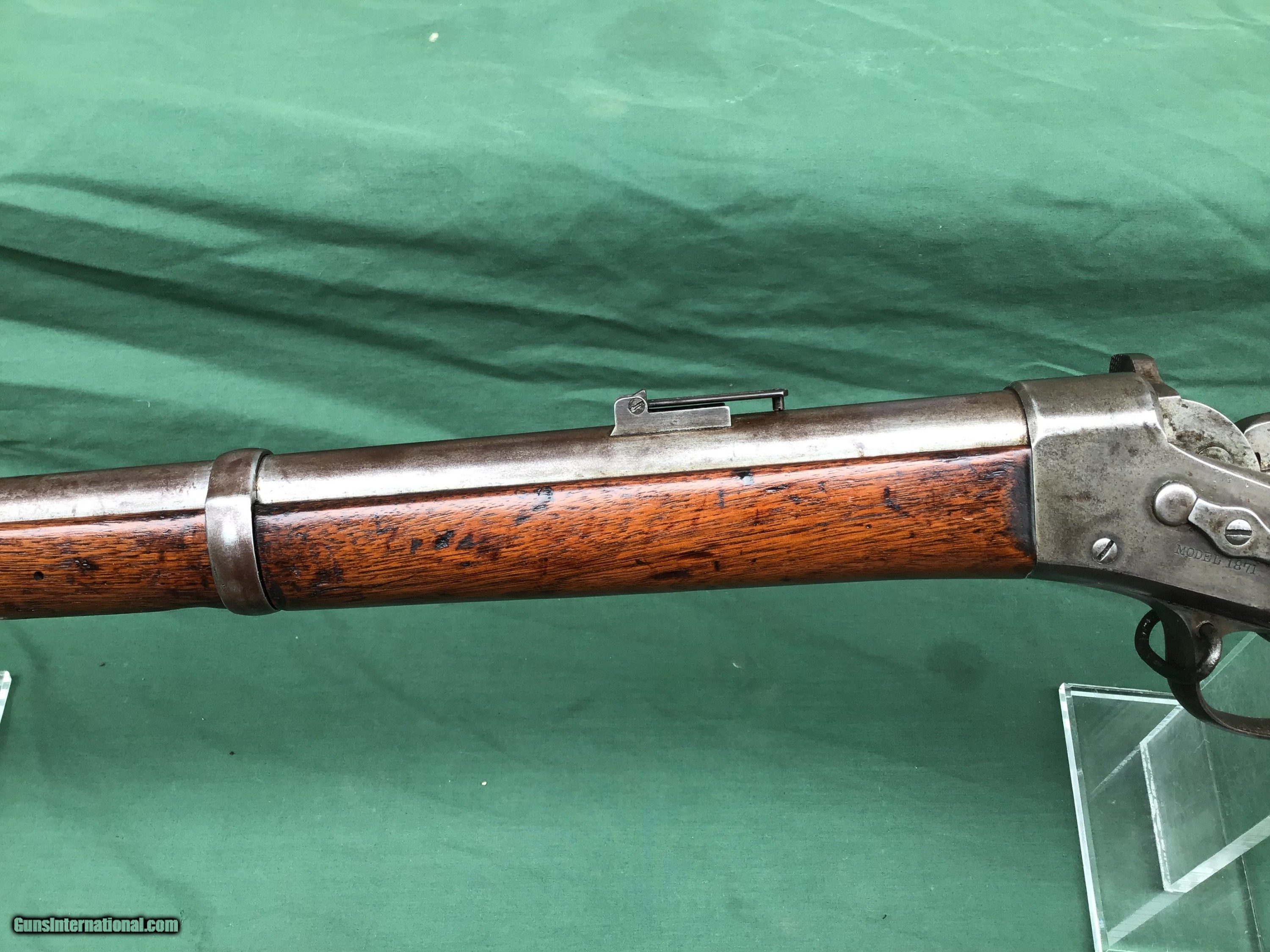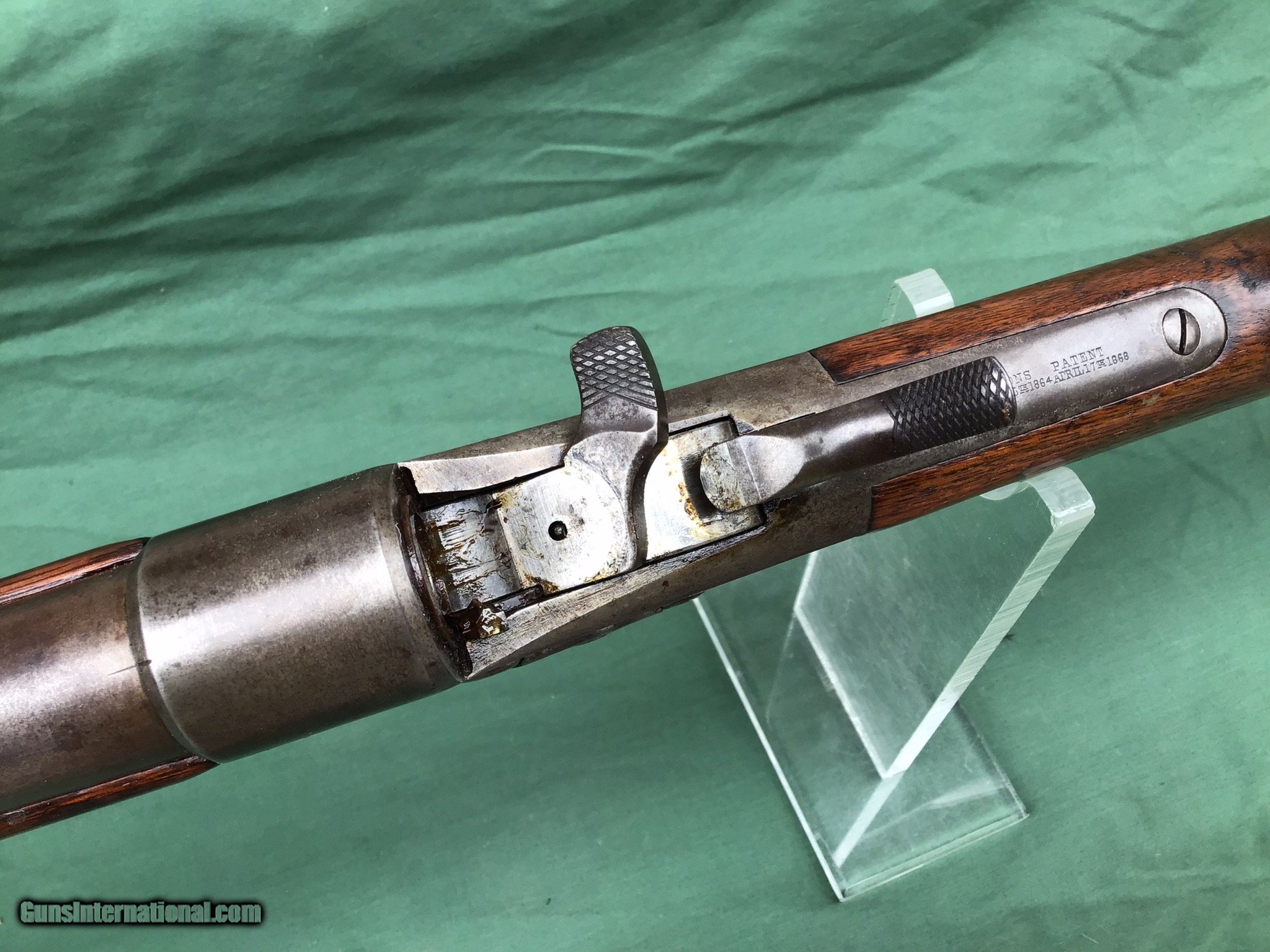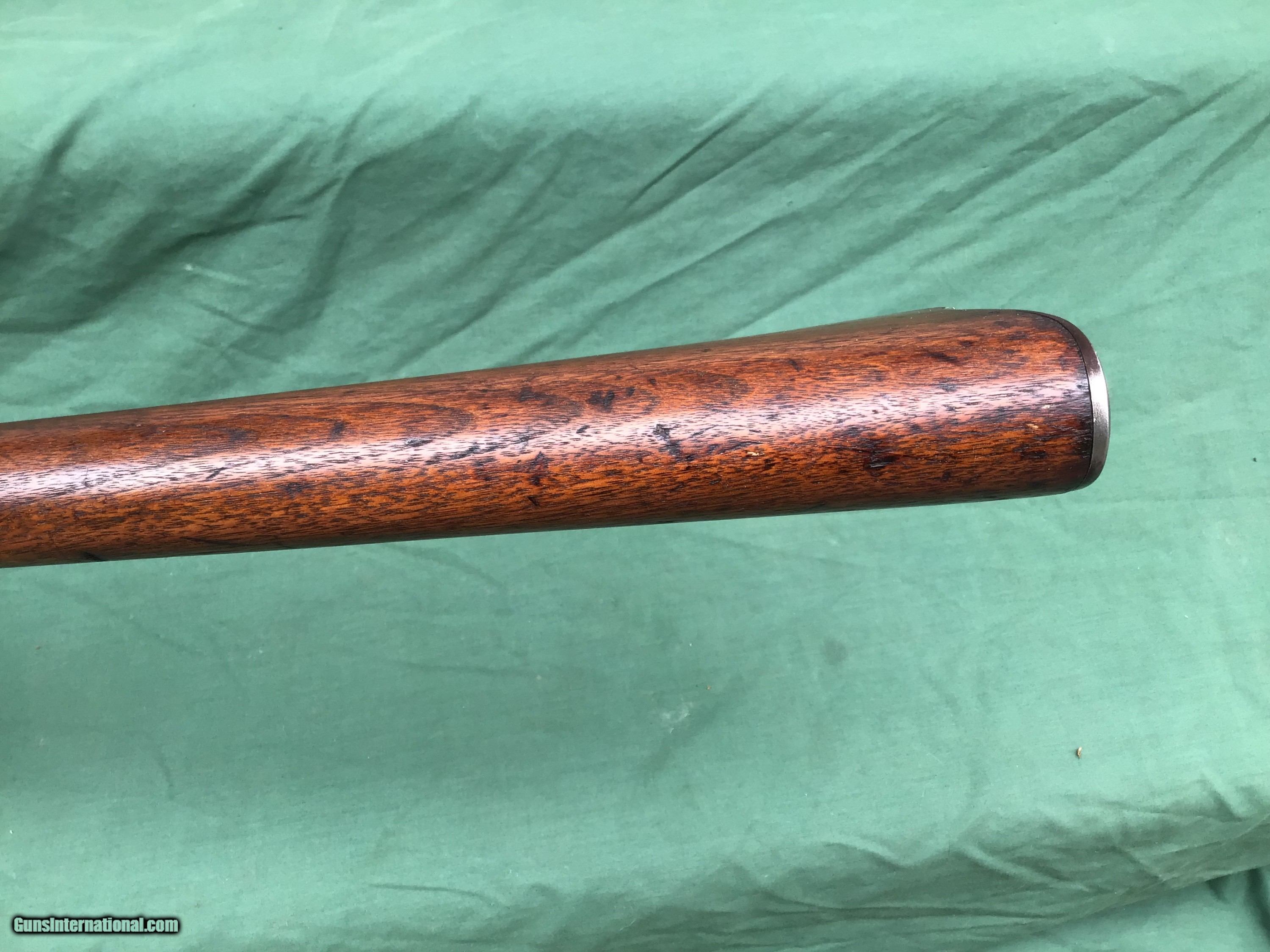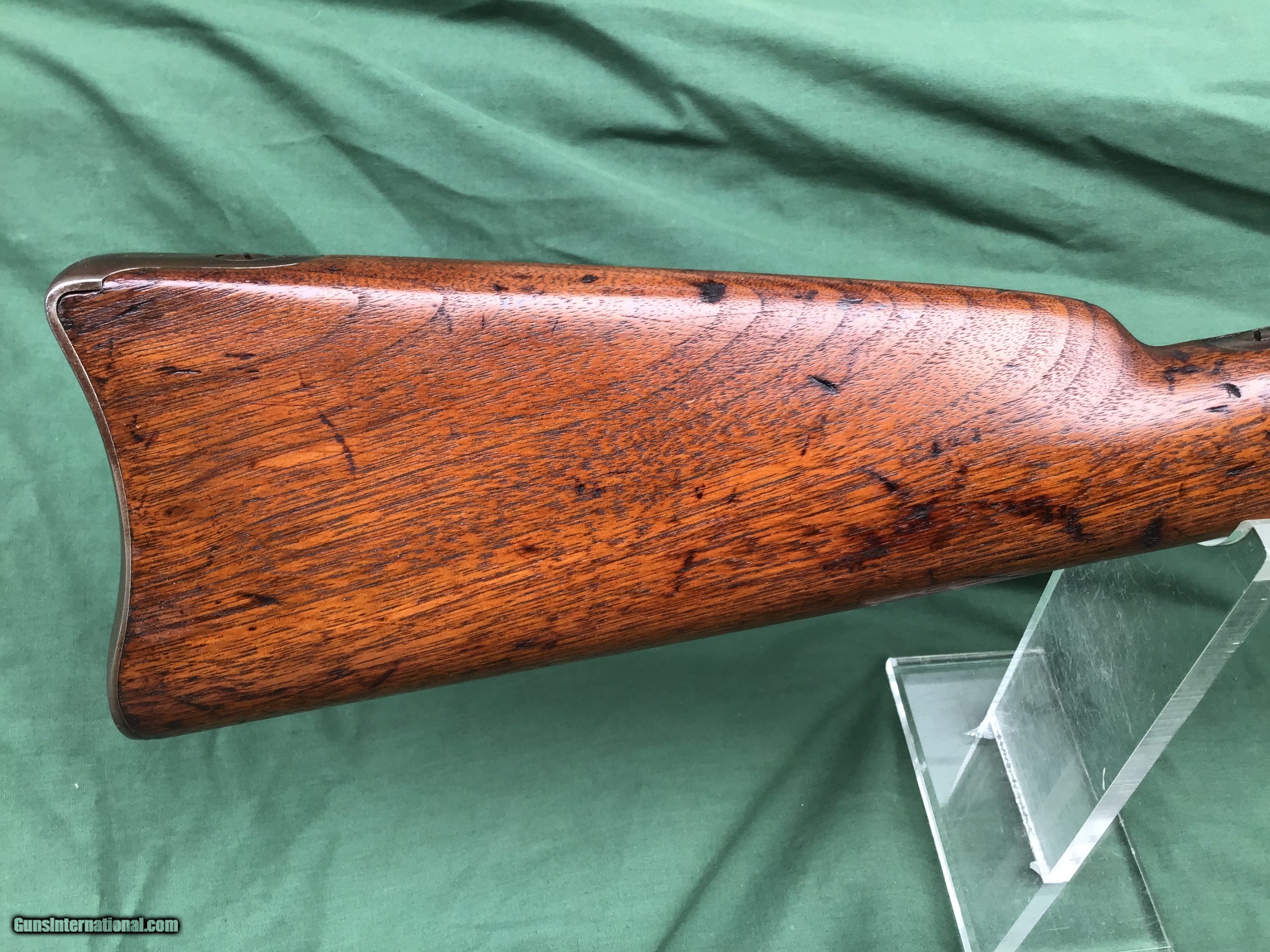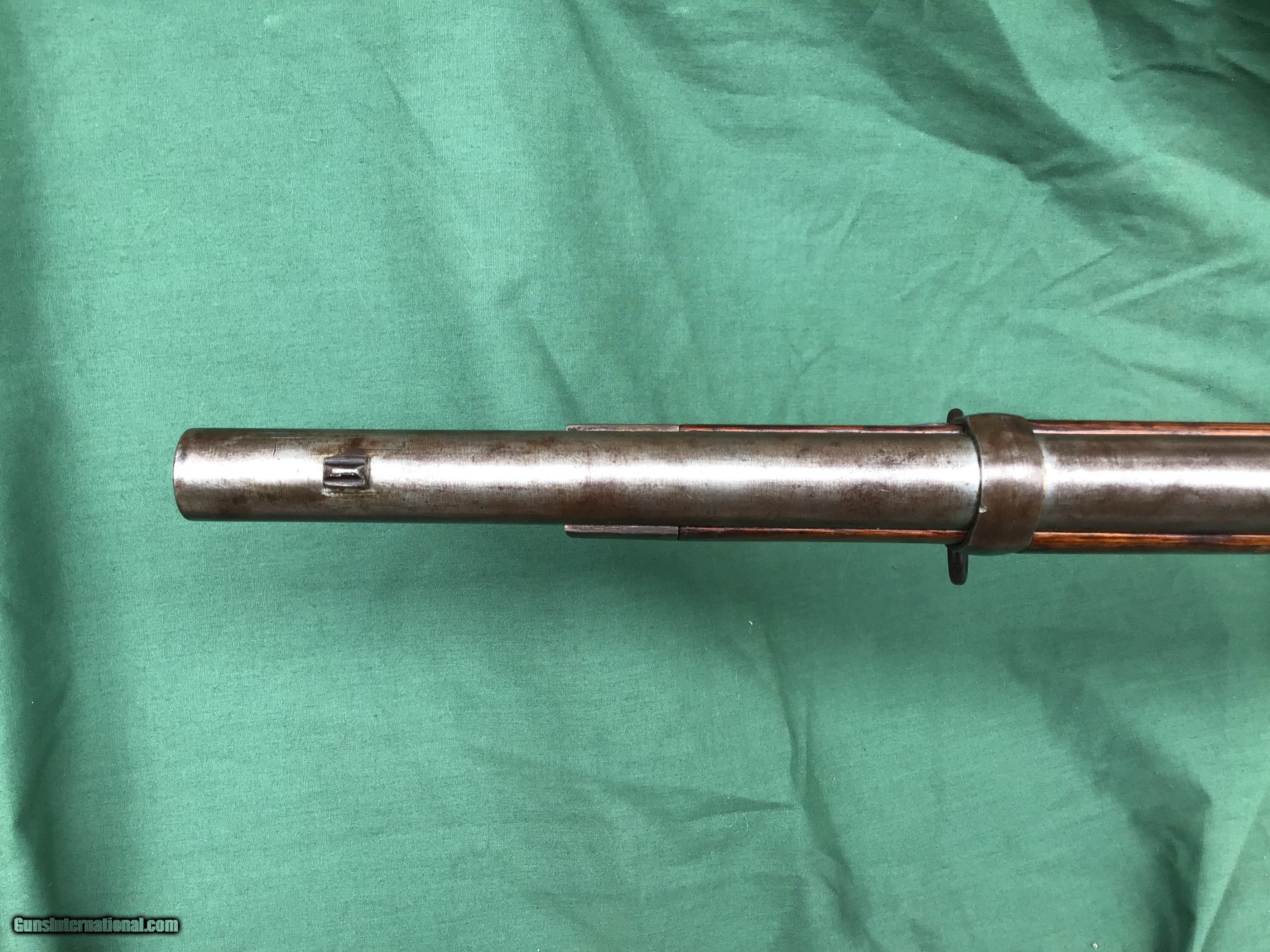 Description: Model 1871 Rolling Block Rifle U.S. Army Rifle made in partnership with Remington and Springfield. Manufactured in 1871-1872. 50 caliber Centerfire with a 36" round barrel. Very nice bore. Correct sights. Barrel retains a nice gray / brown patina. Rifle has all the correct markings and a nice cartouche on left side of wrist ( see pic). Receiver has traces of case colors with the remainder a gray / brown patina. This is a rarely seen military rifle, especially in this condition. Please feel free to ask questions. Antique and can be shipped directly to your doorsteps. SOLD Antique: Yes |