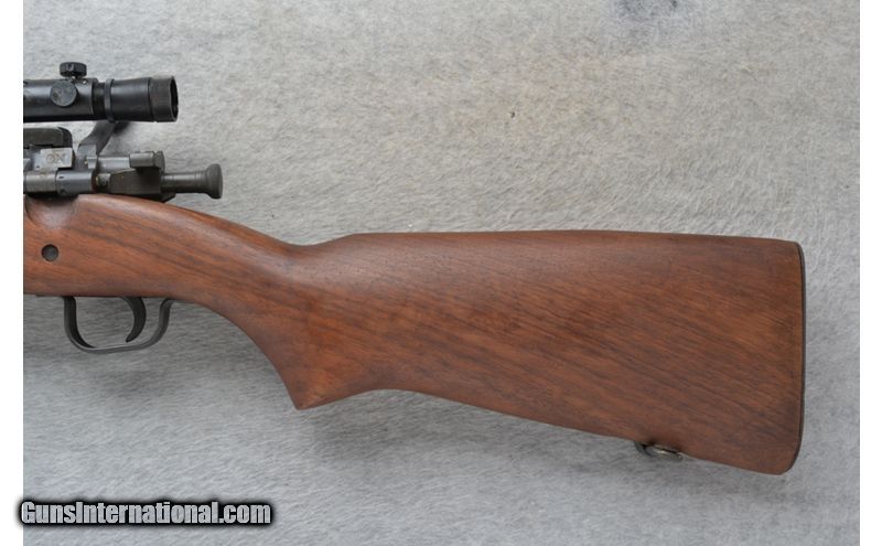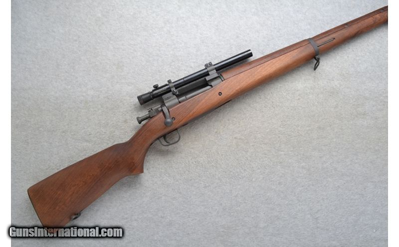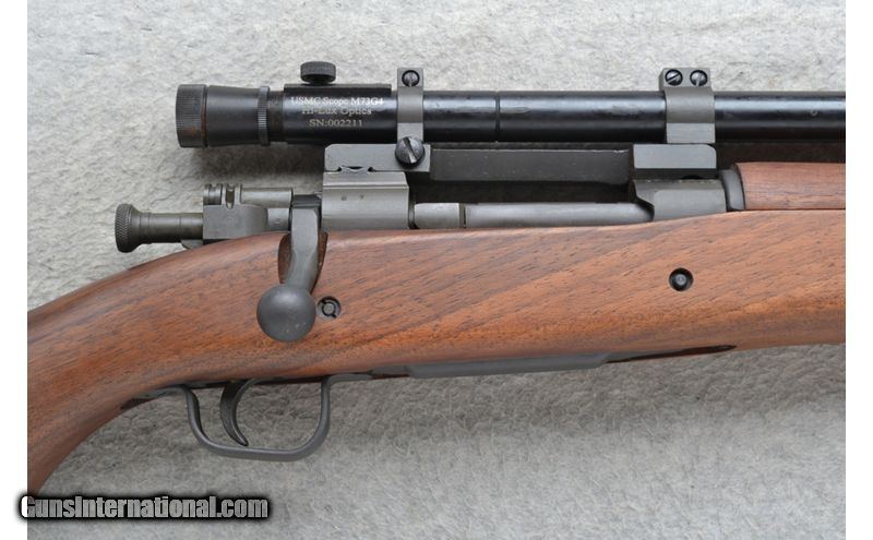 Description: This Remington U.S. Model 03-A3 (Sniper Rifle) is a right hand bolt action rifle in .30-06 Sprg. Cal. It has a 24 inch barrel. It is outfitted with a USMC Scope M73G4 Hi-Lux Optics Scope. No iron sights. The butt stock is a smooth grip walnut pistol grip. The forearm is a smooth grip two piece walnut. Receiver Serial Number 3708702 (1942). The barrel is stamped RR 2013. It remains popular as a civilian, collector's, competitive shooting and military drill rifle. .30-06 Springfield SOLD Curio/Relic: Yes Chambers: Bolt Action 5 round stripper clip internal magazine. Metal Condition: Very good. Butt plate has some pitting. Wood Condition: Excellent. Original stock has been replaced. Bore Condition: Excellent. Barrels: 24 inch. Stock Dimensions: LOP 13 1/8 inches. Fore End: Smooth grip two piece hardwood. Butt Pad: Smooth steel plate with a trap door storage compartment. Weight: 9 lb. 8 oz. Sights: USMC Scope M73G4 Hi-Lux Optics (S/N:002211) Scope. No iron sights. Item Location: Richfield, WI |
