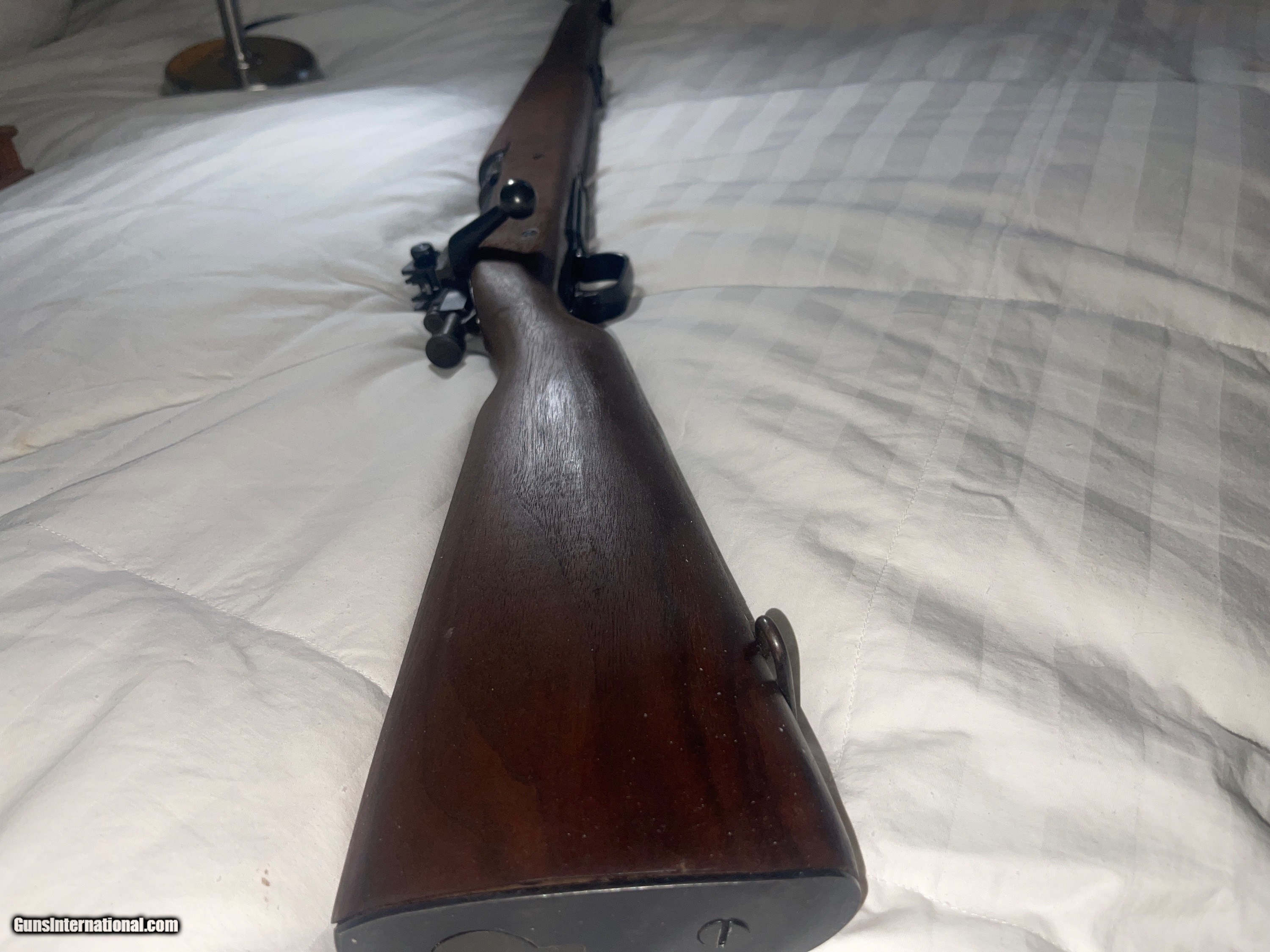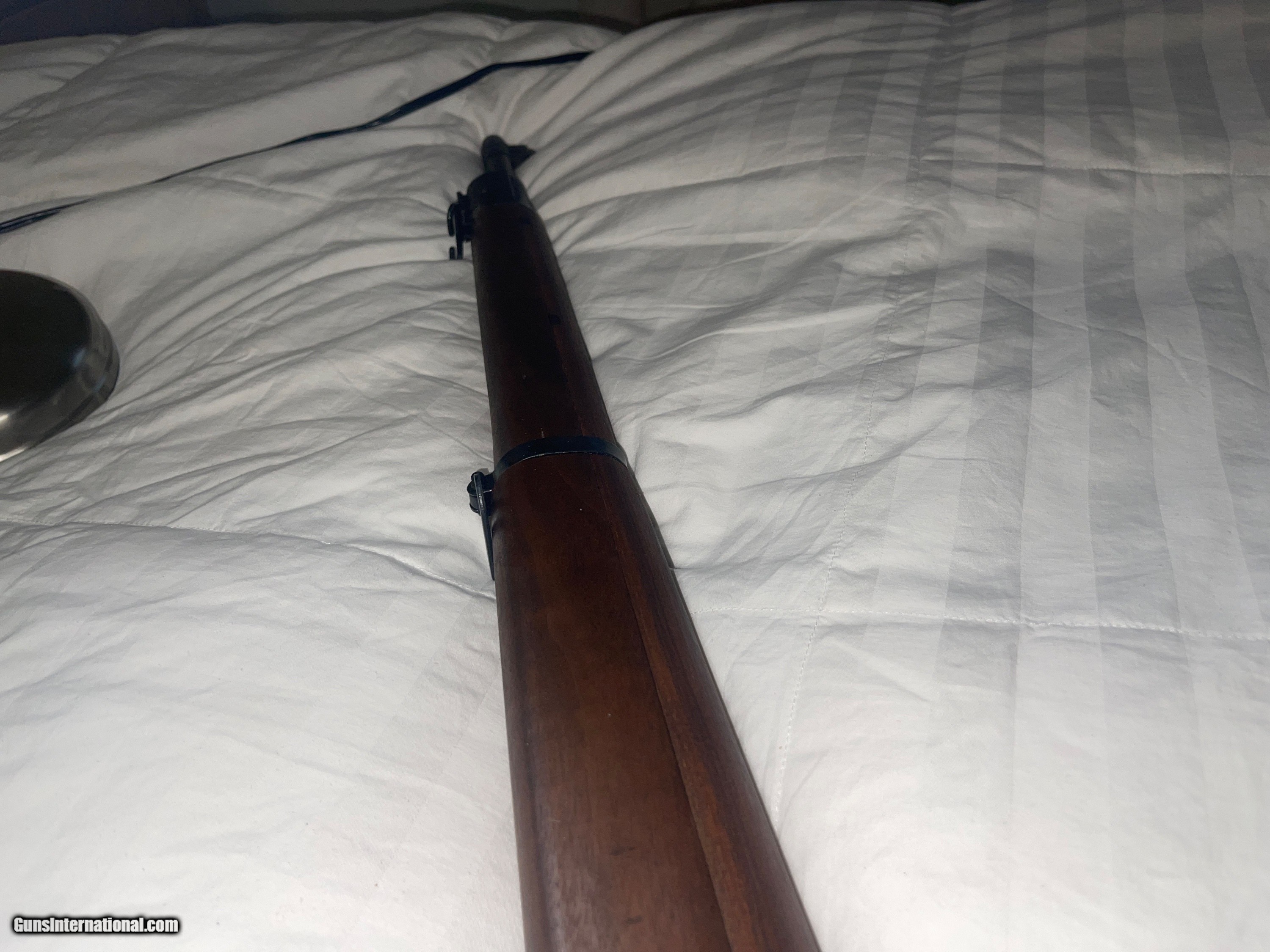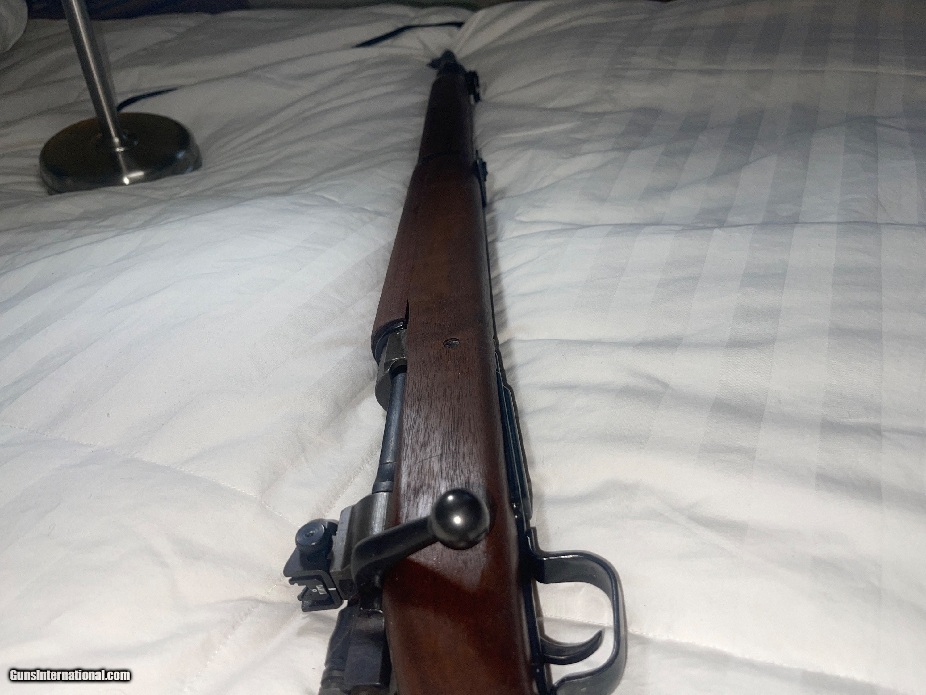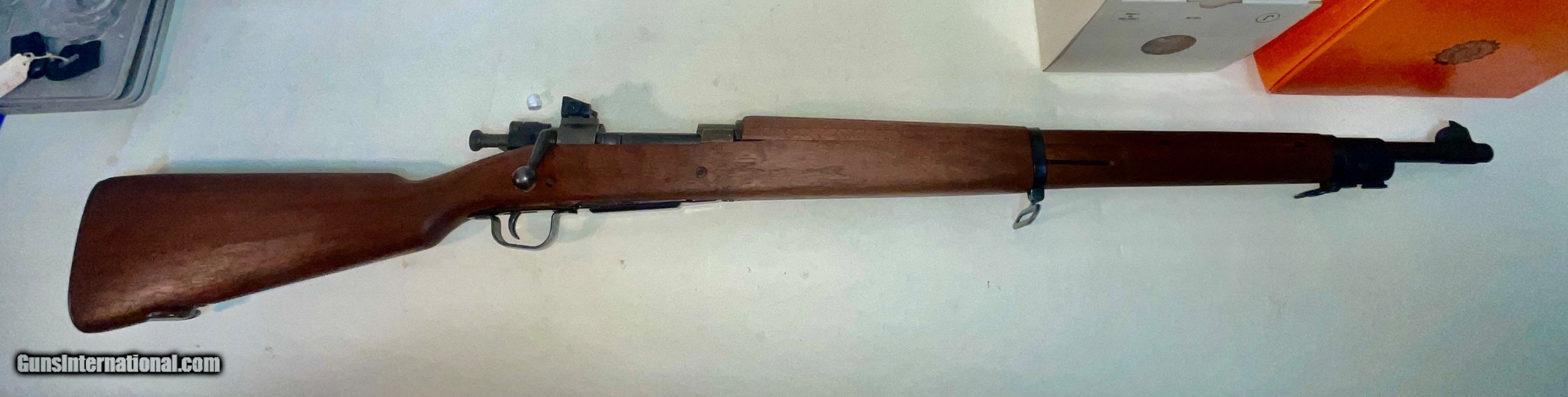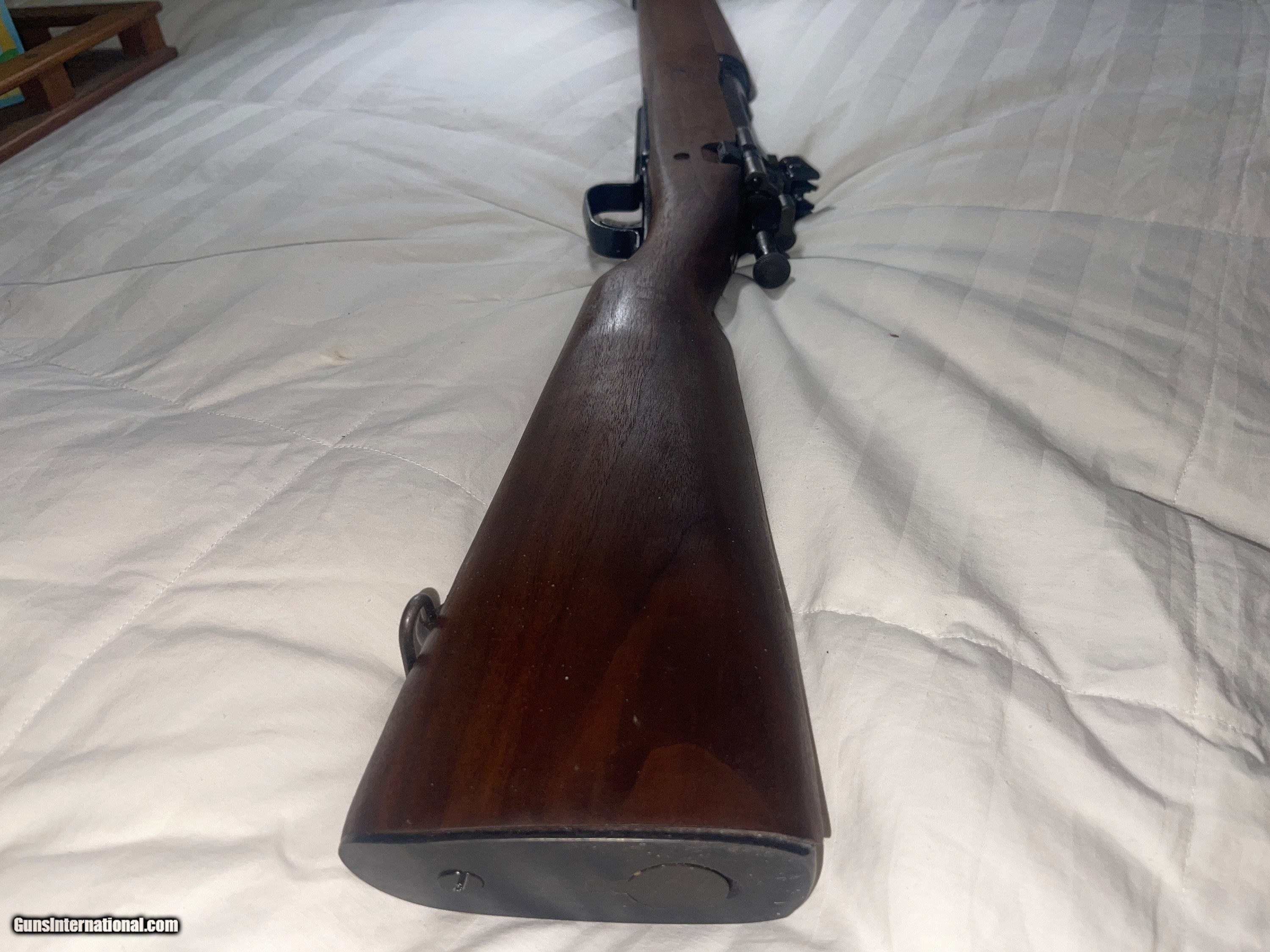 Description: This ittle beauty is a wonderful example of an american MILITARY ICON. This beauty has just gone throught a total rebuild by a professional team. All the relacement parts are of the best qualityThe bore The meal parts have retined about 98+% of the Patkrized finish. There are no pits, scratches or rust spots anywhere. The bore and feed ramp little or no use, The bore is sunshine bright wtith scalpel sharp rifling and possibly a tiny whisp of frost. The wood stock and upper hand guard are without a signifecent blmish anywhere. This very modestly priced beauty would be an atraction to any collection . For the shooter certainly an X ring blaster at he range. aster trt st the range.. e.r Curio/Relic: Yes Manufacturer: Remington Model: 19031 A3 Serial Number: 3529842 Barrel Length: 24 Bore Info: great Condition: Outstanding Metal Condition: great Wood Condition: fine Action: bolt Price: $1,395.00 Buy Now Contact Seller |