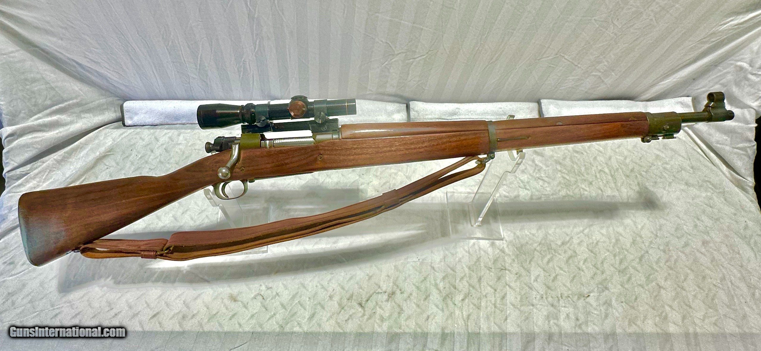 Description: US REMINGTON ARMORY M1903-A3 #3434477 1942, 30 06 CALIBER, 24" BARREL FLAMING BOMB RA 1-43 WITH SHINNY BORE, SHARP RIFLING. BOLT ACTION IS TIGHT AND SMOOTH WITH JEWELED BOLT AND TIMNEY FEATHER WIEGHT TRIGGER, SCOPE SAFETY. WOOD FURNITURE IS IN GREAT CONDITION WITH THE STANDARD CARTOUCHES SHOWING AND MINIMAL HANDLING MARKS, METAL SURFACE IS IN GREAT CONDITION ALONG WITH THE STEEL CHECKERD TRAP DOOR BUTT PLATE, VERY NICE LEATHER SLING AND LEUPOLD 1X4 VARI-X11 SCOPE, CLEAR OPTICS AND WEAVER MOUNTS. THIS 03 A3 IS SET UP SHARP SHOOTER , TRUELY A CONTENDER AND CONVERSATION PIECE AT THE RANGE. COLLECTABLE SHOOTER THAT WOULD MAKE A GREAT SHOW AND GO ASSET TO ANY COLLECTION. PRICE INCLUDES SHIPPING, WIRE TRANSFER FOR PATMENT, 3 DAY INSPECTION PERIOD IF THE RIFLE LEAVES THE FFL DEALER INSPECTION IS OVER NO RETURN. REACH OUT FOR ANY QUESTIONS THANKS FOR LOOKING! SOLD Curio/Relic: Yes Manufacturer: REMINGTON Model: 1902-A3 Serial Number: 3434477 Condition: As shown in pictures Triggers: TIMNEY |