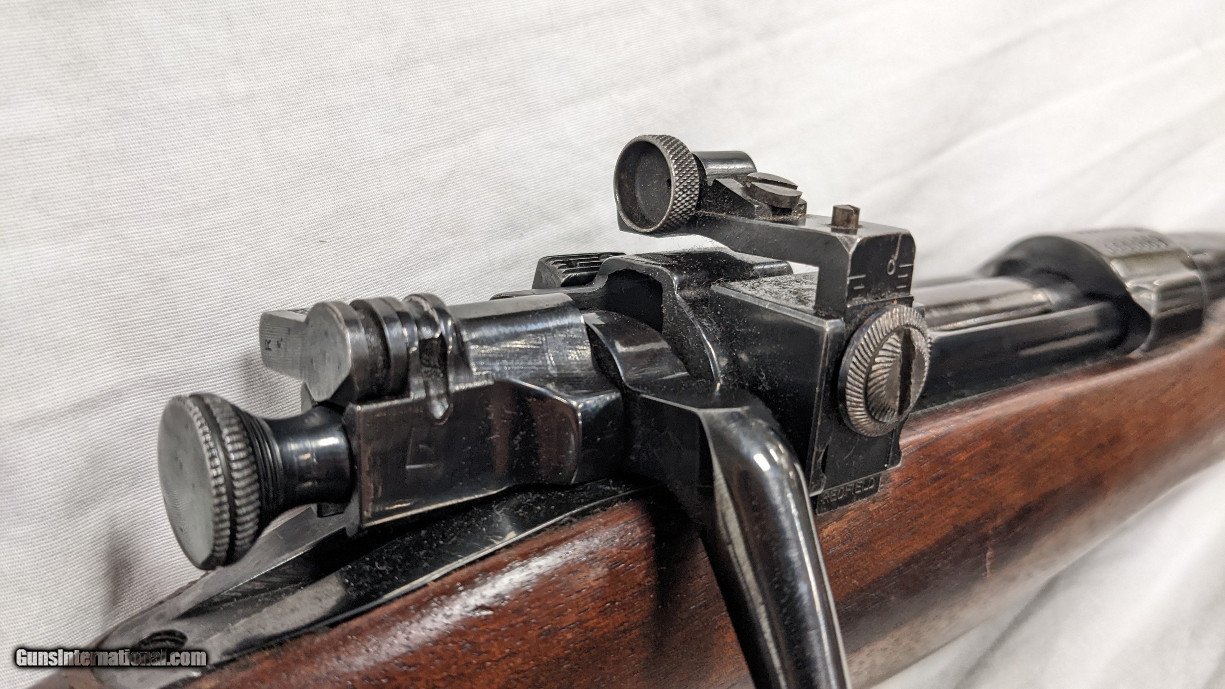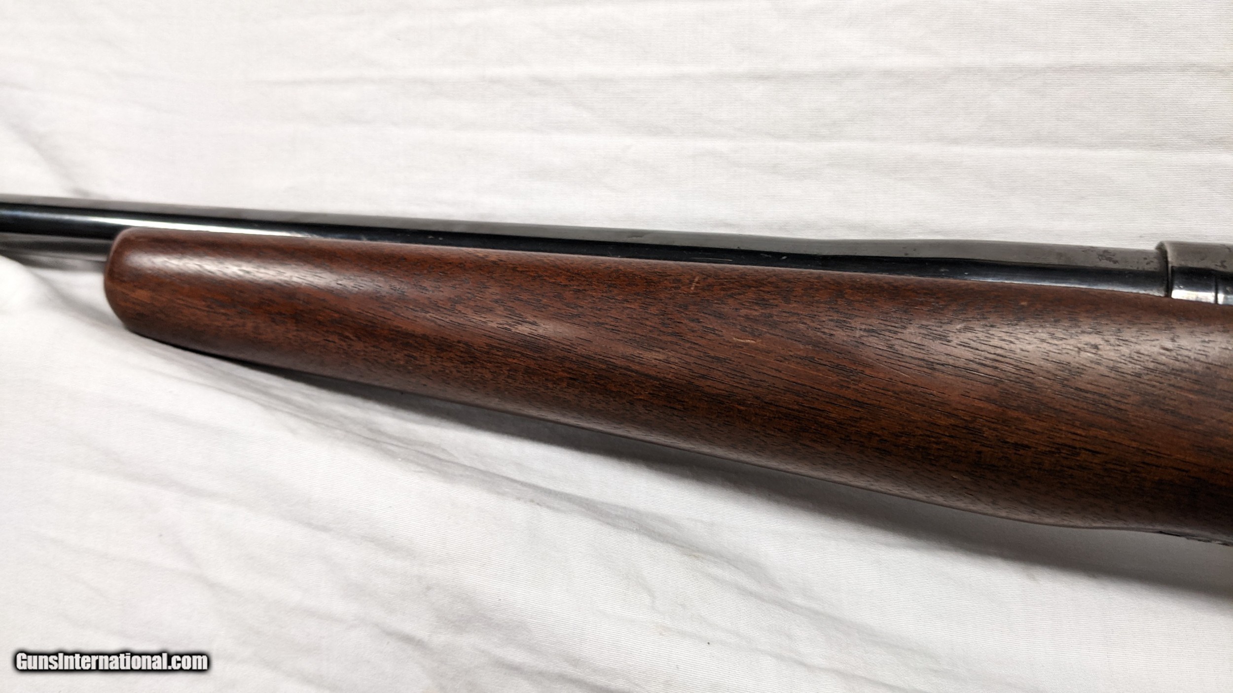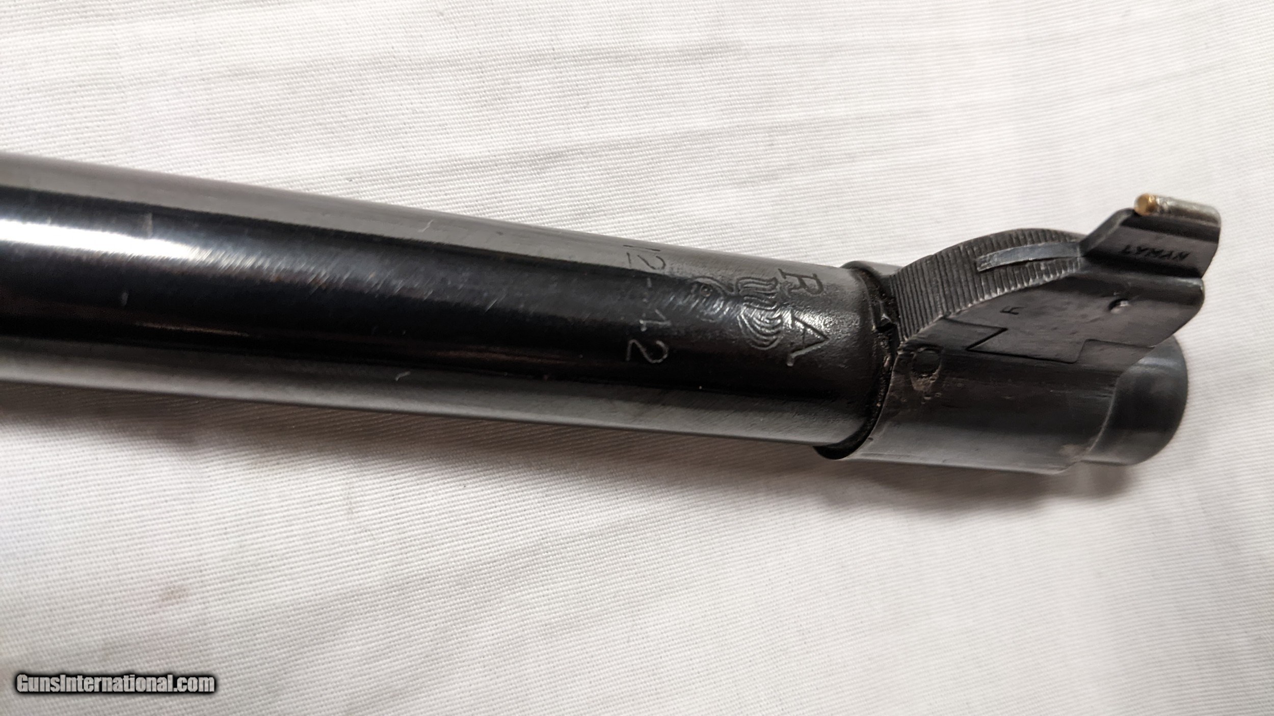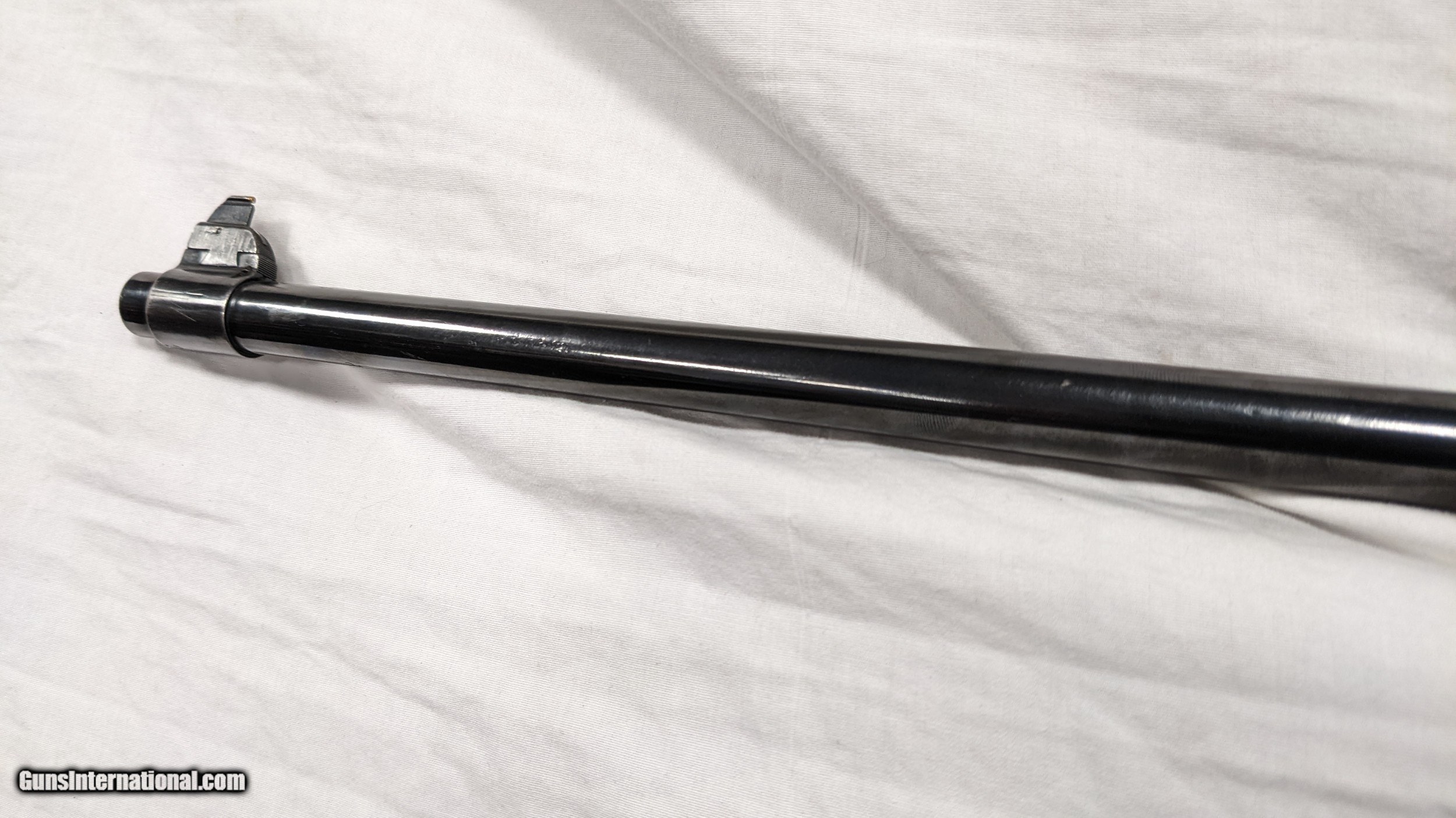 Description: Remington 1903 with a sporterized stock and redfield rear sight installed. Smooth action and trigger. Great hunting or target gun or a possible canidate for a refurb back to its original style of configuration. Manufactured 1942. Barrel marked RA 12-42. This is a used item. While we do not test fire our used firearms, we perform an inspection and function check to determine the firearm is fully functional to the best of our ability. Please call with any questions. If you are interested in purchasing this item, please give us a call. Please have the "Seller #" and/or "Guns International #" ready along with the contact information for the FFL you'd like the item shipped to. For Sale from First State Firearms & Accessories AKA The Gun Shop in New Castle, DE. Shipping is $35.00. SOLD Rifle Caliber: .30-06 Springfield Manufacturer: REMINGTON Model: 1903 Serial Number: 3333669 Barrel Length: 24 INCH Condition: USED, GOOD Bore Condition: NO PITTING Barrel Type: 4 GROOVE Action: SEMI-AUTO Stock: SPOTERIZED WOOD STOCK Sights: REDFIELD Extras: NONE / GUN ONLY |
