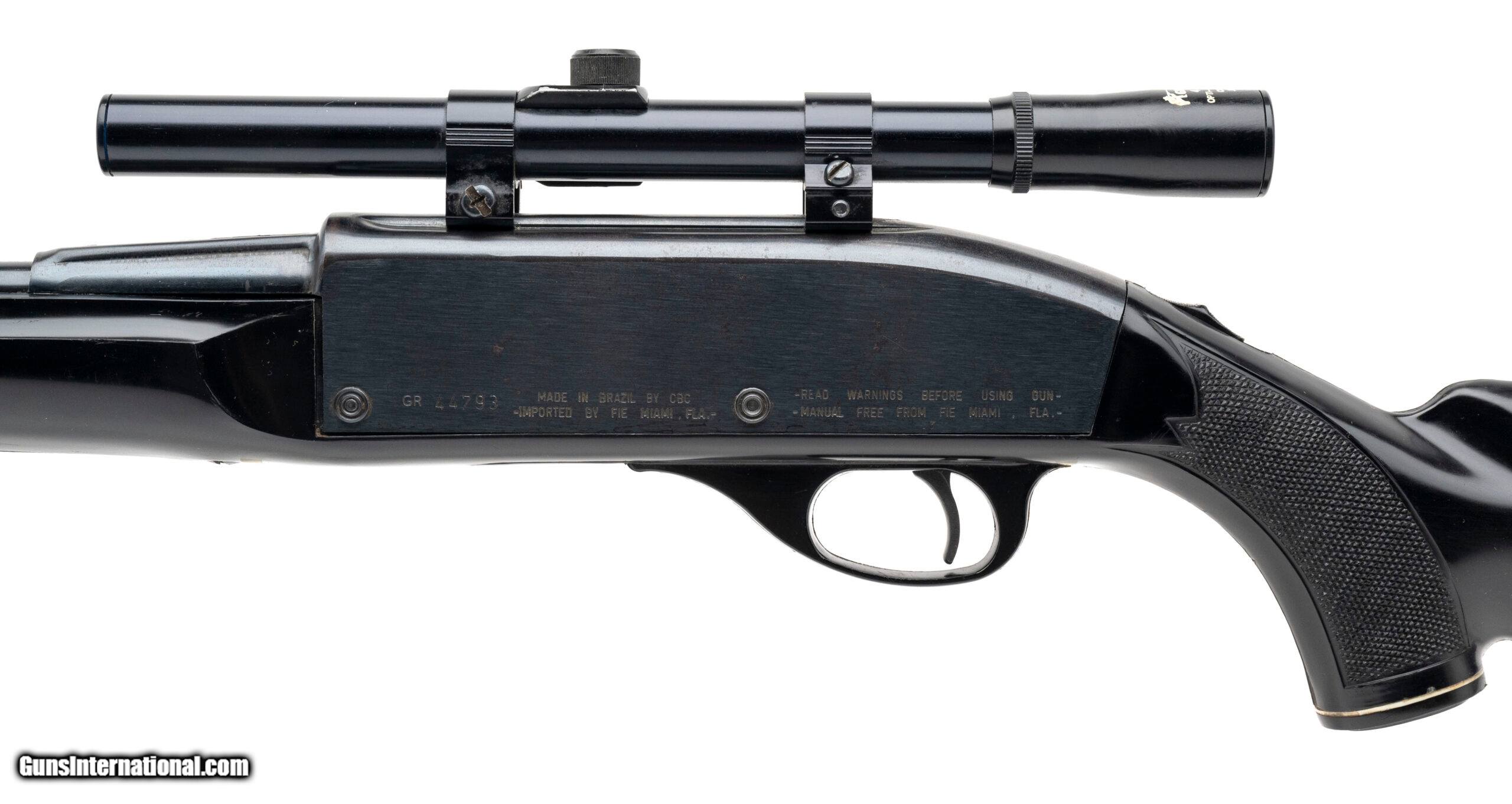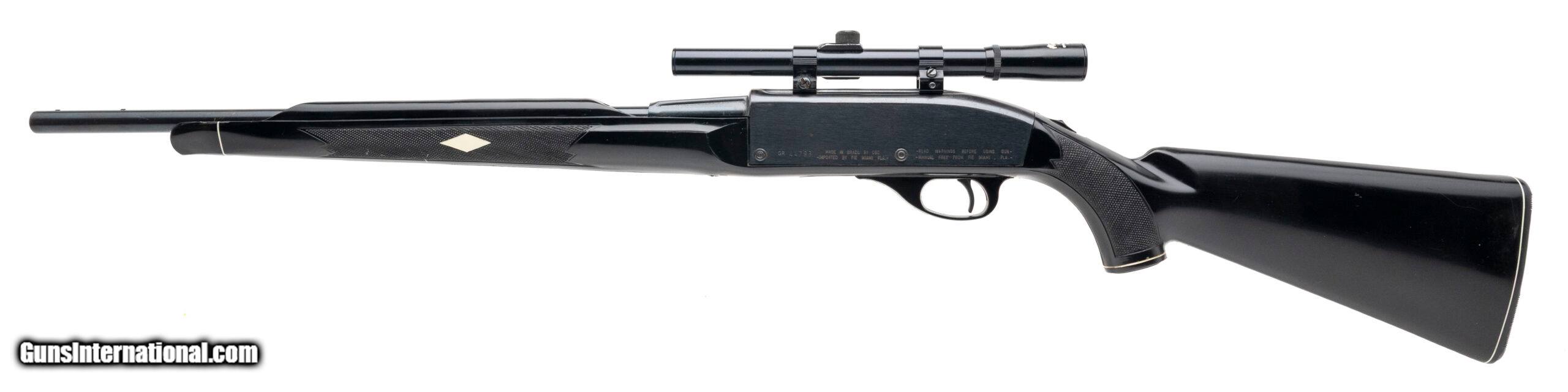 Description: "SN: GR44793. 1980s vintage, .22LR with a 19.5"" barrel. Bore is very good. Brazilian made rimfire rifle imported by FIE with a Glenfield 4x15 scope, blued finish, and black synthetic stock. Finish and stock are both worn with marks throughout. Overall condition is good. Price: $295.00 Contact Seller |
