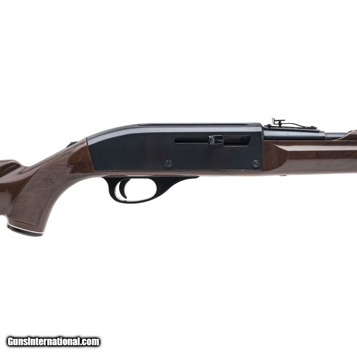 Description: "SN:2142593. Made circa Late 1960's. .22lr with a 19"" barrel. Bore is excellent. Semi-auto rifle. Blued Finish and nylon stock are in very good condition. Has adjustable rear sight. Overall condition is very good. SOLD |