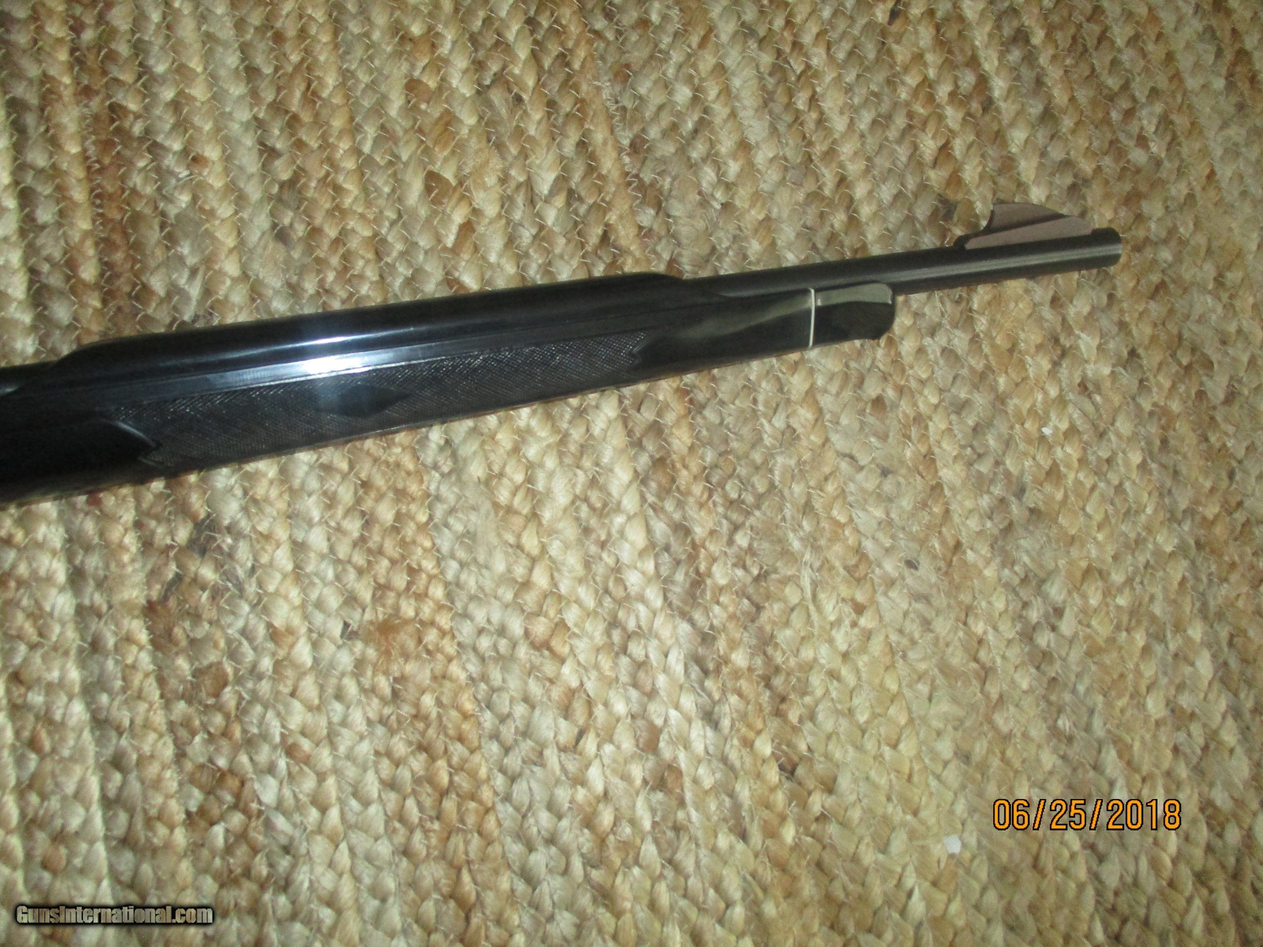 Description: 20" bbl., raised blade with white dot tip, adj.wheel rear, 11 shot tubular fed magazine, checkered black nylon stock, schnoble forend, very scarce cconfiguration, minty condition! (shippined & insured) SOLD |