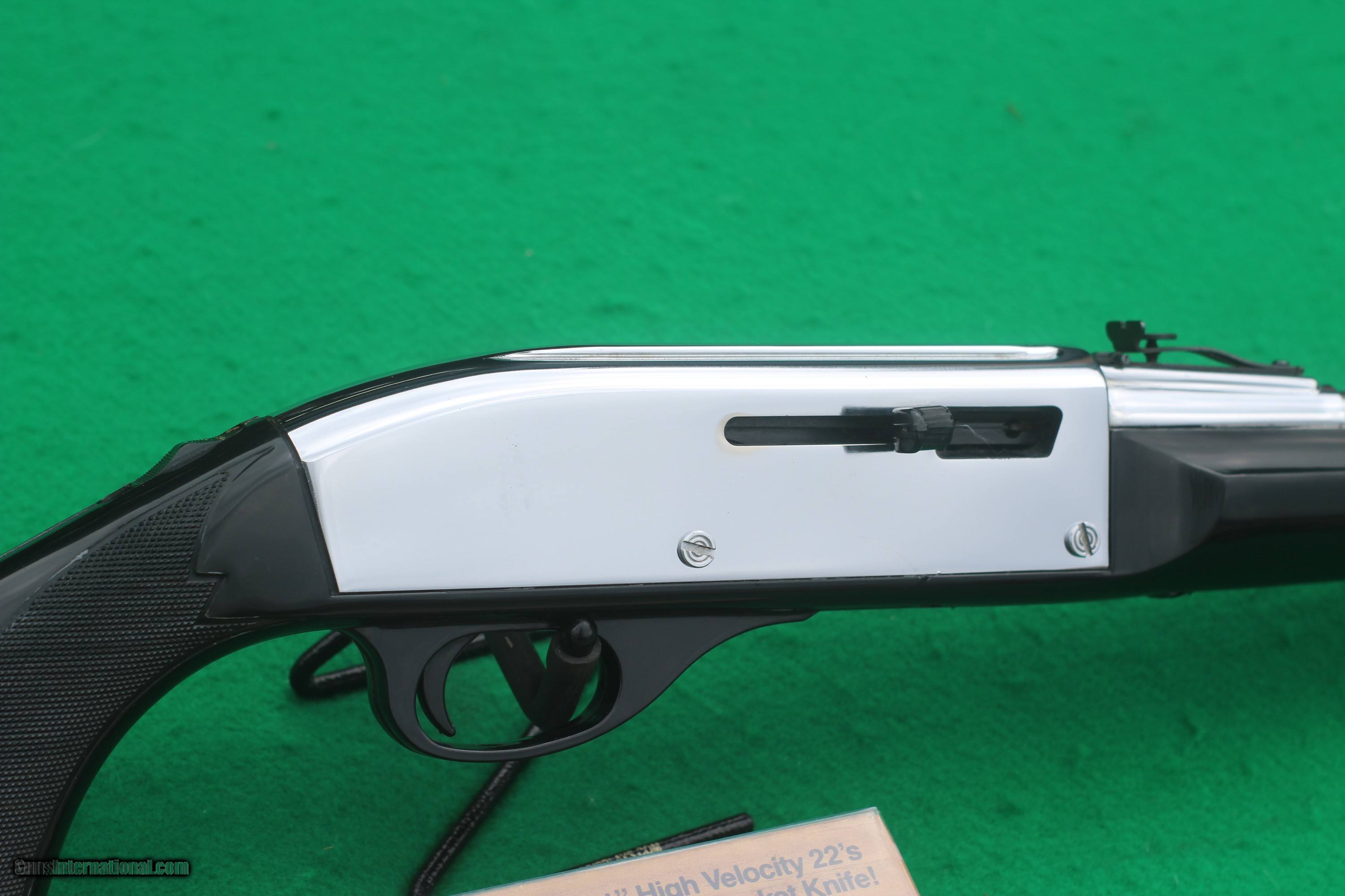 Description: Apache black and chrome model with white diamond inlays Manufactured Jan. 1967 according to the date code 19 1/2" barrel Excellent bore Adjustable sights Top tang safety 99% + overall condition , with just 1 small scratch on receiver All original ,like new condition Comes with 300 rounds ..22 H.V. giftbox , with genuine Remington pocket knife $ 1199 + Shipping SOLD |