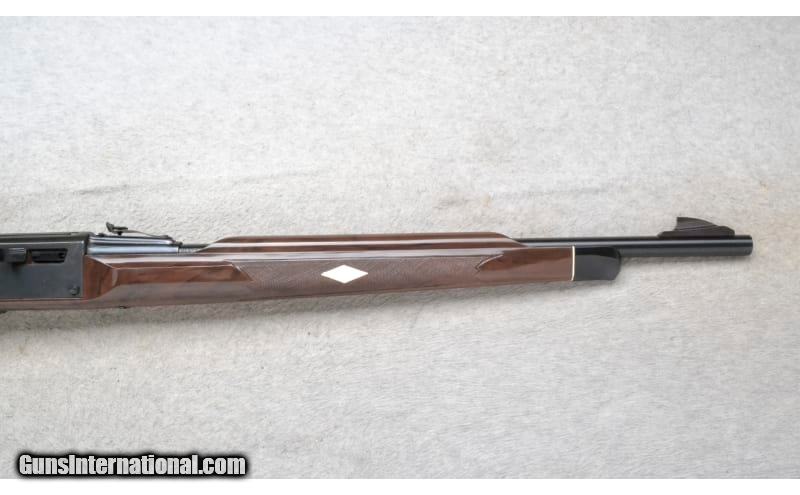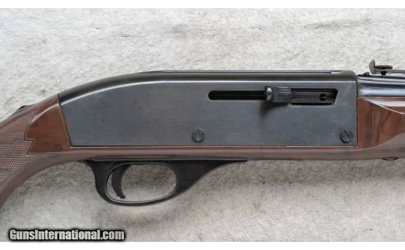 Description: This Remington Model Nylon 66 is a semi-auto rifle in .22 Long Rifle Cal. Only. It has a 19.5 inch barrel. A blade front sight, adjustable notch middle sight and is dovetailed for a scope mount. The butt Stock is a diamond checkered brown nylon with a black cap and butt loading port. The forearm is a diamond checkered brown nylon with a black tip. S/N 2432607. .22 Long Rifle SOLD Chambers: Internal tube magazine loaded through the butt plate. Metal Condition: Very Good. Bore Condition: Excellent. Barrels: 19.5 inch. Stock Dimensions: LOP 13 3/4 inches. Fore End: Diamond checkered brown nylon with a black tip. Butt Pad: Remington grooved black plate with a tube magazine loading port. Weight: 4 lb. 2 oz. Sights: Raised blade front. Adjustable notch middle. Dovetailed. Item Location: Richfield, WI |