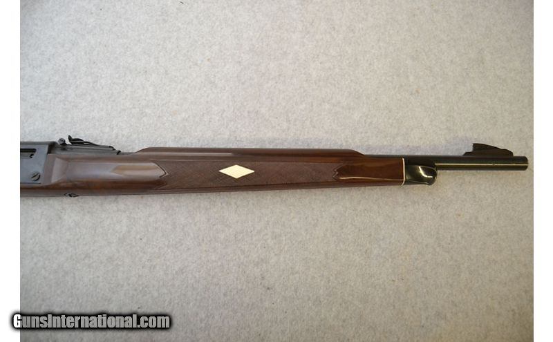 Description: While in good overall shape, this was almost certainly a previous owners go-to plinker rifle. The stock has its share of handling marks in the form of light scuffs and shallow surface scratches. The metal finish shows its age scratches and finish loss such as near the muzzle. Overall would make a good range toy that one wouldn't need to feel bad if it picked up a scratch. .22 Long Rifle SOLD Chambers: Semi-automatic fed from a tubular magazine in the stock. Metal Condition: Good. Wood Condition: Furniture is in good condition. Bore Condition: Bore is excellent with healthy shine and rifling. Barrels: 19½" Blued. Triggers: Narrow black plastic with grooved surface. Stock Dimensions: Faux wood grained Zytel with textured grip areas and 13¾" LOP. Fore End: Faux wood grained Zytel with textured side areas and white diamond inserts. Butt Pad: Black plastic plate. Weight: 4lbs 3oz Sights: Fixed front blade with adjustable rear leaf. Chokes: N/A Item Location: Green Bay |