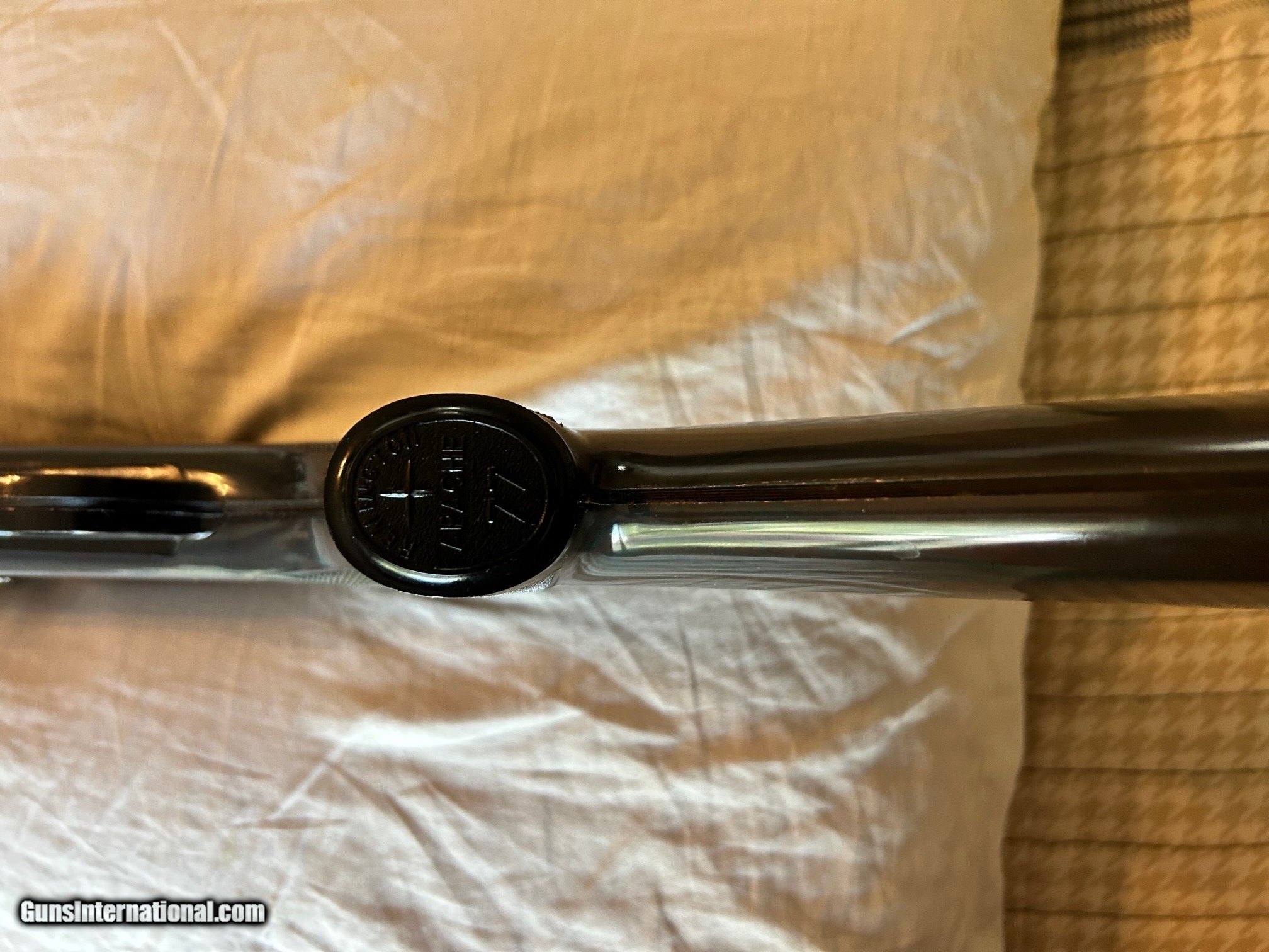 Description: The Kmart Apache 77: This version was manufactured specifically for Kmart retail sales from 1987-89. Built with a 19 5/8-inch barrel, iron sights, and a 10-round box magazine. The Apache 77 shows matte black metalwork against a dark green stock and receiver reminiscent of Seneca Green. Very similar to the Nylon 66, this rifle is magazine-fed instead of tube-fed. Made for only a short period of time exclusively for Kmart stores. This rare Seneca green Nylon stock rifle features a 19.5"-barrel, rear adjustable notch sight, fixed front blade sight, and checkered Nylon stock with a black pistol cap, butt plate, and stock end. This is a first-year production gun made in May 1987. Layaway 1/3 down 90 days Shipping: $50, INSURANCE EXTRA UPON REQUEST Payment: Personal Check, Money Order, Cert. Check, or Zelle randywine2000yahoo (703) 858-2881 Returns without damage, firing, or alteration within 3 days of delivery minus a 20% restocking fee SOLD Rifle Caliber: .22 Long Rifle Manufacturer: Remington Model: 77 Apache Serial Number: A2352850 Chambers: 10 Ejectors: auto Condition: Excellent Metal Condition: Excellent Wood Condition: N/A Bore Condition: Excellent Action: semi-auto Triggers: single Stock: Nylon Butt Pad: Factory Plate LOP: 13 3/4 Finish: Gloss Sights: Metal Manufacture Date: 1987 |