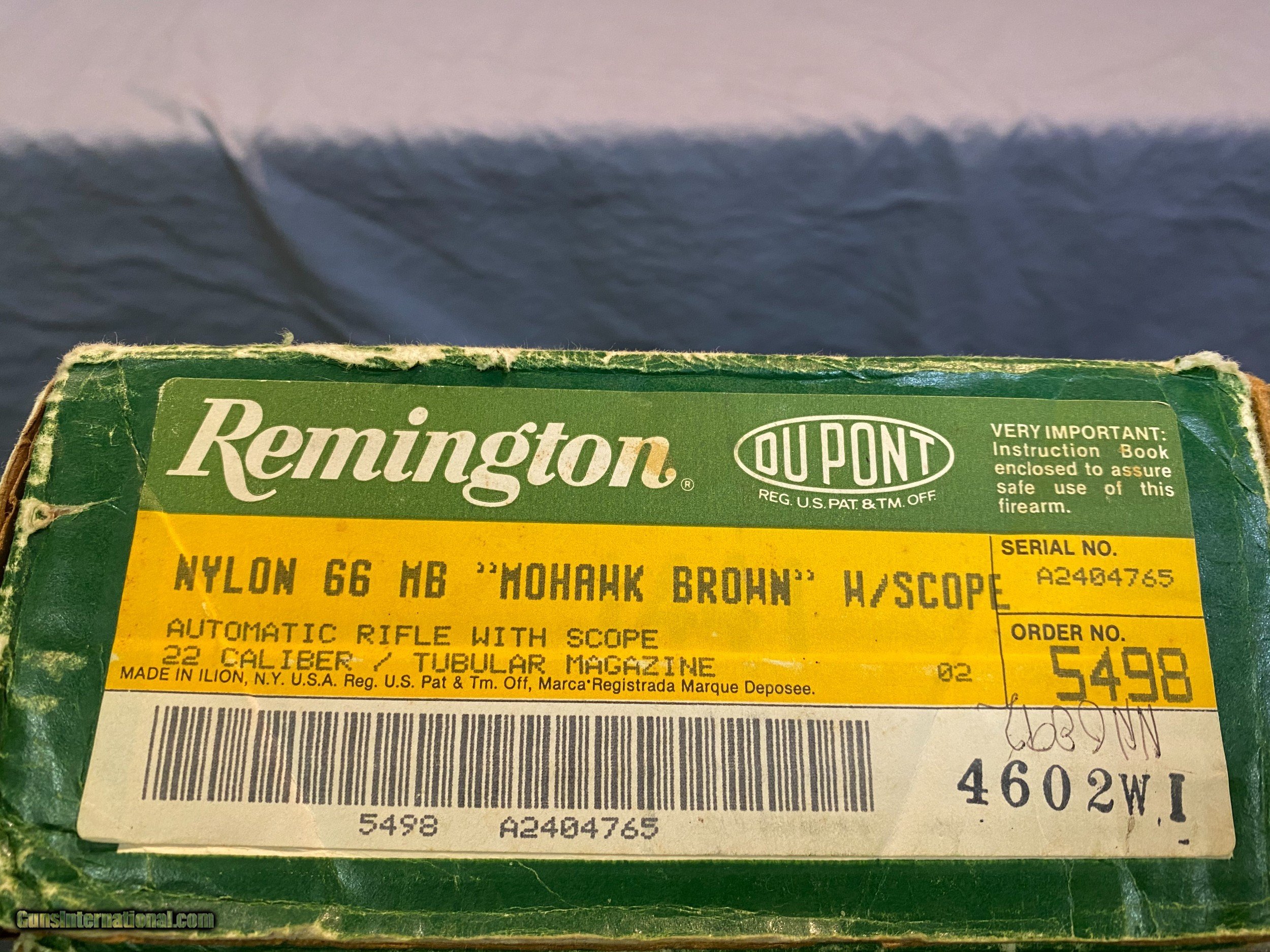 Description: Remington Nylon Model 66 22LR New in box believed to have not been shot Comes with factory scope Open to offers Pictures for best description 4% Credit Card fee $50 Shipping fee SOLD Rifle Caliber: .22 Long Rifle Manufacturer: Remington Model: 66 Serial Number: A2404765 Condition: New Metal Condition: New Wood Condition: New Bore Condition: New |