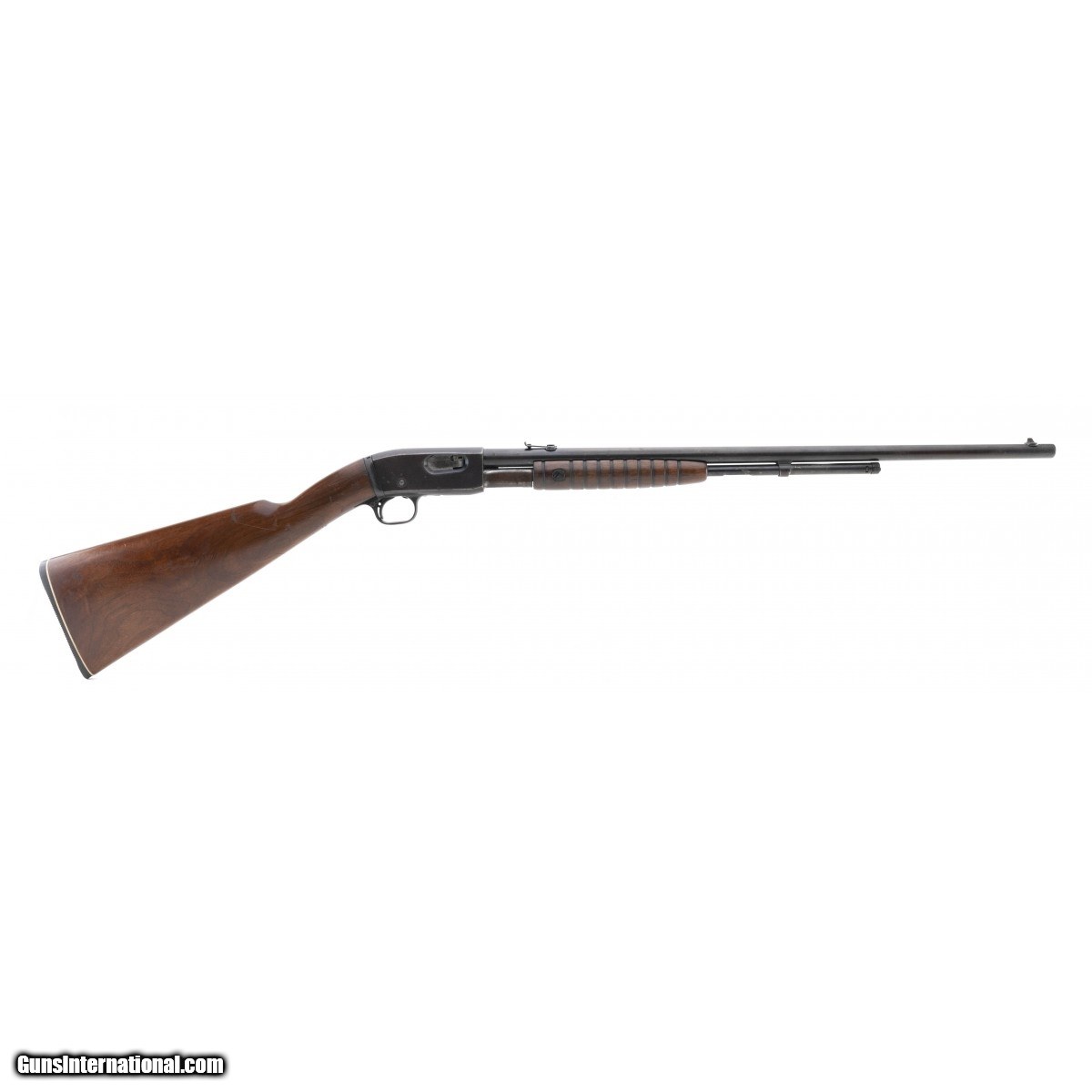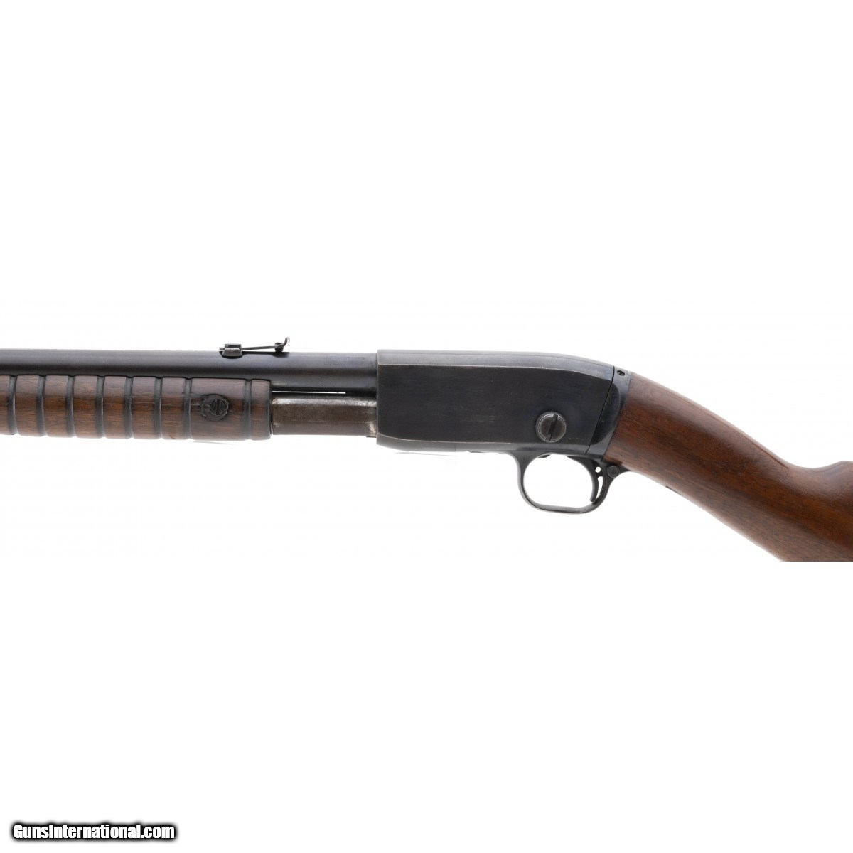 Vintage tube fed pump action rifle made in 1928. Metal has an old refinish and a minor surface etching. Bore has strong rifling with a few minor pits. Stock has a small chip near receiver. ""Fair"" overall condition.