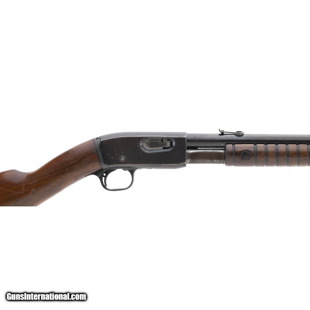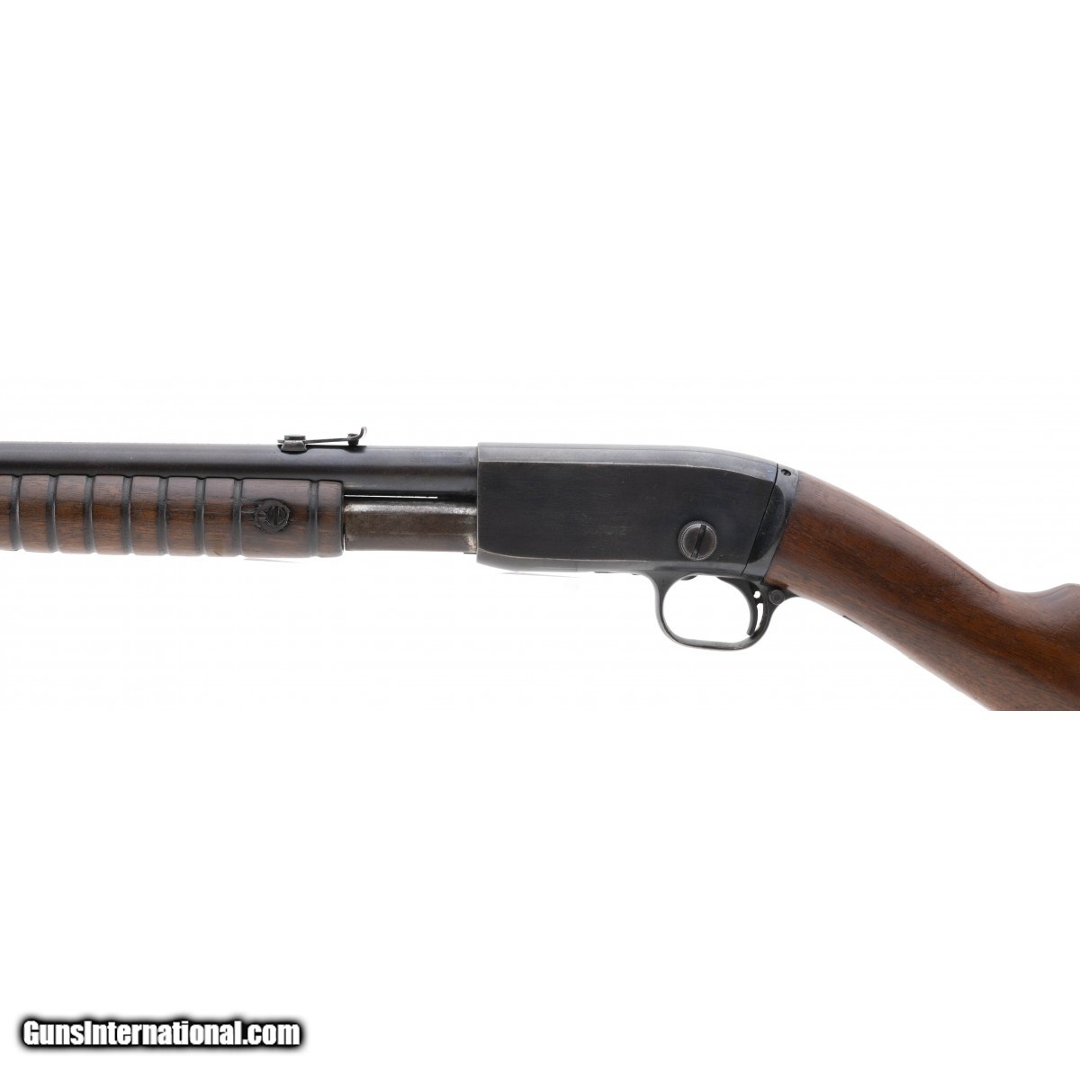 Vintage tube fed pump action rifle made in 1928. Metal has an old refinish and a minor surface etching. Bore has strong rifling with a few minor pits. Stock has a small chip near receiver. ""Fair"" overall condition.
