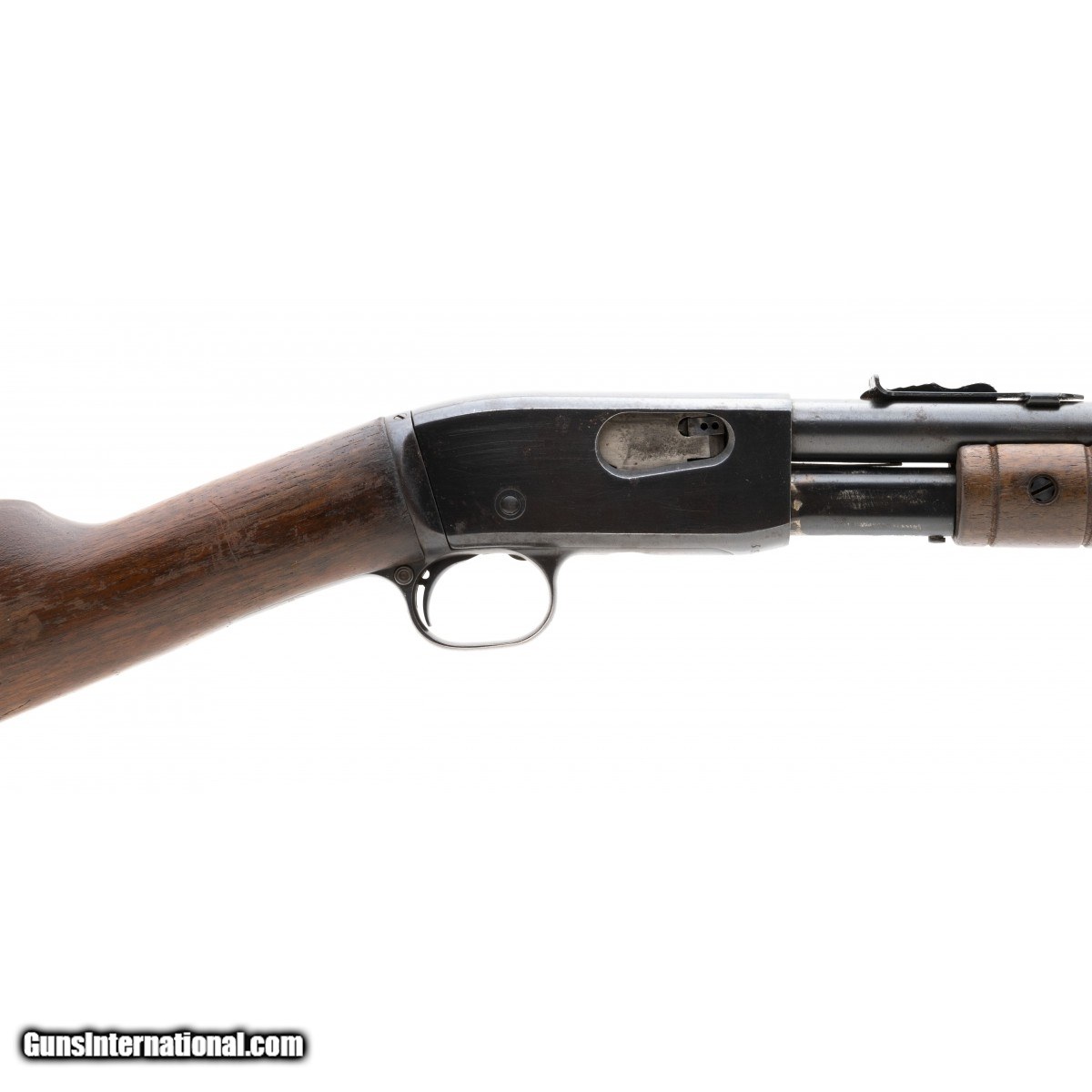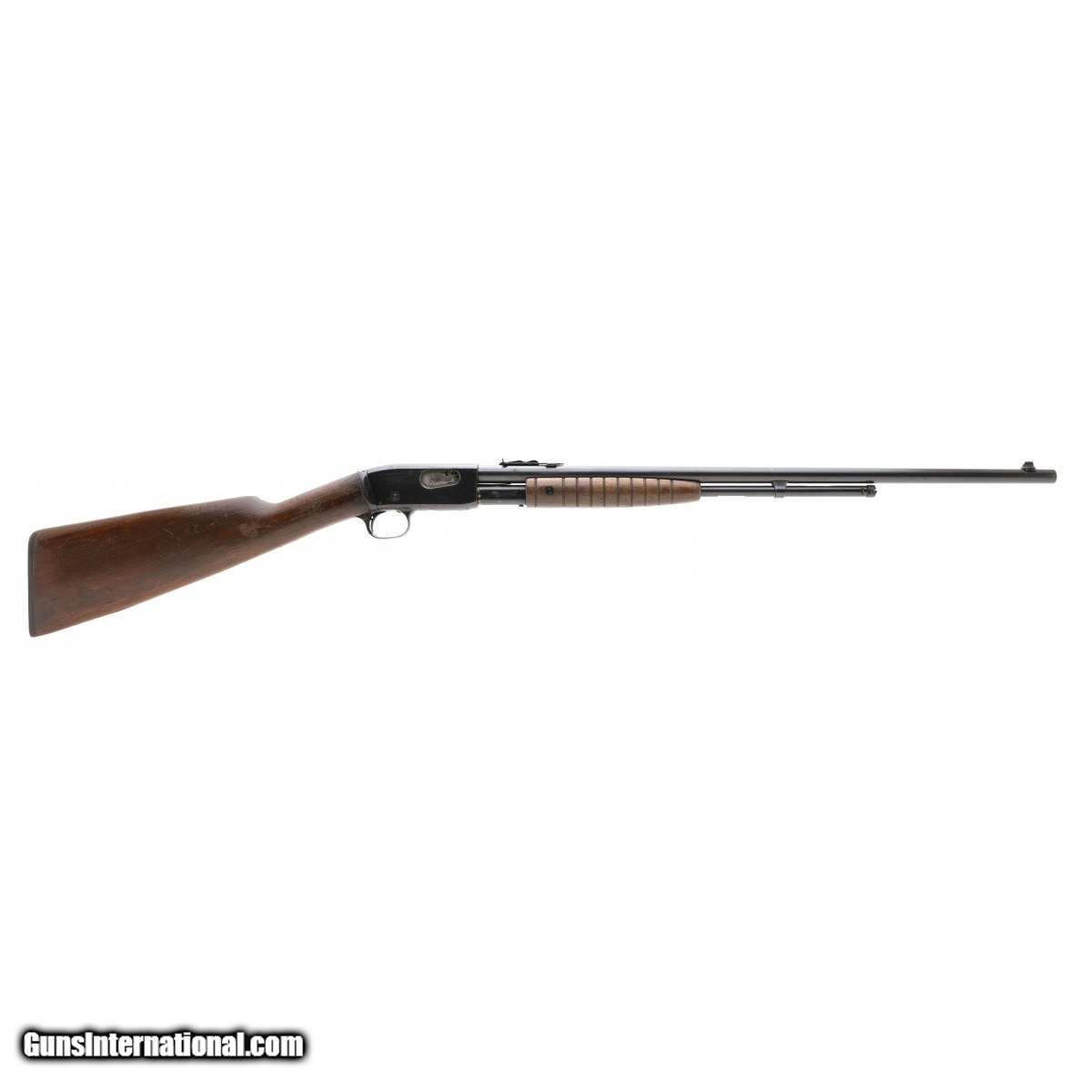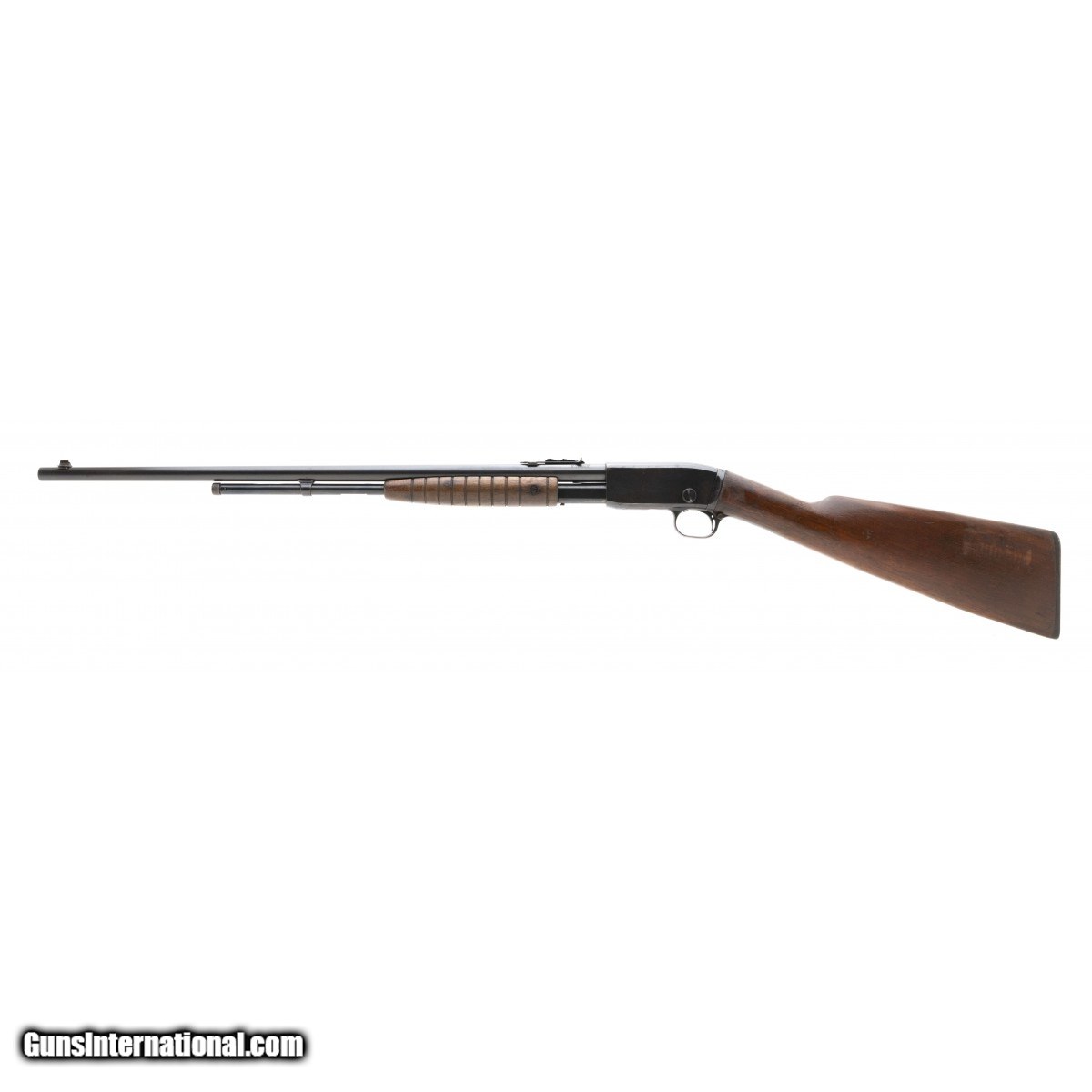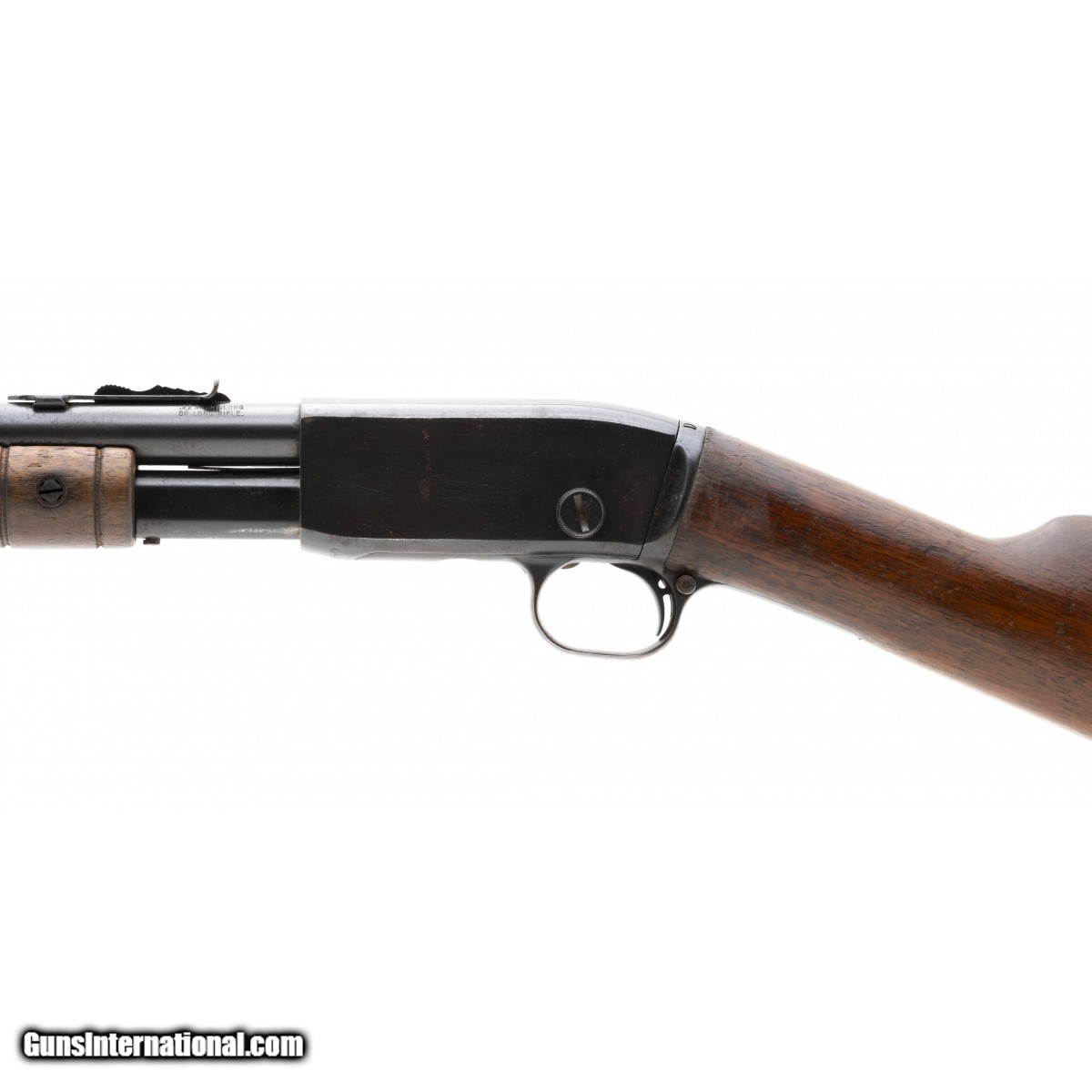 Pump-action rifle with 22"" barrel. Bore is excellent. Barrel has 90% blue, receiver and stock show wear. Overall condition is very good.