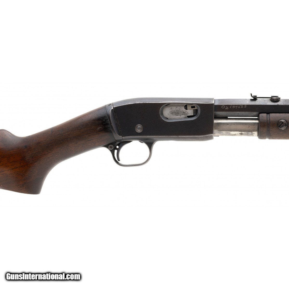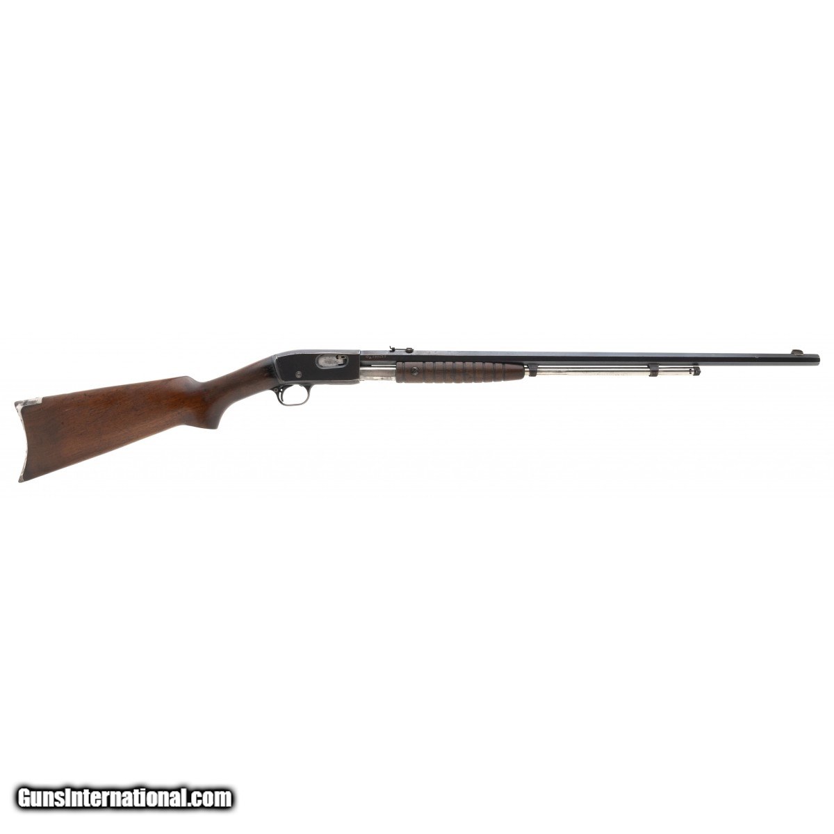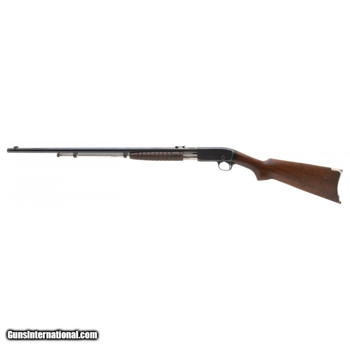 Description: " SN: 781897. Slide action rifle made in the 1930's, with a 24"" octagon barrel. The bore is excellent. The finish is mostly blue mixed with some brown. The stock has some wear but is not cracked or damaged. Has a number inscribed on the barrel by the breech. SOLD Curio/Relic: Yes |