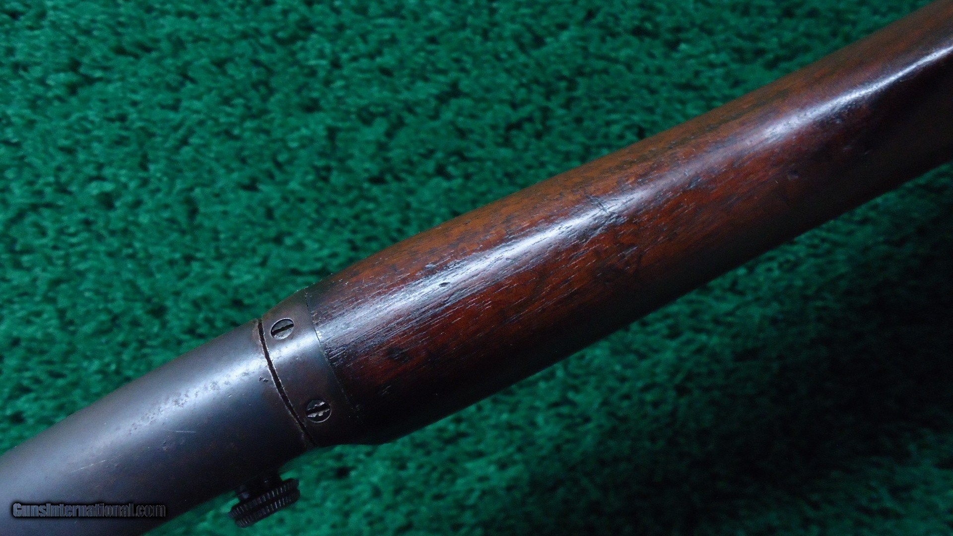 Description: 22 inch round barrel chambered in 22 S,L&LR caliber with a u-notched rear sight and bead front sight. Bore is bright and shiny with good rifling and a little roughness towards the muzzle. Metal is a fading blue with some freckling. Grooved forearm has a 3 inch crack on the bottom. Buttplate is missing some chips. This one has seen some use but still a good little 22 varmint rifle. Leroy Merz Antique Firearms specializes in antique and vintage Winchesters and other fine American firearms. Since 1965 Mr. Merz has taken part in the world of firearms and has been a contributor to many well known reference books. We have hundreds of additional guns in every price range at our home online. Search for Merz Antiques in google. SOLD Curio/Relic: Yes Rifle Caliber: .22 Long Rifle |