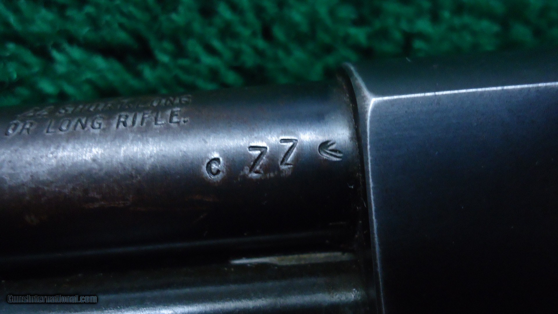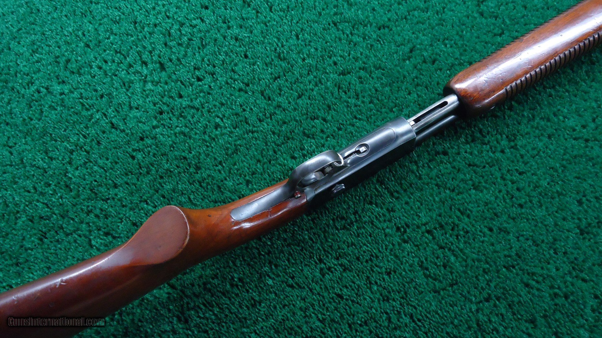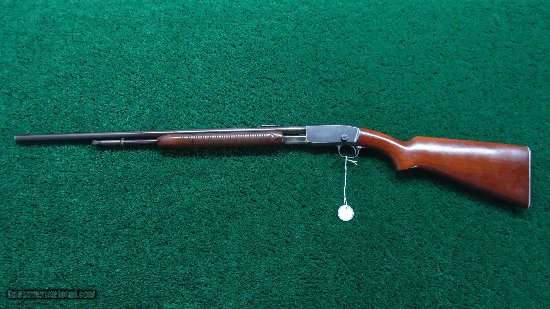 Description: Slide action rifle with 24-1/2 inch round barrel chambered in 22 S, L & LR caliber with sporting sights. Bright shiny bore with good rifling. A good amount of fading blue remaining. Pump action is crisp. Flat bottom grooved forearm and a pistol grip stock. Wood is in good condition with some handling mars and dings. A nice little Model 121. Leroy Merz Antique Firearms specializes in antique and vintage Winchesters and other fine American firearms. Since 1965 Mr. Merz has taken part in the world of firearms and has been a contributor to many well known reference books. We have hundreds of additional guns in every price range at our home online. Search for Merz Antiques in google. SOLD Curio/Relic: Yes Rifle Caliber: .22 Long Rifle |