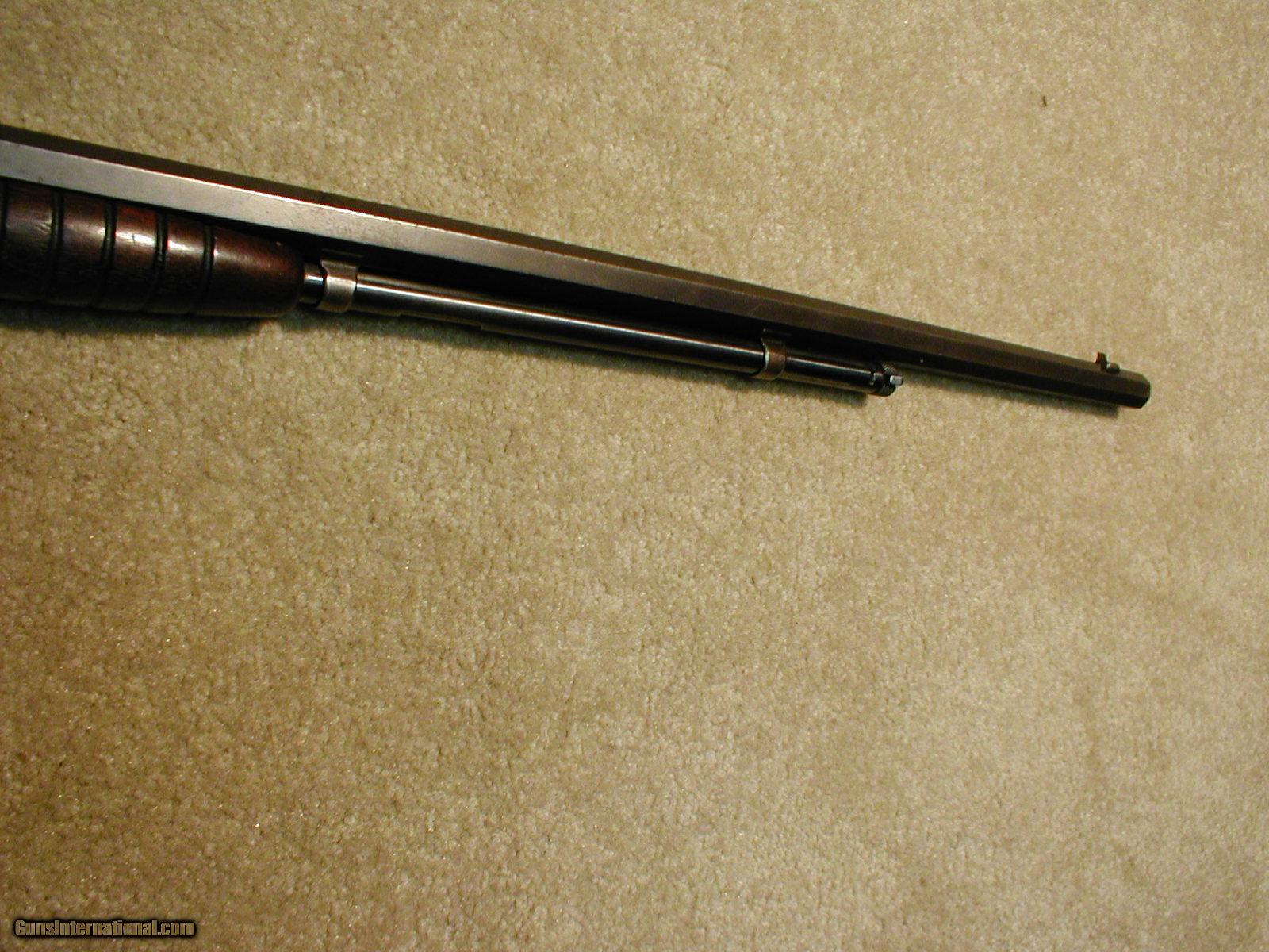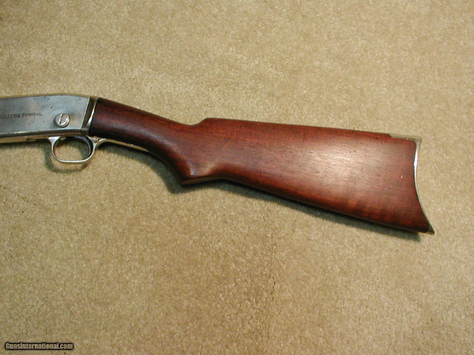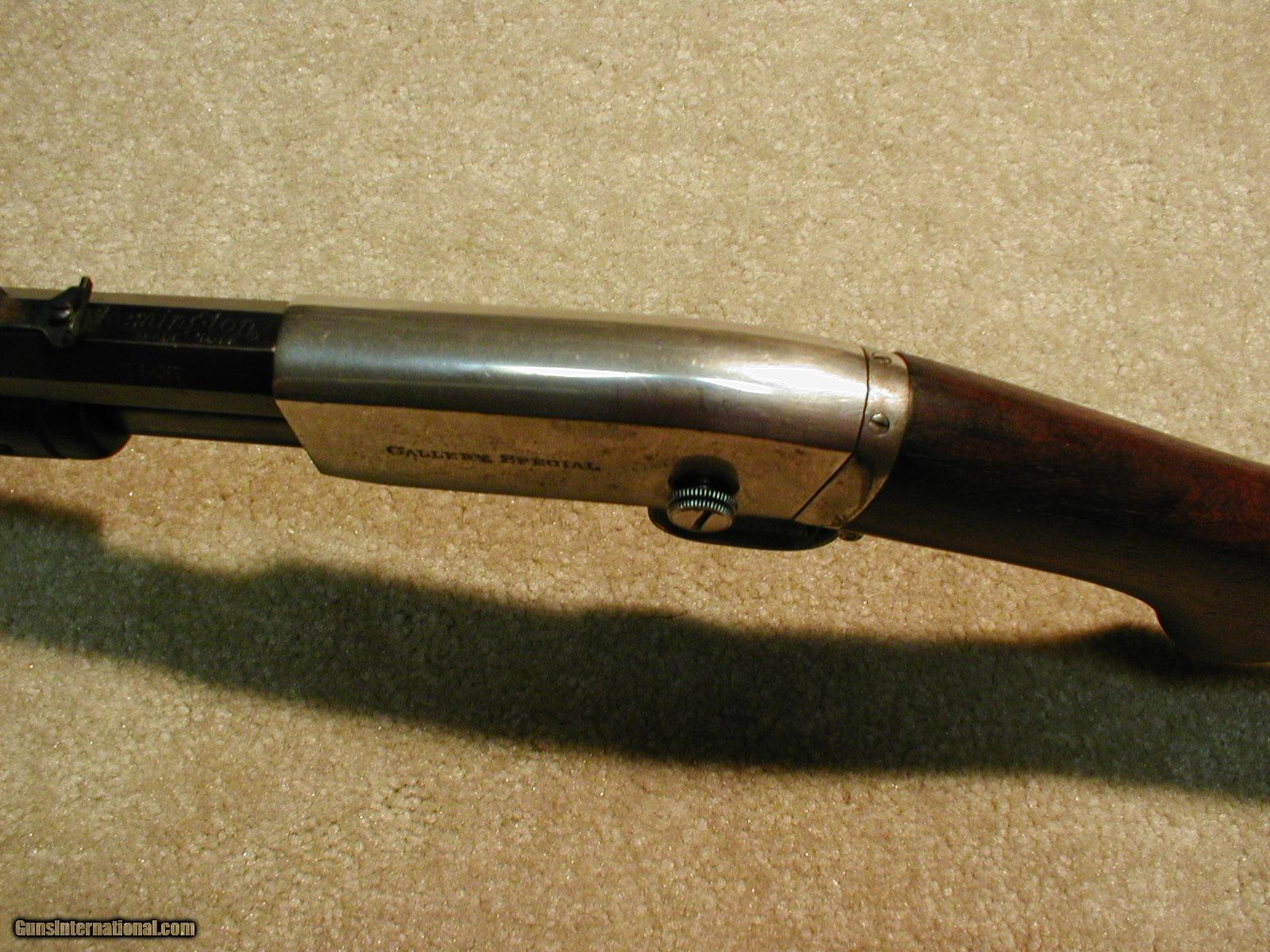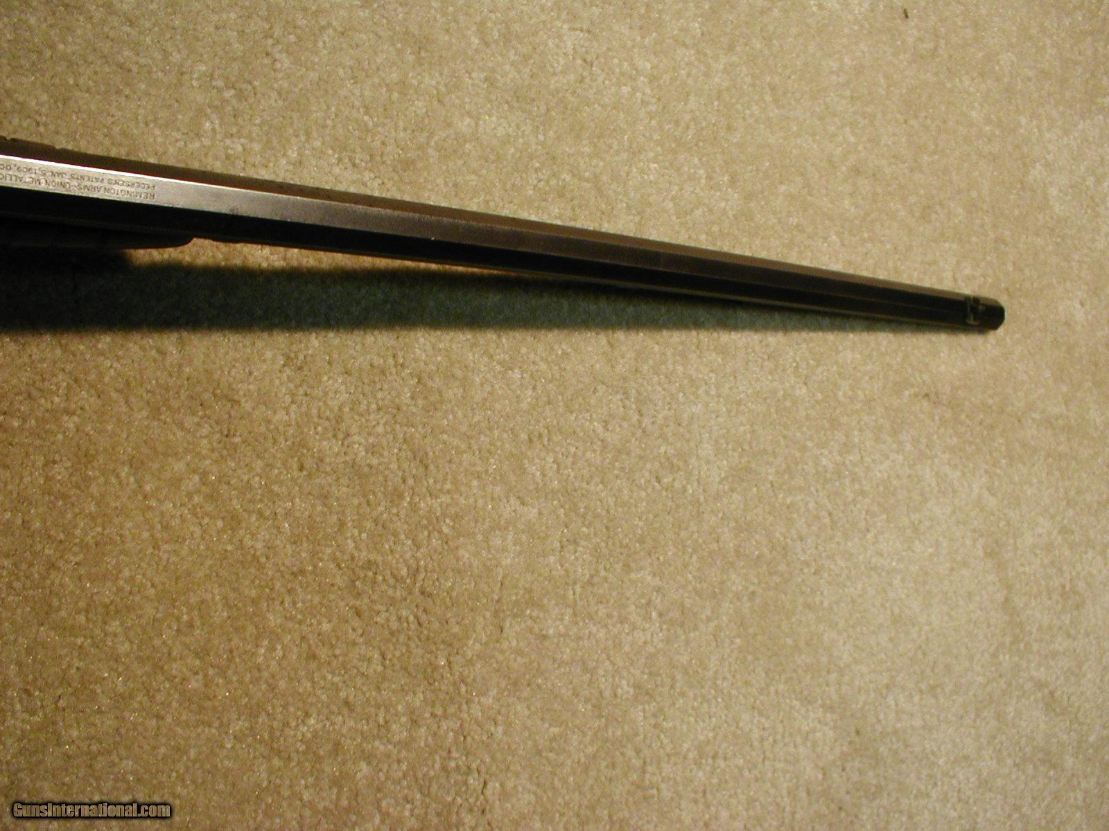 Description: RARE AND UNUSUAL VERY FINE CONDITION MODEL 12 GALLERY SPECIAL HALF-NICKEL FINISHED .22 SHORT OCTAGON RIFLE, most of these true gallery rifles end up in terrible condition, this one has the scarce nickel receiver and butt plate and both retain nearly all the bright nickel with only the freckling and a tiny spot of peeling on the left side of the receiver that you have to look carefully for or you'll miss it! fine barrel blue that shows some light thinning only, mag tube shows fine lightly ageing blue, exc. wood with only a few handling marks n the forearm, fine bore with only some scattered light roughness mainly toward the middle of the bore (usually these are found with totally trashed bores), original sights, tight action, exc. markings including the GALLERY SPECIAL marking on the left side of the receiver SOLD Curio/Relic: Yes Manufacturer: Remington Model: Model 12 Gallery Special Serial Number: 212XXX Caliber Info: .22 Short Condition: fine+-exc. Barrels: 24" oct Finish: nickel/blue |