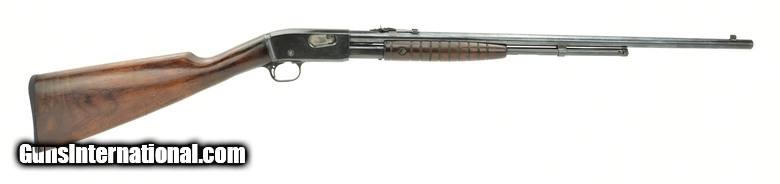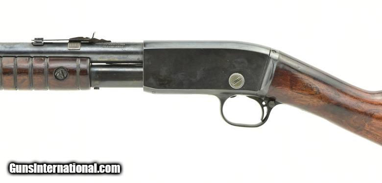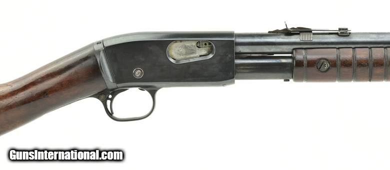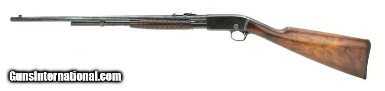 Description: Remington 12-A .22 S, L, LR caliber rifle. Slide action rifle, has been refinished. Bore has strong rifling with pits. Fair overall condition.