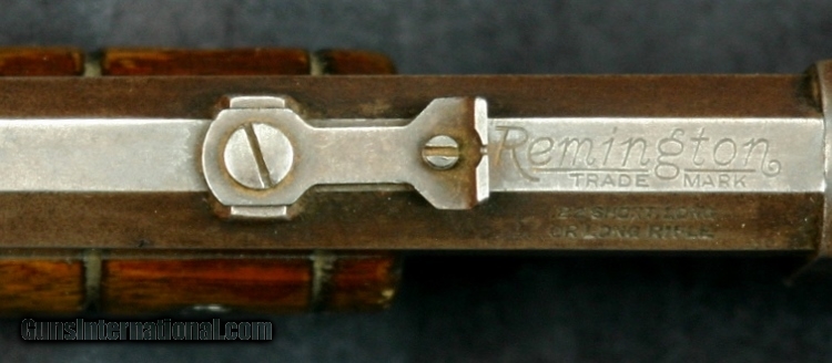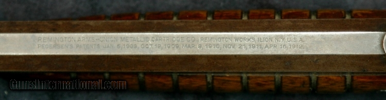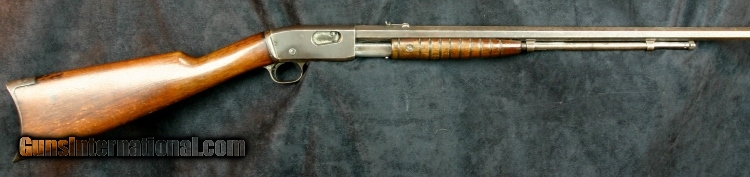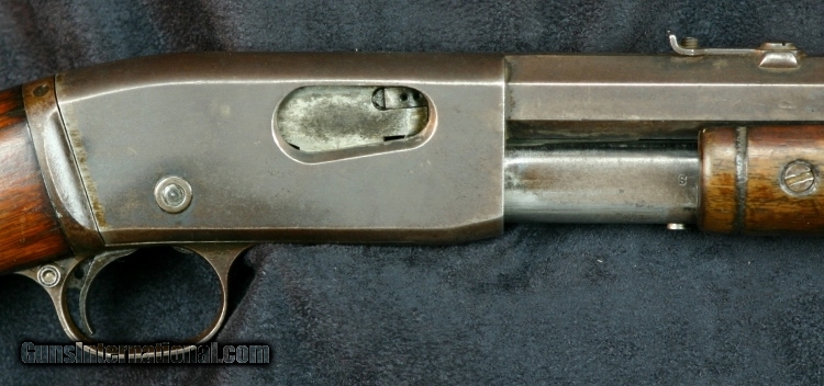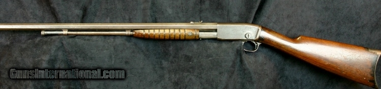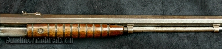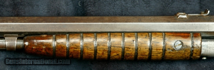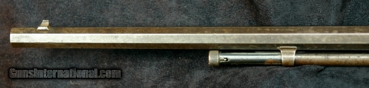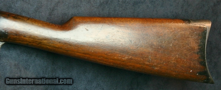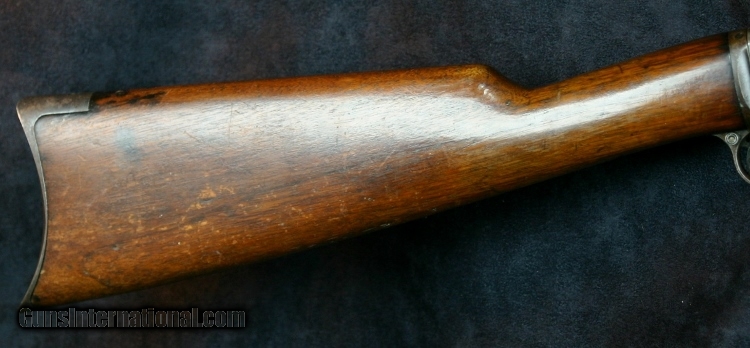 Description: .22rf s-l-lr, 24 inch octagon barrel, good rifling, dark bore, blue has turned a smooth even plum brown over all, wood is very good (1/2 inch hair line crack at lower tang) with 60% original finish. SOLD Curio/Relic: Yes |