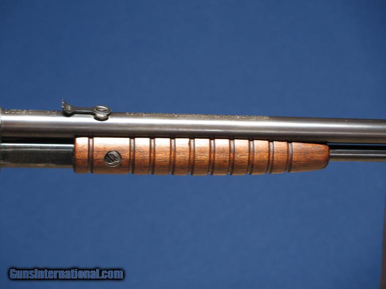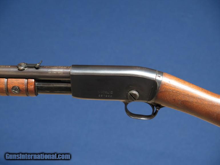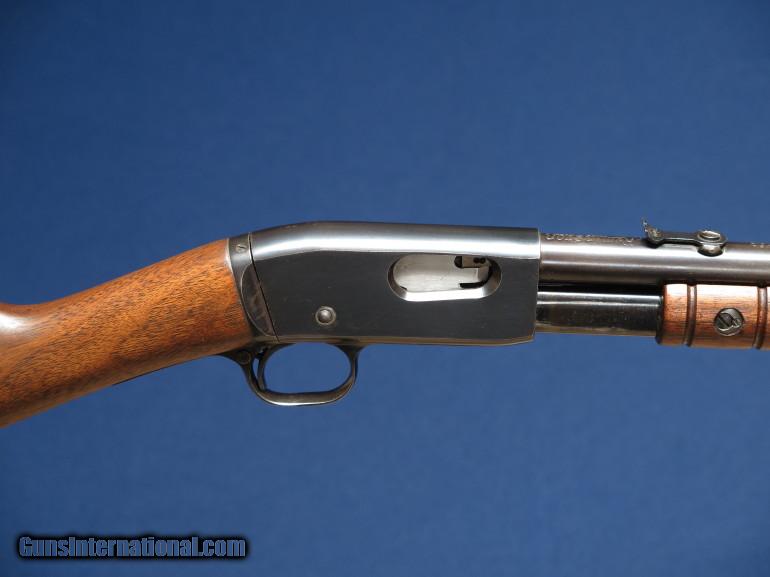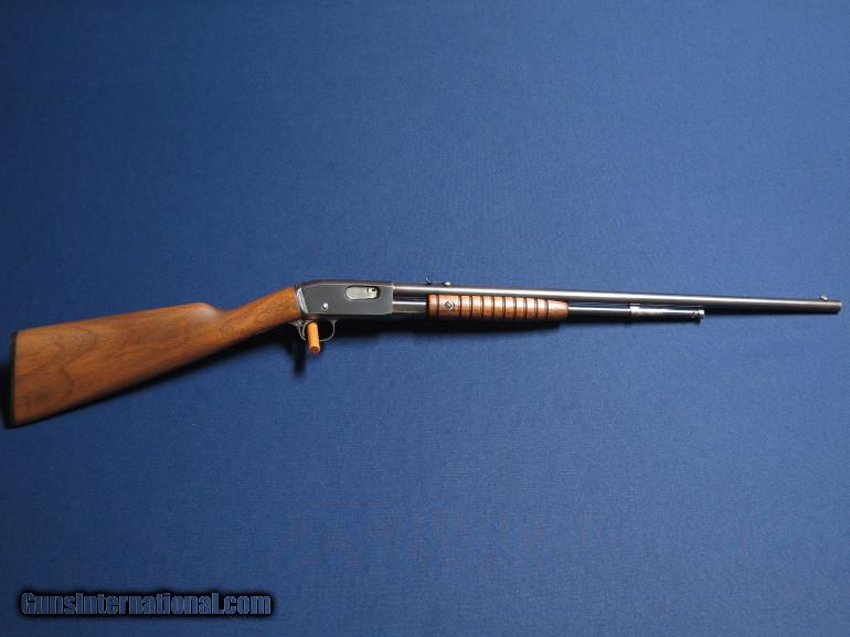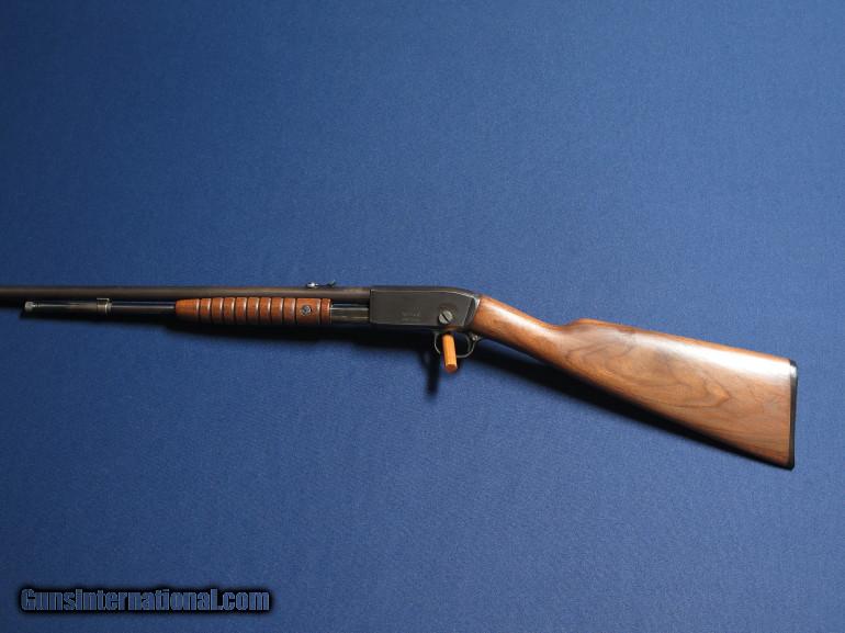 Description: Remington 12A 22cal. 22" round barrel. 96% original blue. Excellent bore. Wood refinished but a professional job. SOLD |