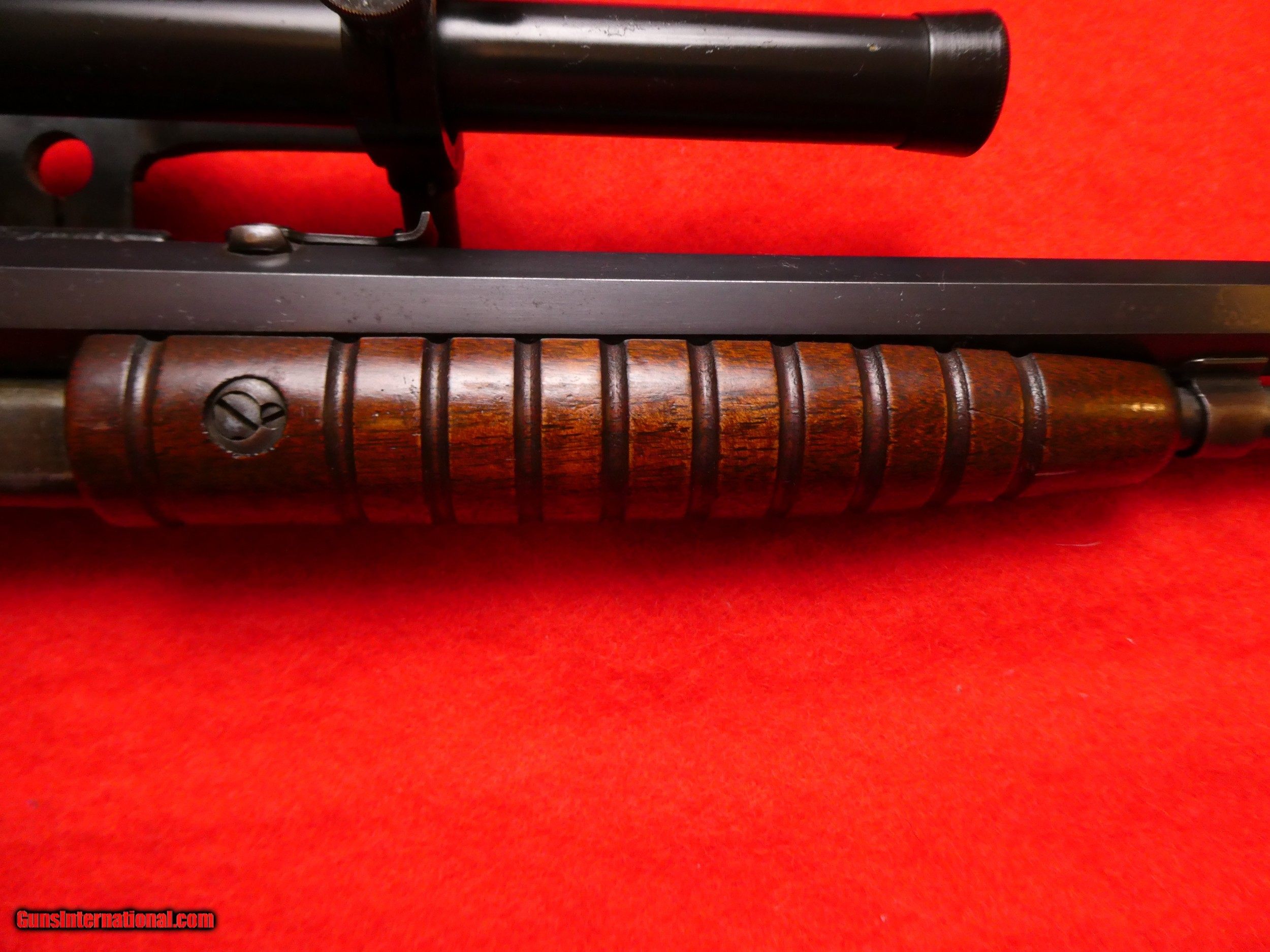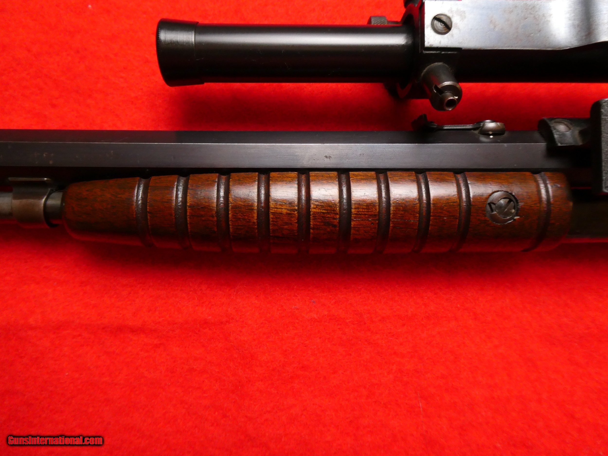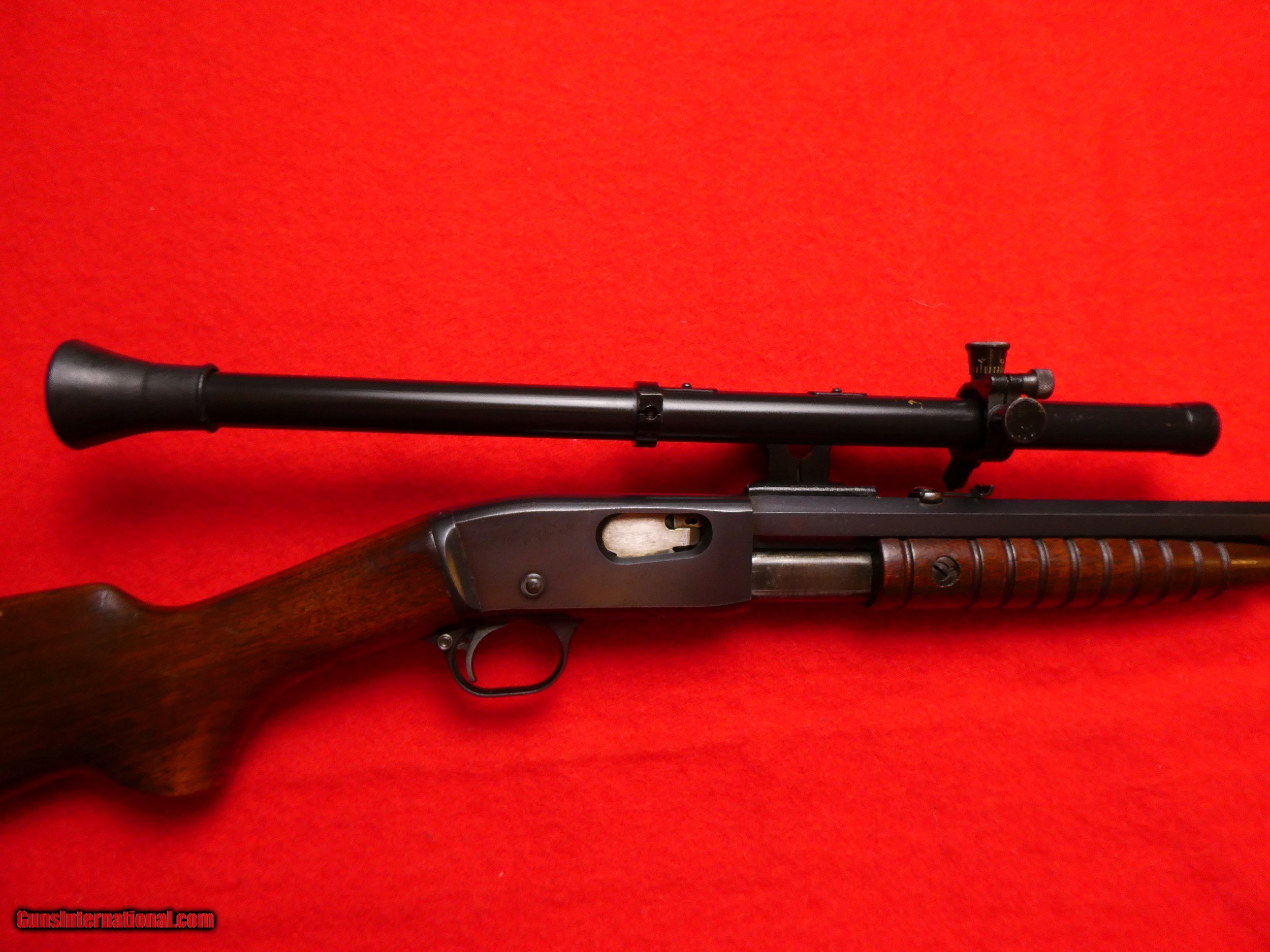 Description: Remington model 12 .22 LR pump.S# 806368 mfg 1933.24 inch octagon barrel comes with Mossberg scope and no. 6 mossberg mount. Gun is in very good condition with vintage scope. SOLD SOLD |