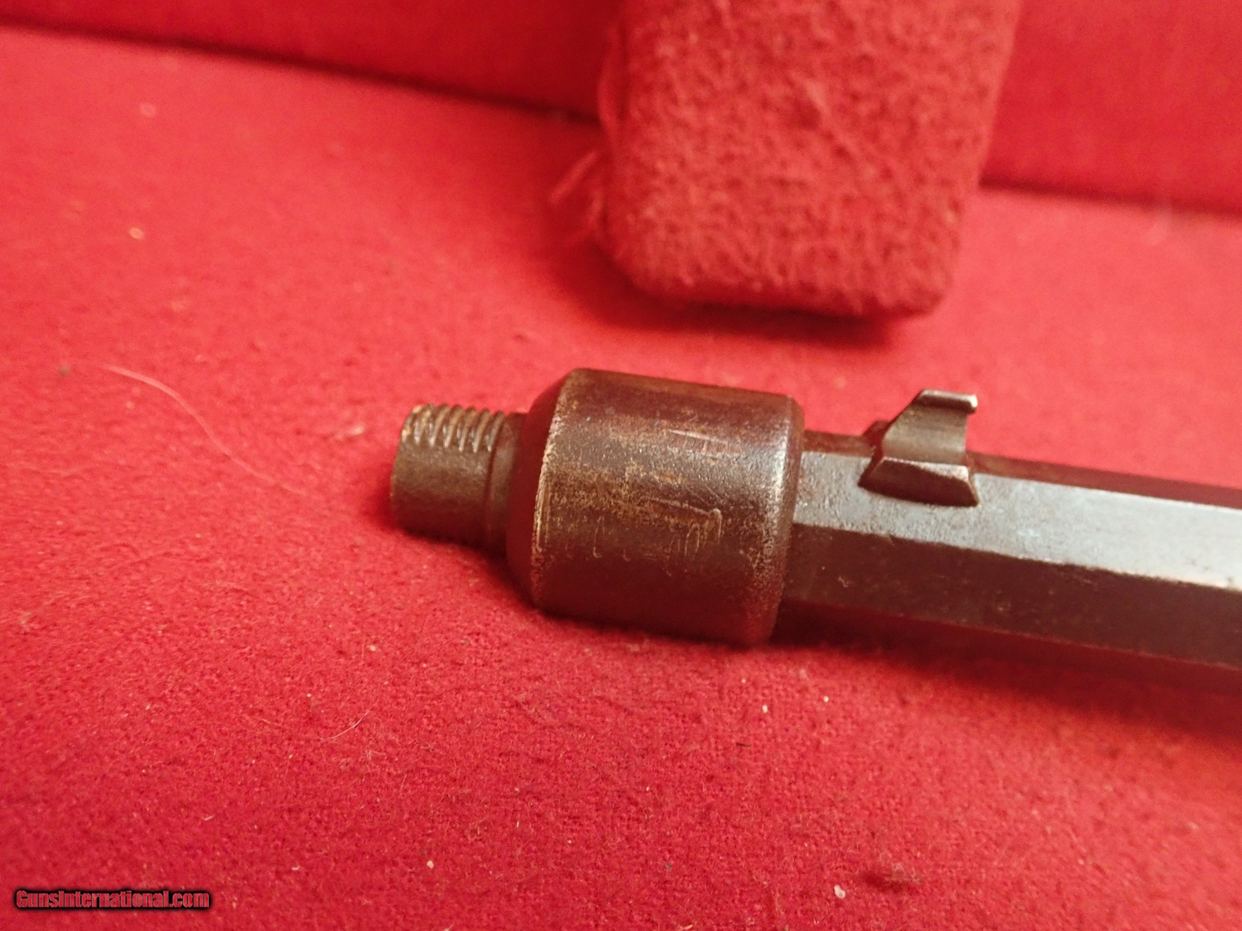 Description: ~Remington Model 12-C .22LR/L/S slide action rifle, dated to 1918. This rifle features the classic Remington slide action .22 design, with a takedown feature via a thumb screw on the left side of the receiver. This rifle also has a very unique feature; a threaded barrel attachment. The threaded unit appears to be permanently fitted, and has interrupted threads. The is most likely designed to fit a suppressor, perhaps an early Maxim suppressor of some kind. The rifle has various examples of wear and finish loss throughout, as shown in the photos, however the action is functional and tight, and though the bore has some wear, there's likely plenty of shooting life left. Please refer to the photos to further assess the condition. A wonderful addition to your Remington collection! SOLD Curio/Relic: Yes Manufacturer: Remington Model: 12-C Serial Number: 428165 Caliber Info: .22 |