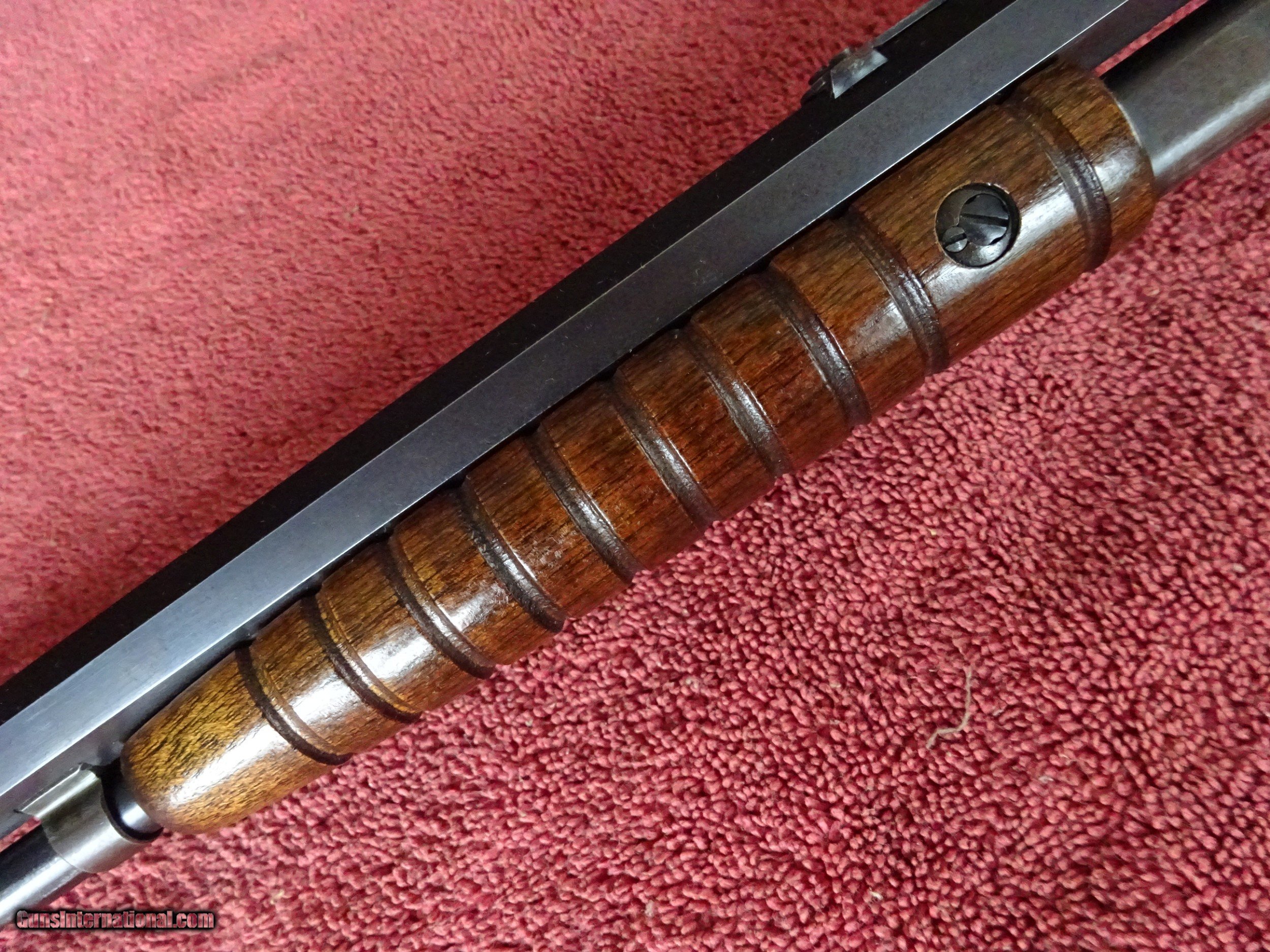 Description: SALE PENDING REMINGTON MODEL 12-C. 22 SHORT, LONG OR LONG RIFLE, 24" OCTAGON BARREL, MIRROR PERFECT BORE, EXCELLENT BLUE. PISTOL GRIP STOCK, RIBBED FOREARM, EXCELLENT WOOD AND VARNISH, CRESCENT STEEL BUTTPLATE WITH MOST ALL THE ORIGINAL BLUE. NICE ORIGINAL GUN MADE IN 1935. NOTE - UNUSUAL TO HAVE THE EARLY SCREW ADJUSTABLE REAR SIGHT AT THIS LATE PRODUCTION. $1175.00 + $50.00 Insured shipping to an FFL address. See all Pats gun listings on this site! We also have hundreds of pieces of ORIGINAL gun company advertising & memorabilia available for sale on our site SPORTINGCOLLECTIBLES. We have no reprints or reproductions. Email for more information. SOLD Curio/Relic: Yes |