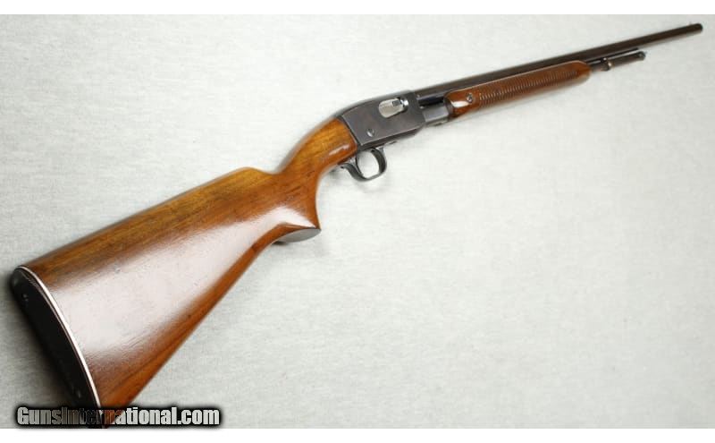 Description: Excellent condition, light finish wear, small nicks & scratches. Unique pump action .22 LR shotgun. 24" barrel, blued metal, and smooth action. Gloss finish forend and butt stock with checkered metal butt plate. .22 Long Rifle SOLD Chambers: Pump action Metal Condition: Excellent Wood Condition: Excellent Bore Condition: Bright Barrels: 24 Triggers: Factory Stock Dimensions: 13 123" LOP Fore End: Ribbed Butt Pad: Metal butt plate Sights: Single gold bead Item Location: La Vista, NE |