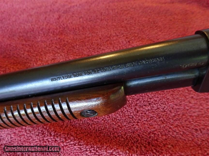Description: REMINGTON, MODEL 121, ROUTLEDGE BORE 22 LONG RIFLE SHOT, 98% BRIGHT BLUE, MIRROR BORE. EXCELLENT WOOD, NICE GUN, ONLY ABOUT 2500 WERE PRODUCED. MADE IN 1947. $1575.00 + $40.00 Insured shipping to an FFL address. We have hundreds of pieces of ORIGINAL gun company advertising & memorabilia available for sale. We have no reprints or reproductions. Email for more information. SOLD Curio/Relic: Yes |