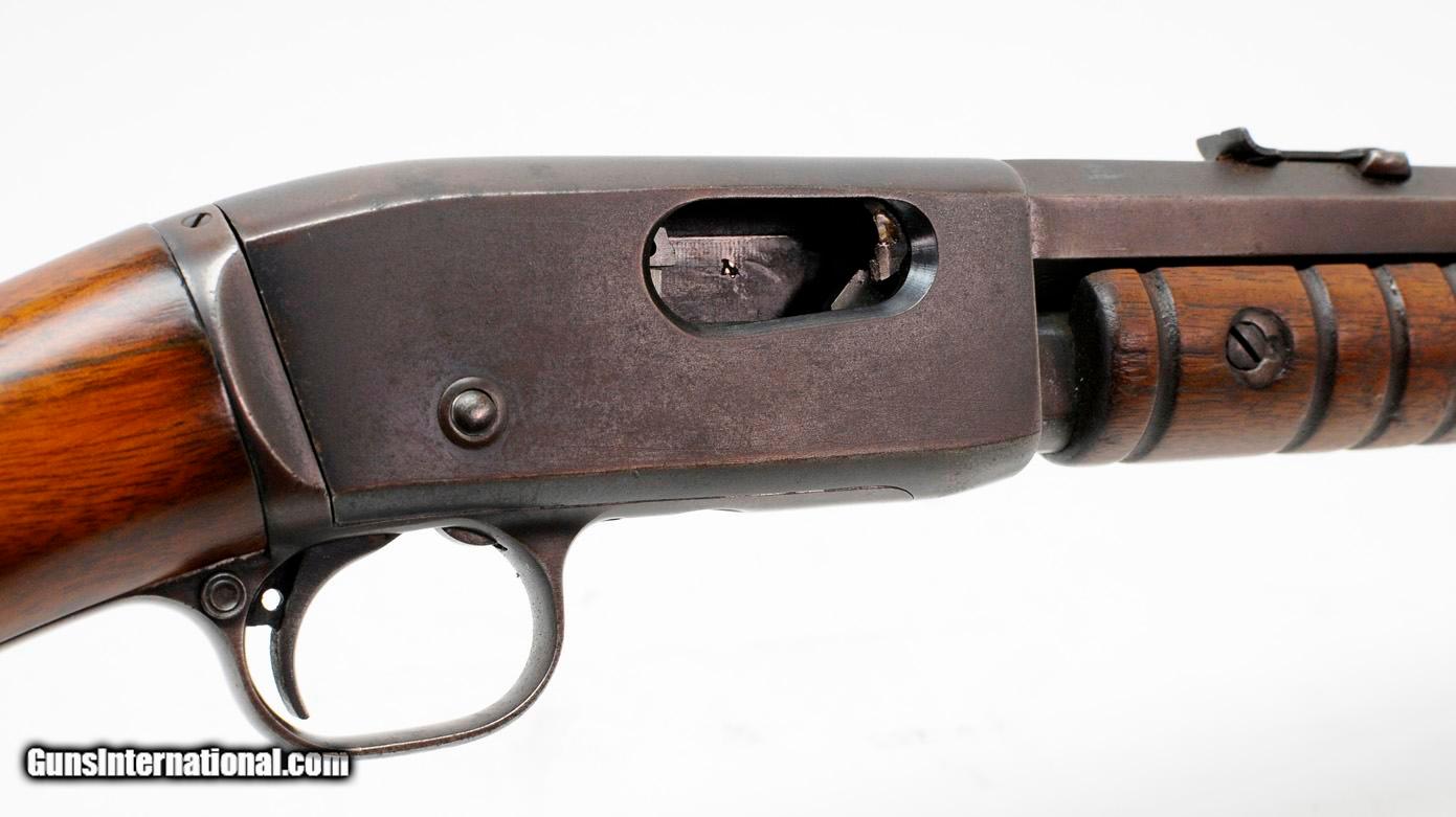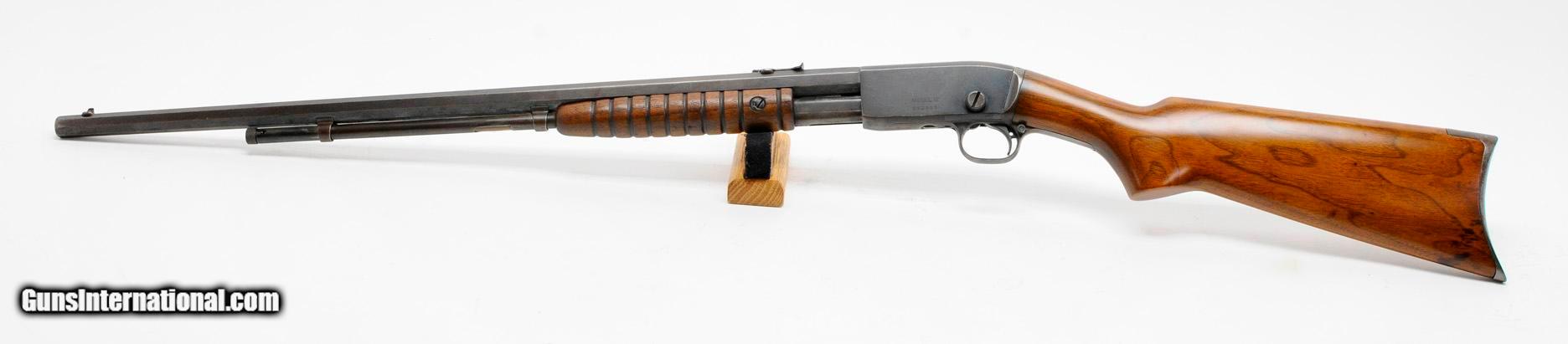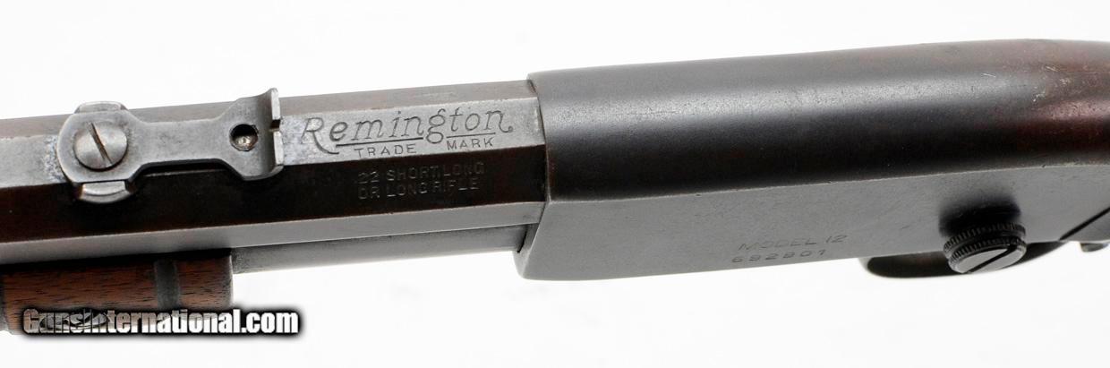 Description: Remington Model 12C Slide-Action 22LR Rifle. Takedown. Very Good AVAILABLE FOR PURCHASE AT OUR ON-LINE STORE 'The Remington Model 12 is a slide-action, solid-breech, hammerless, takedown, side-ejection rifle. This gun, designed by J. D. Pederson, was introduced in 1909 and produced through 1936. During the 37-year period, there were 820,759 guns sold. The gun featured a hammerless action and competed quite successfully with the 1906 Winchester which still had an exposed hammer.' Date Code; KK DOM 1941 SPECIFICATIONS