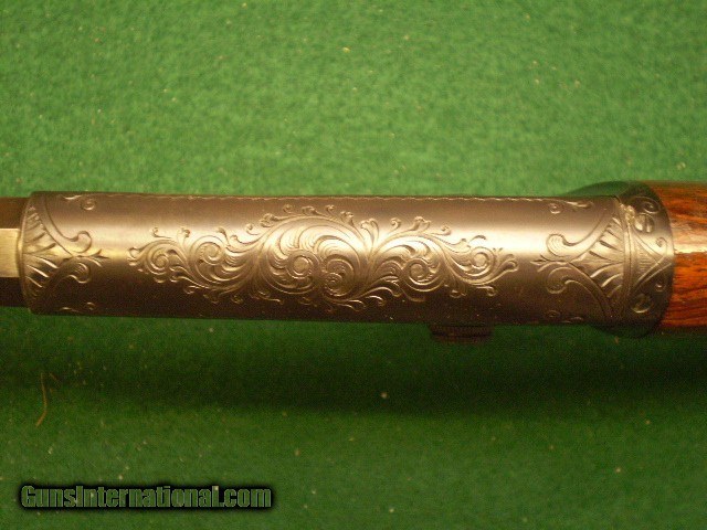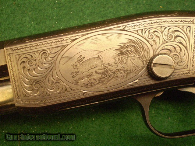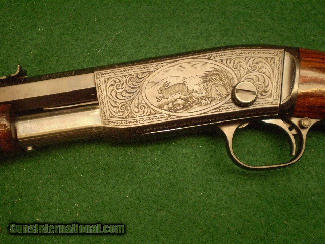 Description: Remington Model 12D “Peerless” chambered for .22 short, long, long rifle. Finely engraved on the right side of the receiver is a squirrel by a stump. Left side engraved with two rabbits in the brush. Both sides and top of receiver are surrounded by fine scrolls and borders. Trigger guard also engraved. Checked English Walnut pistol grip stock, ribbed forearm. Excellent wood with only very minor handling marks. Scarce rifle is this condition. Money Order / Certified Check only. Buyer pays fixed amount of $50.00 shipping and insurance. No international sales. Signed FFL or C&R required with firearm shipped to that address. If using FFL Dealer be sure they will accept my current and signed C&R License. Sale Pending SOLD Curio/Relic: Yes |