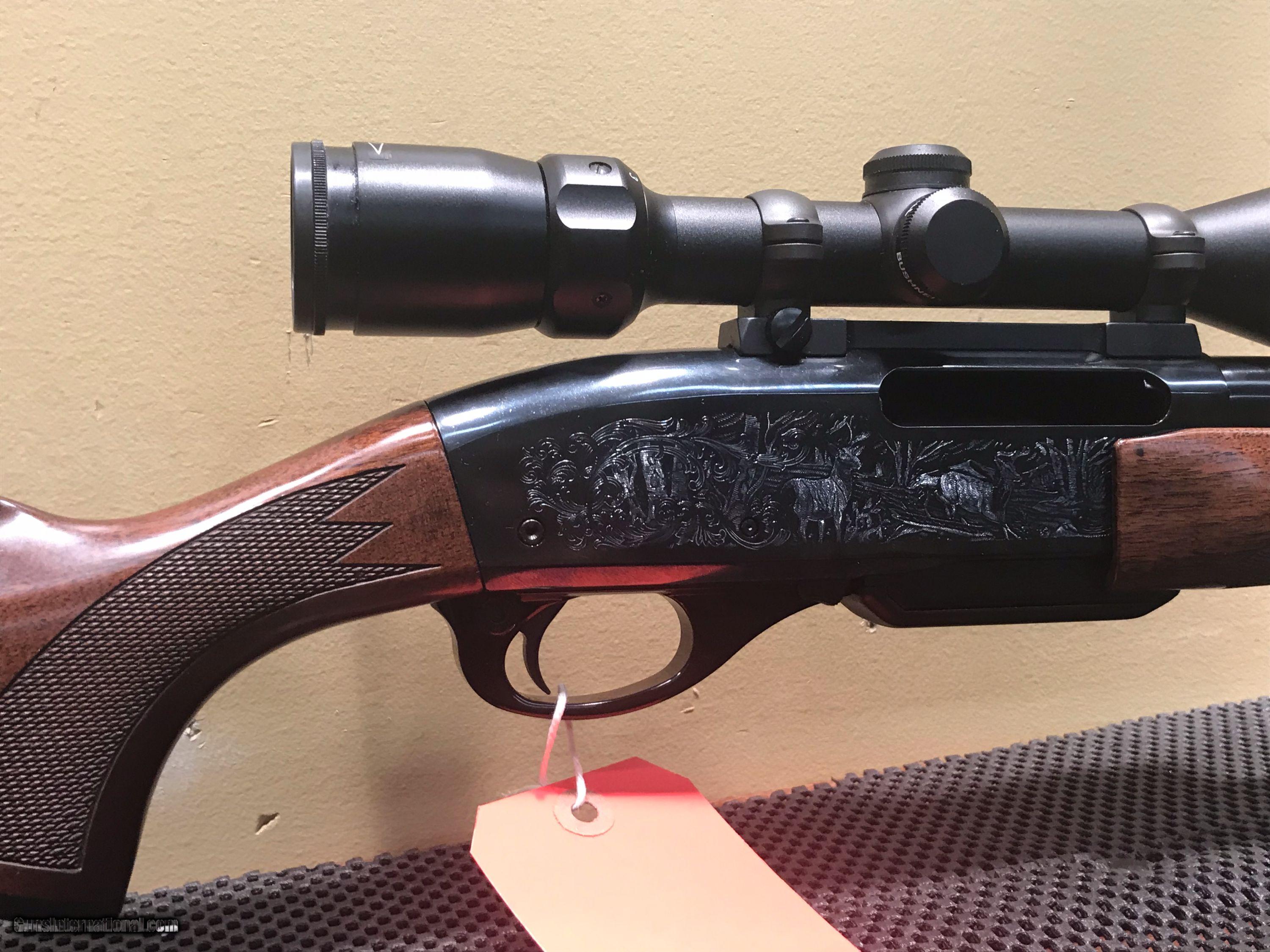Description: USED, IN GOOD CONDITION WITH SCOPE REMINGTON MODEL 7600 PUMP RIFLE, 30-06 SPRG, 22" BLUED BARREL WITH BUSHNELL 3-9X40 DEER INGRAVING ON RIGHT SIDE, BEAR INGRAVING ON LEFT SIDE OF RECEIVER, We also carry Bushnell, Nikon, Vortex, Leupold, Swarovski and Night Force Scopes. ****PLEASE CALL IN THE WITH THE SELLER’S INVENTORY NUMBER IF INQUIRING ABOUT A FIREARM****** WE DO NOT SHIP FIREARMS AND/OR FIREARMS’ PARTS OUT OF THE 50 UNITED STATES, SO DON’T ASK PRICE REFLECTS PAYMENT BY MONEY ORDER / CASHIERS CHECK. A 3% PREMIUM IS ADDED FOR CREDIT CARDS. WE DO ACCEPT PERSONAL OR BUSINESS CHECKS, BUT THERE IS A 10 DAY GRACE PERIOD ON THEM. Shipping is $40 for handgun and $30 for long gun. Shipping to Alaska and Hawaii will be more based on weight of firearm. WE DO OFFER A LAYAWAY PLAN. YOU CAN LAYAWAY FOR 30, 60, OR 90 DAYS. THERE IS A $5.00 CHARGE FOR EVERY 30 DAYS ITEM IS ON LAYAWAY. WE ALSO REQUIRE A 20% DOWN PAYMENT ON LAYAWAY ITEM. LAYAWAYS ARE NON REFUNDABLE. HERE IS HOW THIS PROCESS WORKS. YOU WOULD CALL US AT 540-337-9218 WITH LISTER # TO PURCHASE THE GUN. THEN ONCE I HAVE RECEIVED PAYMENT AND AN FFL (FEDERAL FIREARMS LICENSE) FROM A LICENSED DEALER IN YOUR AREA OF YOUR CHOICE. WE WILL THEN SHIP THE GUN TO THEM. YOU WOULD THEN PICK UP THE GUN AT YOUR LOCAL DEALER AND DO PAPER WORK THERE. Please have your FFL Dealers contact information when you call. DOMINION OUTDOORS 15 ANGELA COURT FISHERSVILLE ,VA 22939 540-337-9218 540-337-2422 fax M – F 9 to 6 ETZ Sat 9 – 4 ETZ ****PLEASE CALL IN THE WITH THE SELLER’S INVENTORY NUMBER**** ***PLANO HARD CASES AVAIABLE FOR PURCHASE $19.99 WITH THE PURCHASE OF A FIREARM.** SOLD |