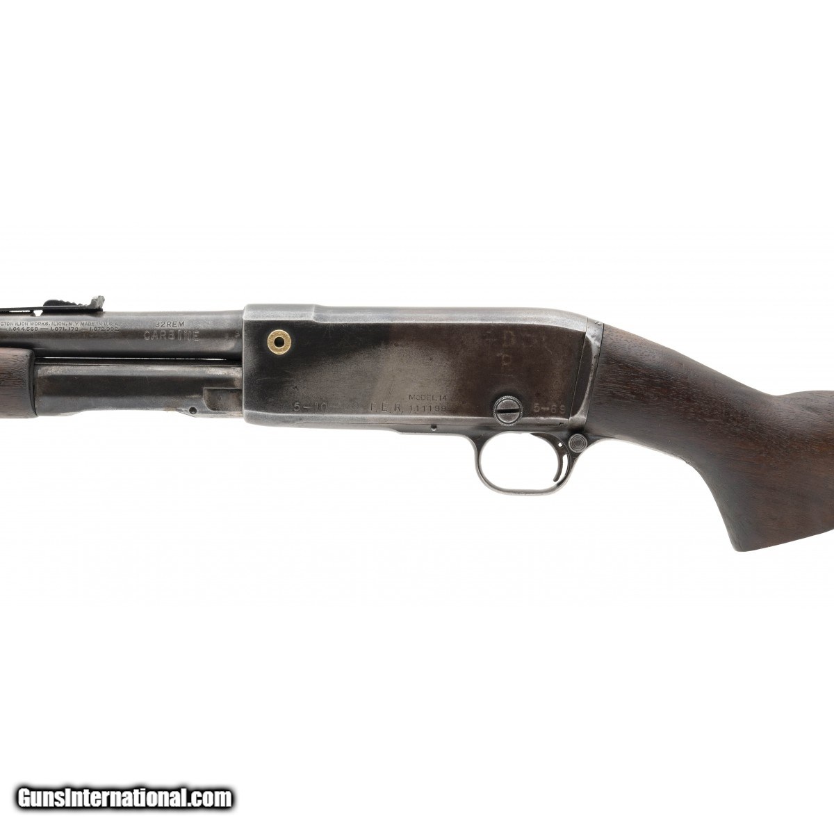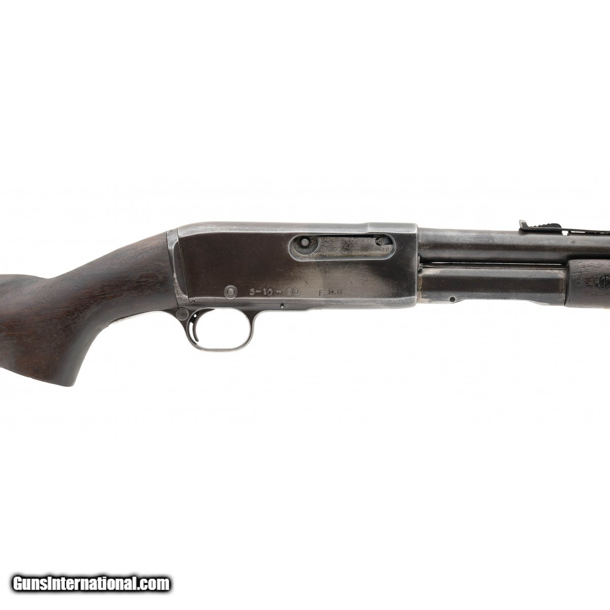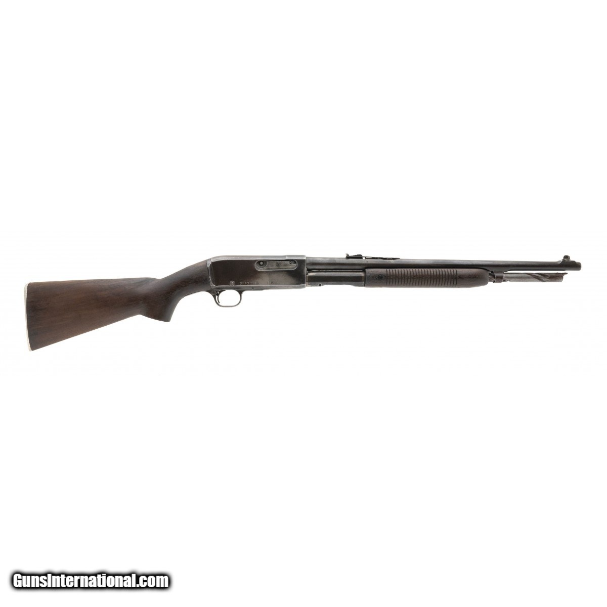 SN: 111199. Scarce slide action carbine, made in 1930. Has an 18"" barrel with very good bore. The finish is a smooth brown patina. There are markings stamped on both sides of the receiver, this was possibly a law enforcement gun. Overall good condition.