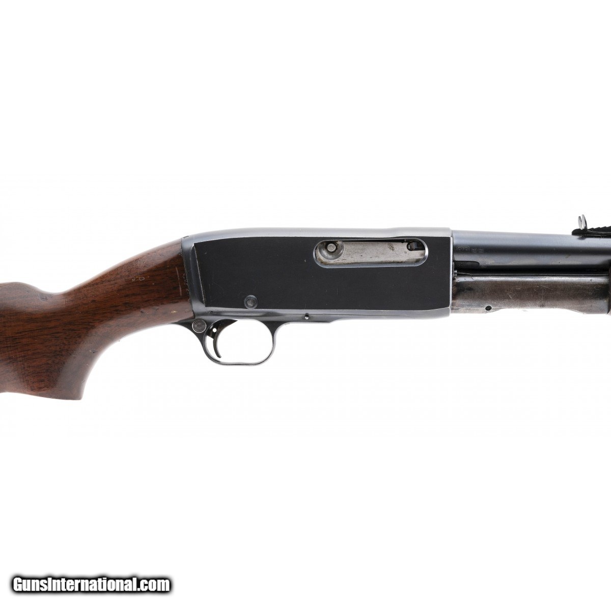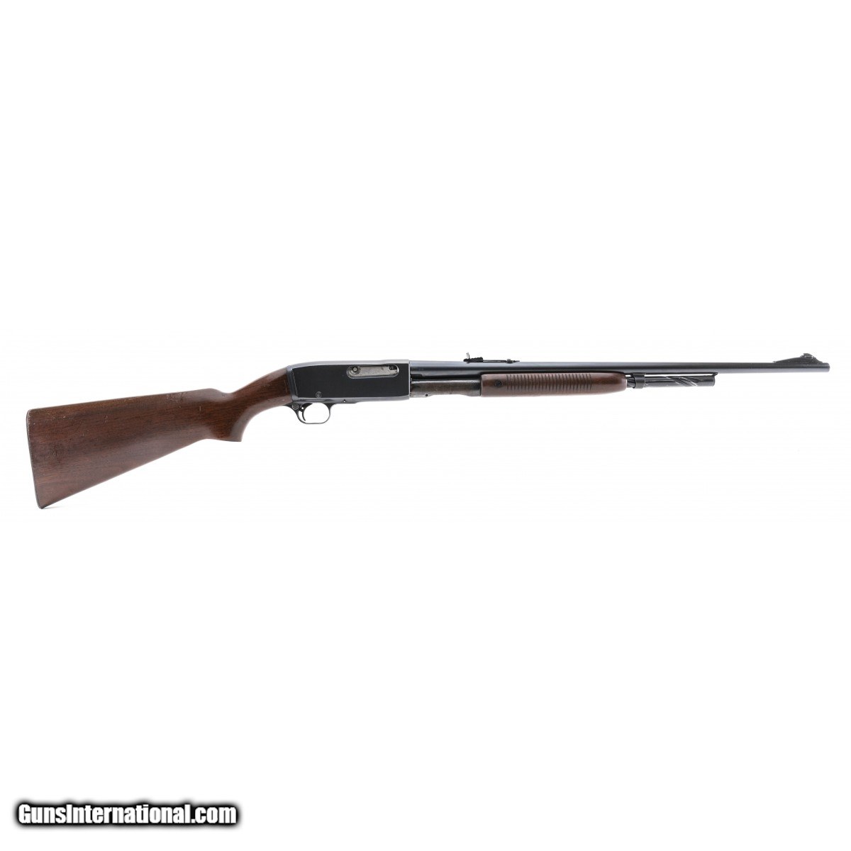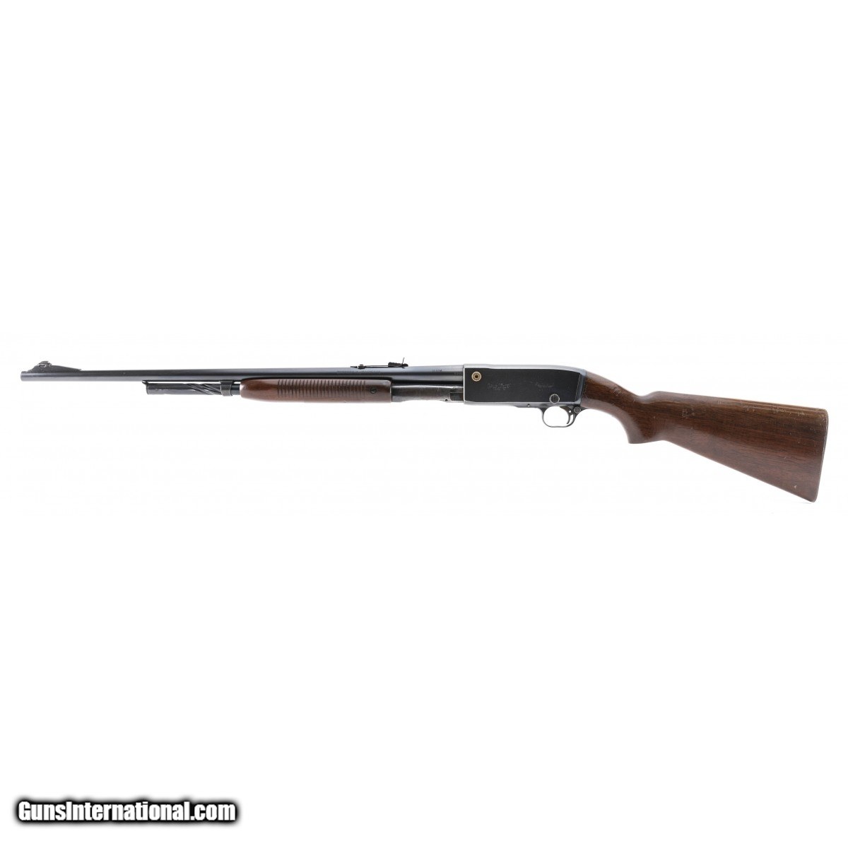 Slide action rifle manufactured in 1946. Bore is excellent. Action works properly. Stock has some crazing that is only noticeable close up. Very good overall condition.